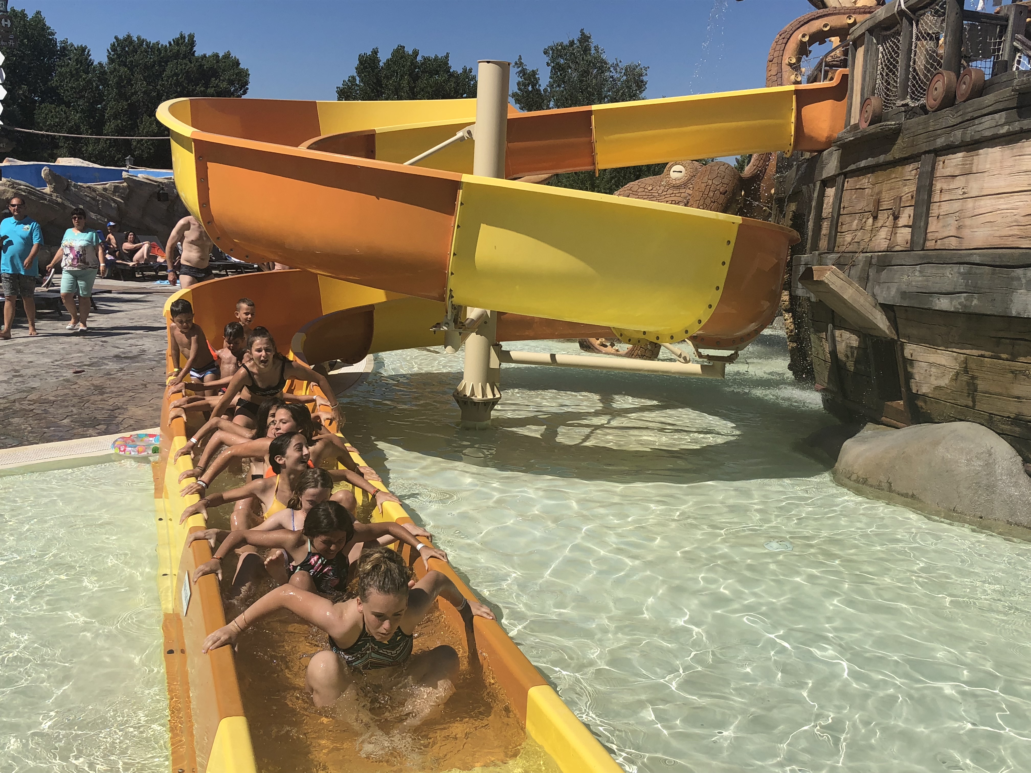9,000 m² pirate-themed water park. 6 pentagliss, 4 slides, 2 paddling pools, 1 gigantic pirate ship, 1 whirlpool jacuzzi, 1 wave pool, 1 surfing spot for beginners and experienced surfers, river with buoys! Enjoy the thrills with family and friends!