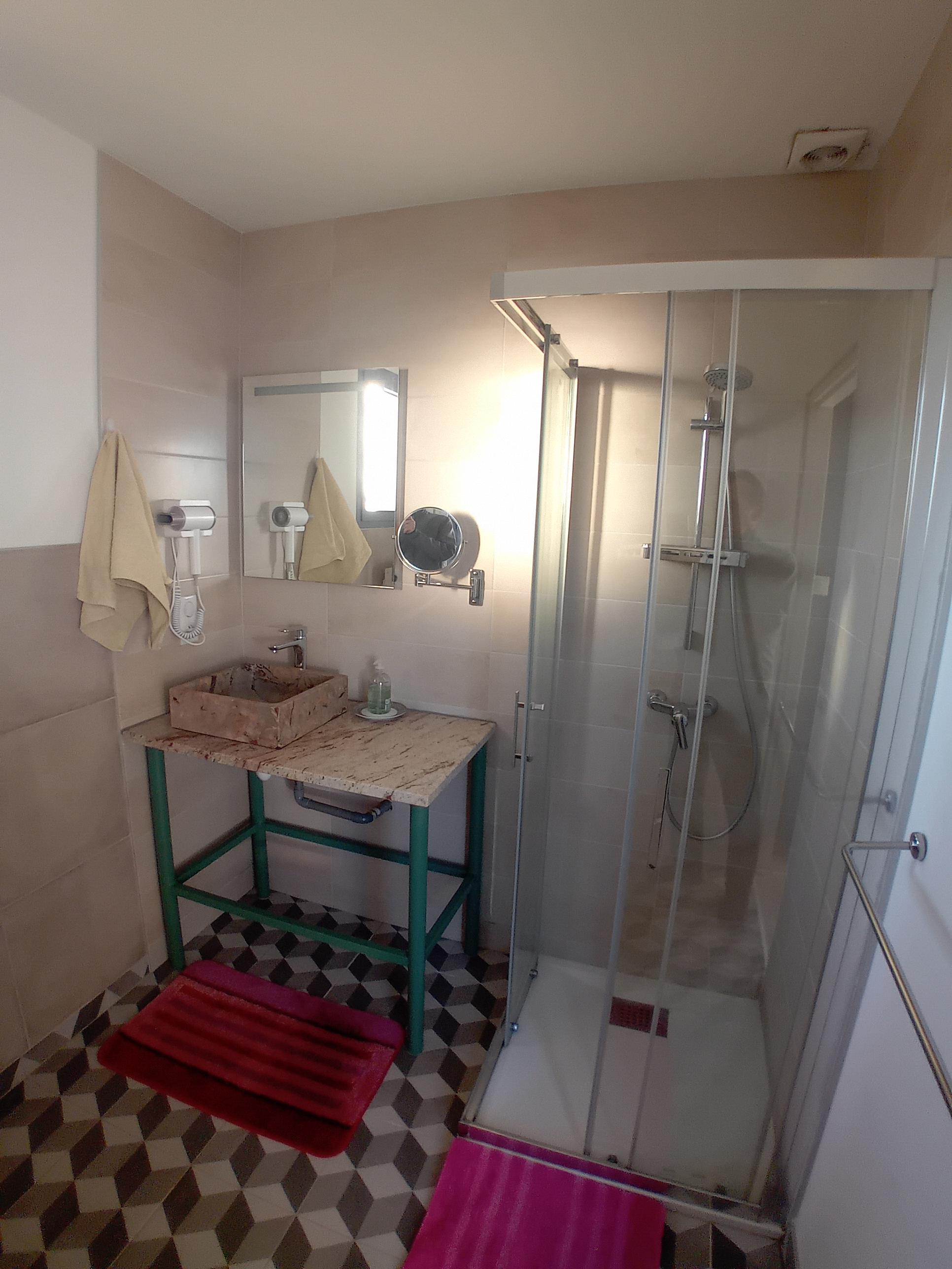 WIFI, private terrace, private and independent bathroom and toilet, refrigerator, microwave oven, desk. Sheets and towels are provided.. The room offers bedding in perfect condition with a bed (140), a large closet and wardrobe.