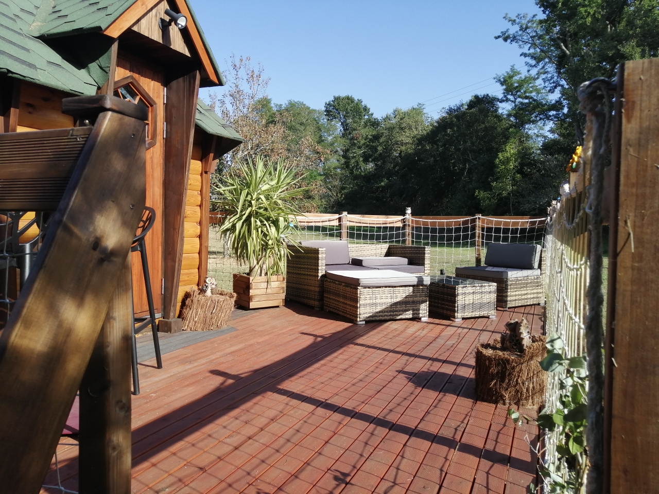 Un véritable havre de paix privatif niché au coeur de 20 hectares de nature préservée du Gers. Ce double kota sur pilotis de 37 m2 et sa terrasse orientée plein sud accessible par un chemin de 700 m vous offre une intimité inégalée, abrité par trois majestueux cyprès. Vous pourrez profiter d’une piscine hors sol privative optionnelle, le tout dans un écrin de verdure parfait pour se ressourcer. Vous vous offrirez une expérience inoubliable dans ce petit nid d’amour, chaque détail a été pensé et réalisé par nos soins pour vous permettre de vous détendre et de profiter d’un moment unique.