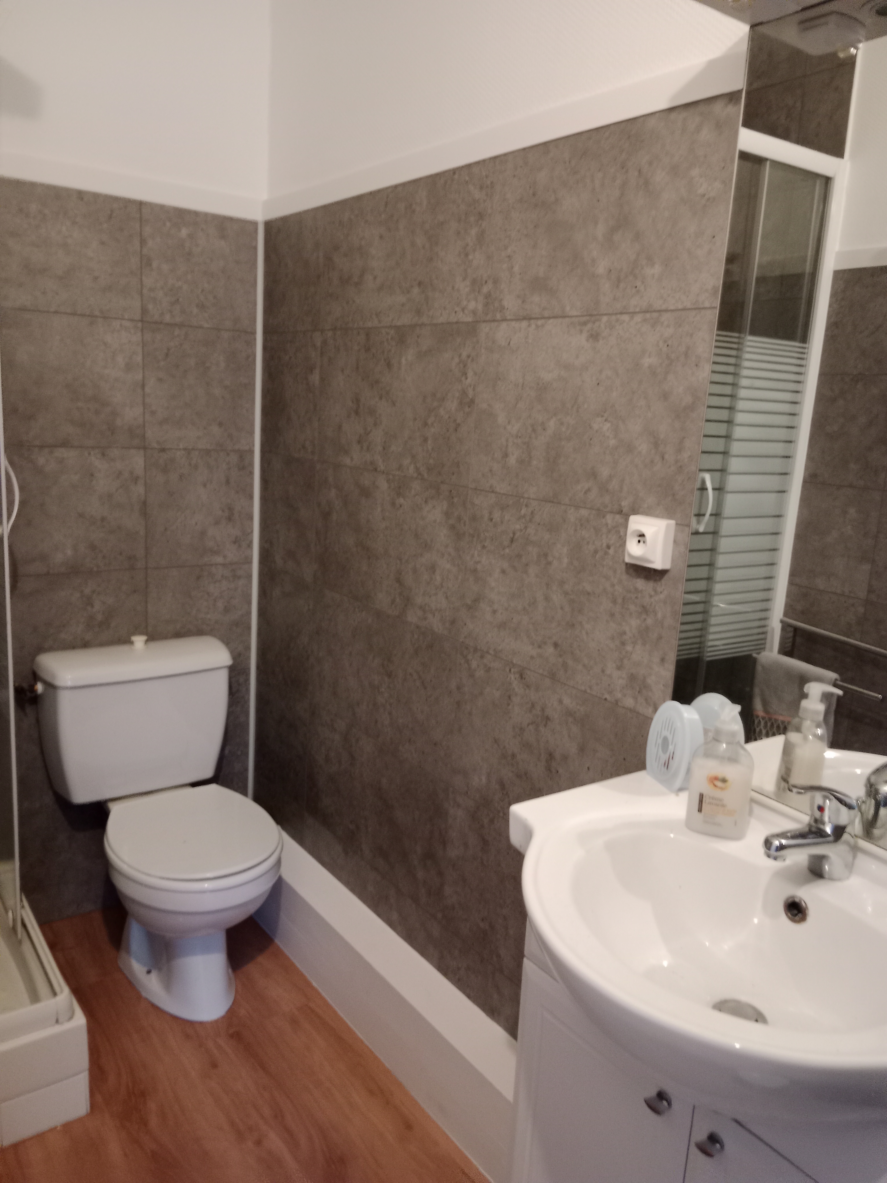 Este piso T2 bis (45m2) orientado al este se encuentra en la 1ª planta de una casa de 6 pisos. Dispone de aparcamiento privado y garaje, así como de un jardín con mobiliario de jardín compartido con los demás pisos.