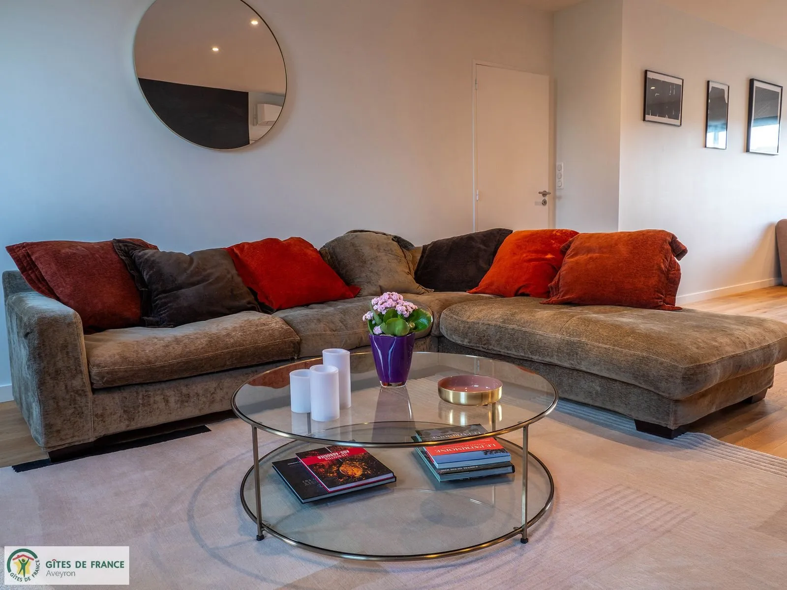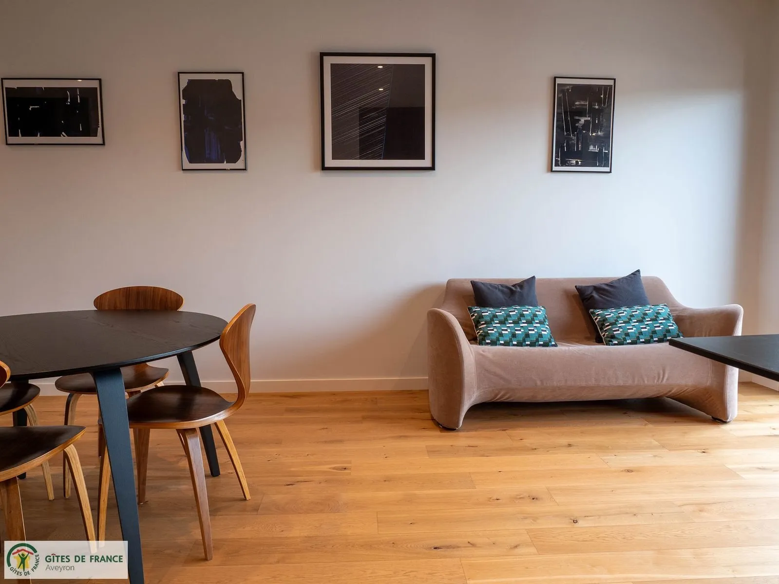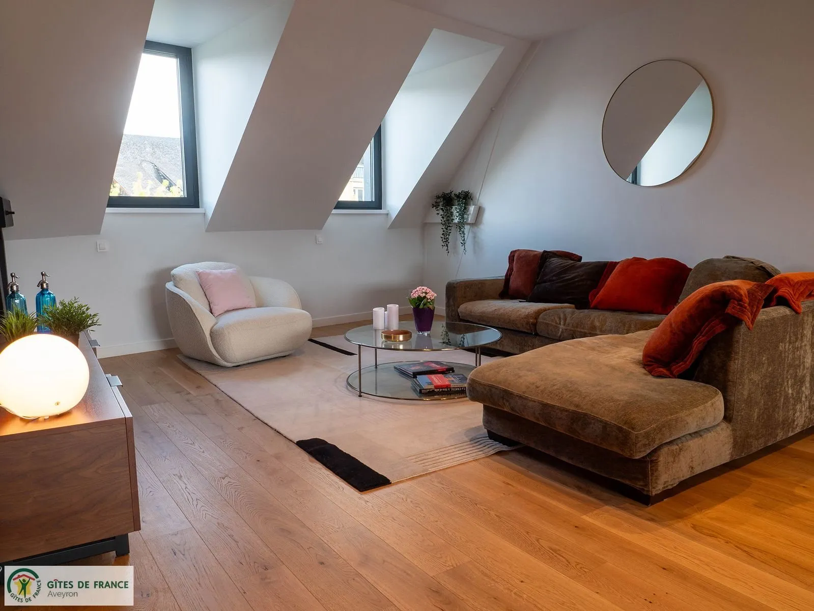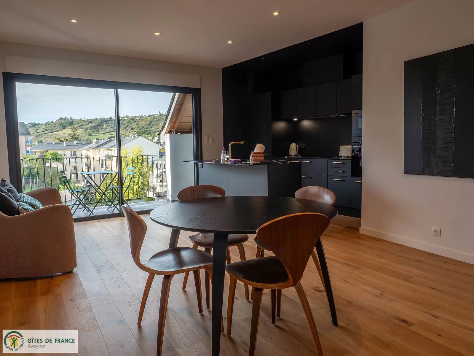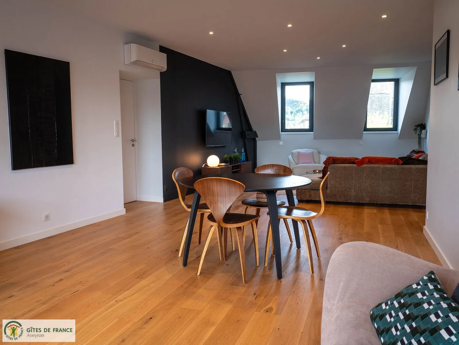 Au coeur du bourg d’Espalion, ce spacieux appartement contemporain vous offre tout le confort et une vue sur l’église St Jean Baptiste et la vallée du Lot depuis sa terrasse.