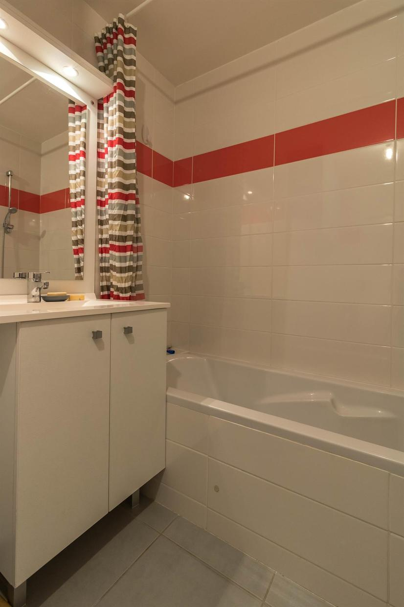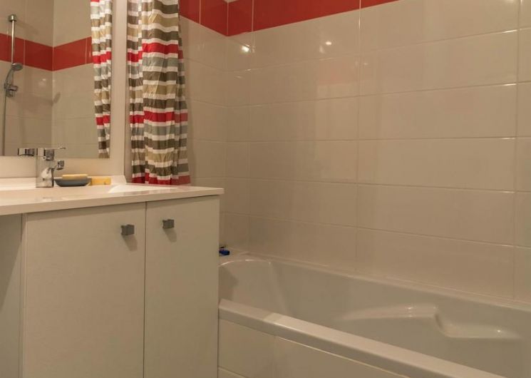 Piso en el segundo piso (ascensor) de una residencia segura con 1 plaza de aparcamiento privado en un parking subterráneo: hall de entrada, gran salón (abierto a una terraza de 10m2) con zona de estar (sofá cama para 2 personas, 140*190cm), zona de comedor, cocina amueblada y equipada, dormitorio con 2 camas gemelas de 90*200cm (acceso directo a una terraza balcón) y cuarto de baño/WC.