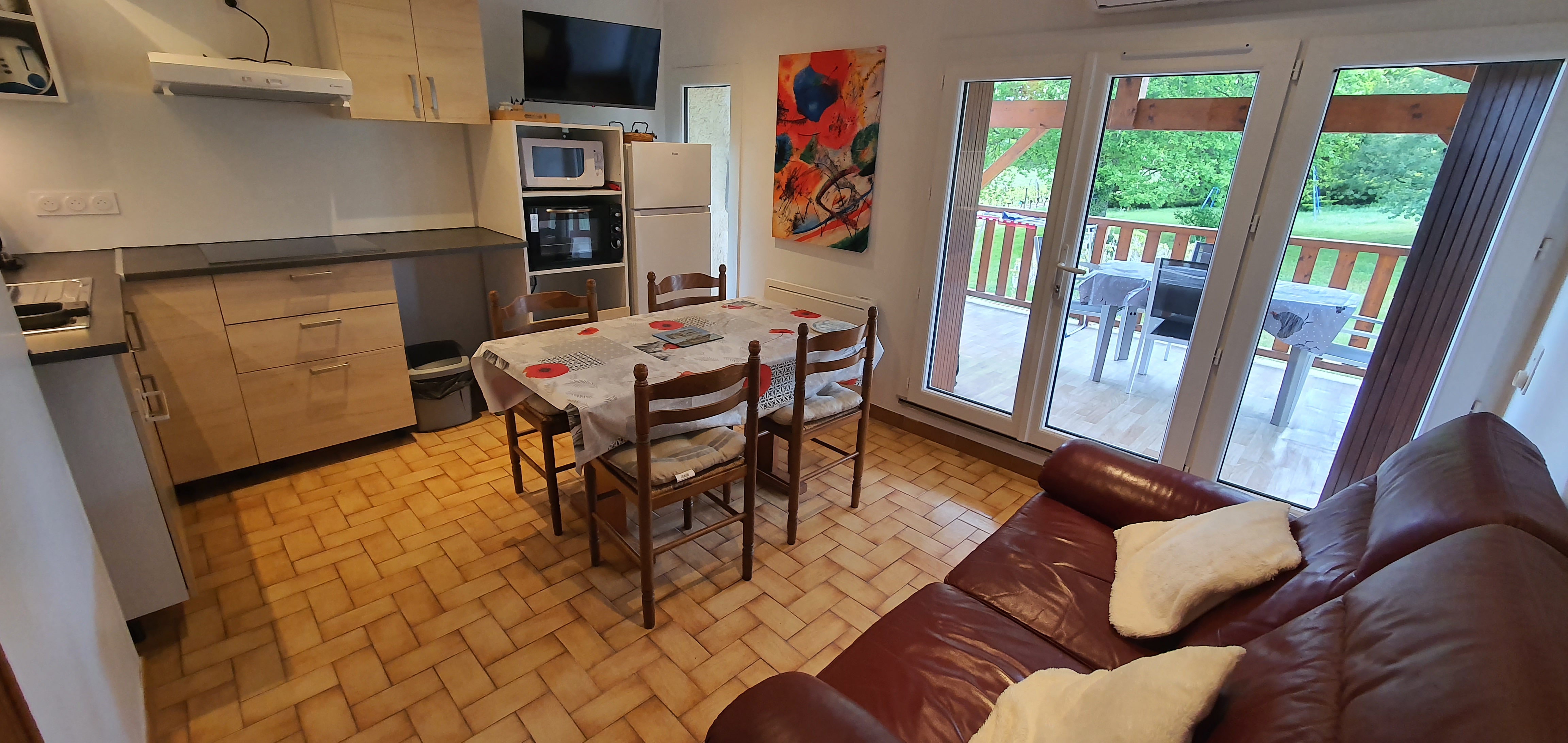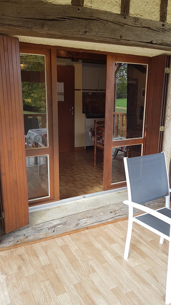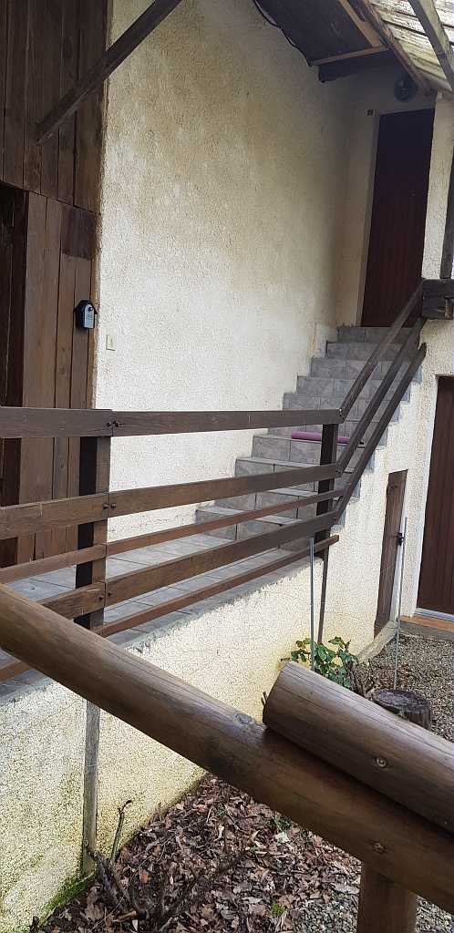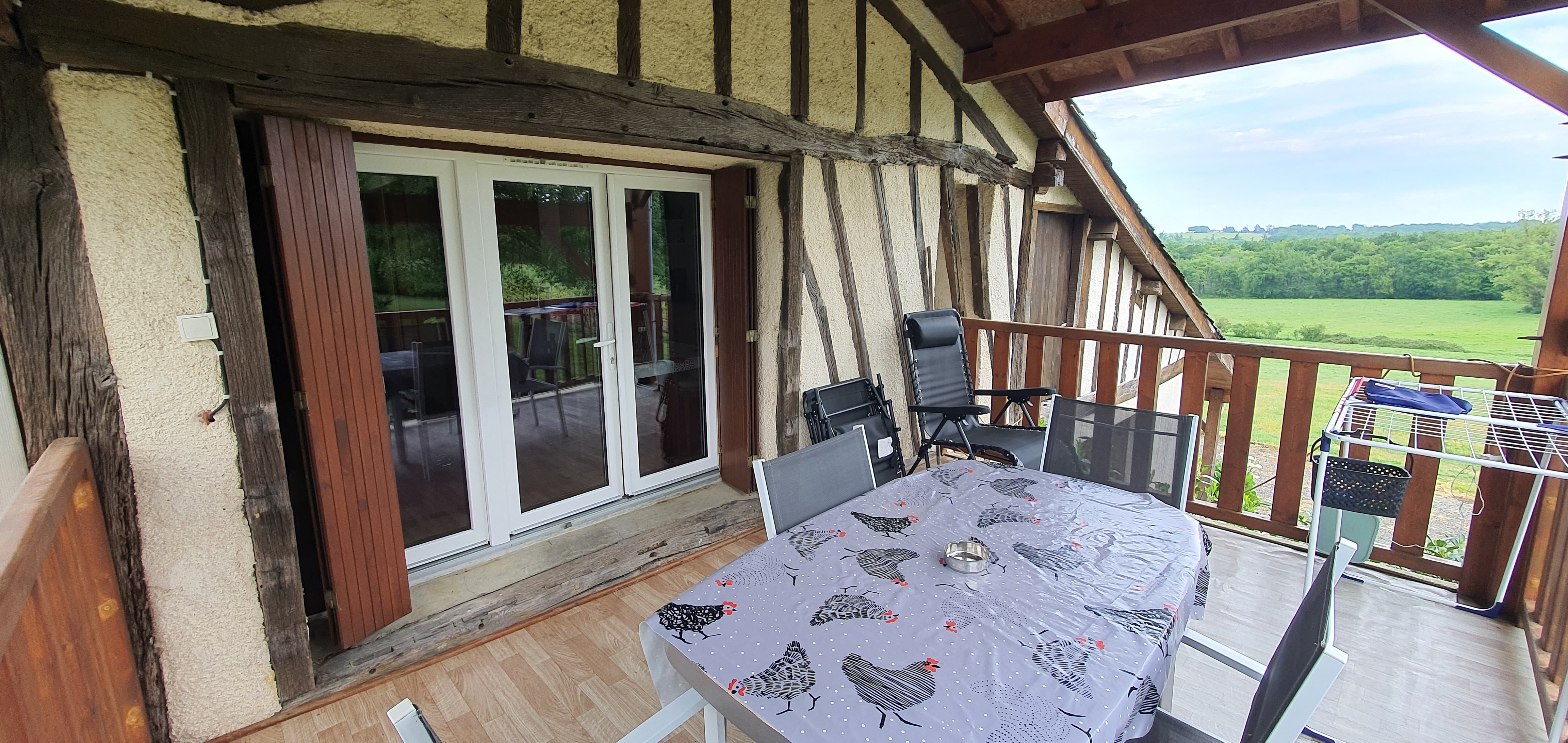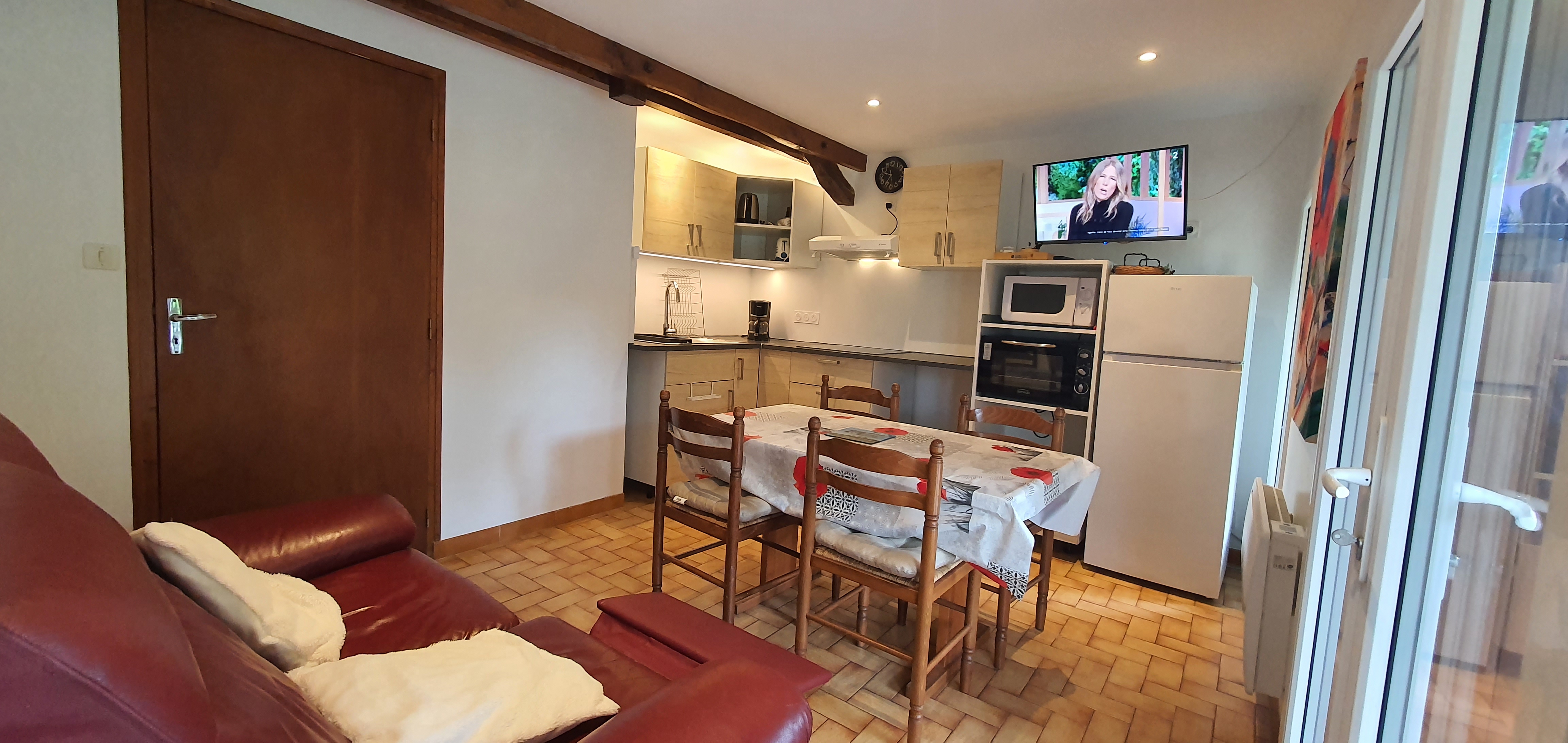 Gîte à l’étage sur 1 seul niveau, vous pourrez apprécier sa terrasse qui surplombe le jardinet et qui est accessible depuis le séjour-cuisine.
