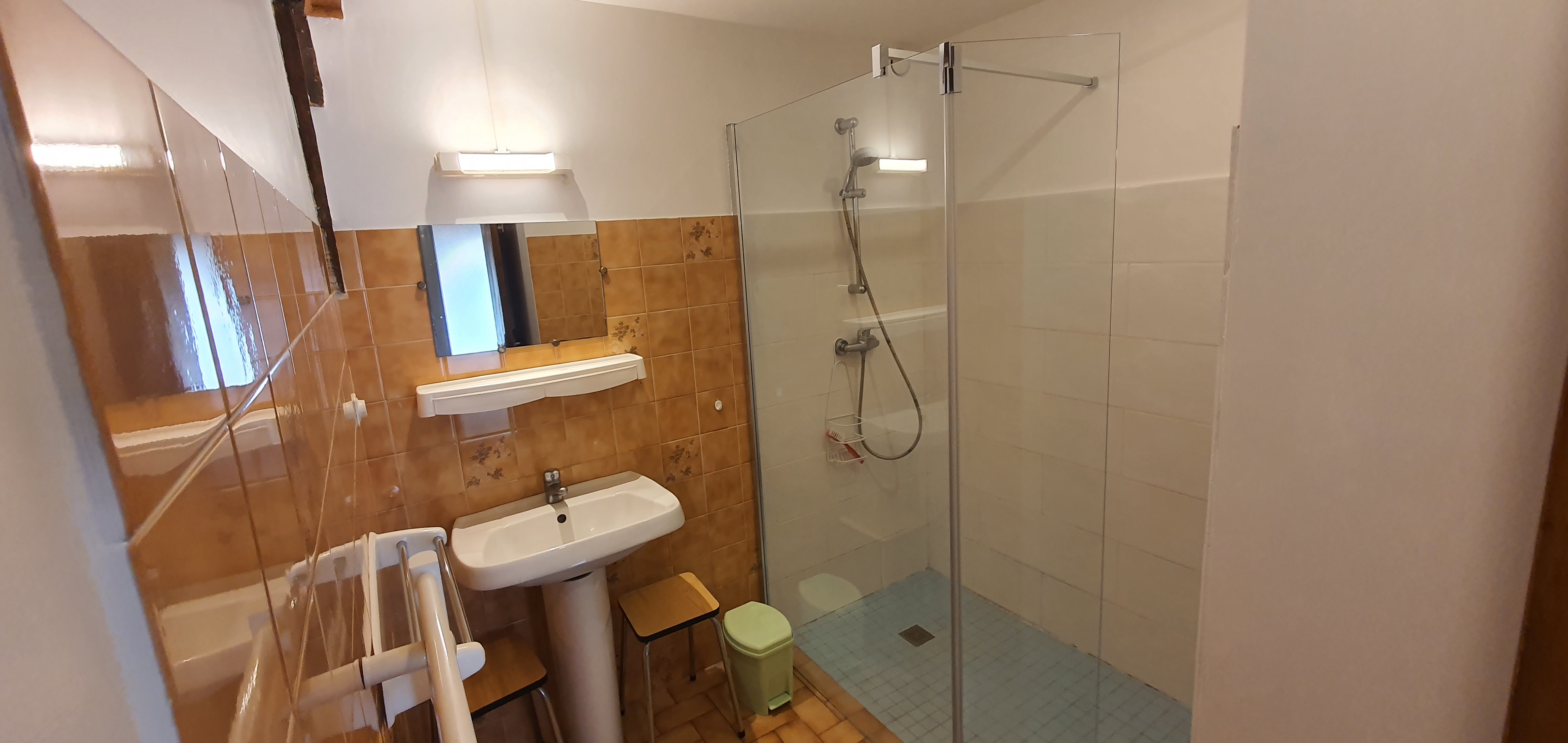 La salle d’eau avec douche et lavabo est séparée des wc.