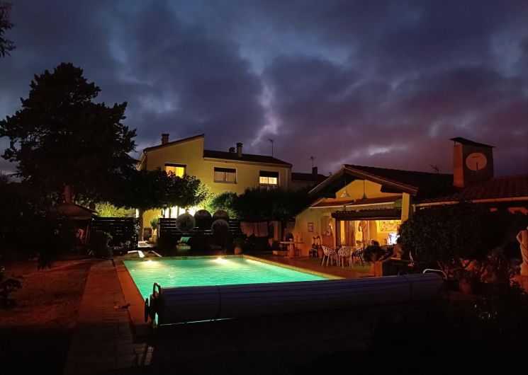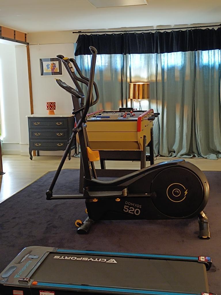 El jardín privado y cerrado de 200 m² está equipado con muebles de jardín, un brasero, una barbacoa y una plancha eléctrica, para pasar agradables momentos al sol o a la sombra de los árboles. Unos escalones conducen a la casa: Hall de entrada Gran salón con sofá, mesa de billar y piano Cocina totalmente equipada con comedor Aseo independiente Acceso por escalera interior a la planta inferior Dormitorio 1 con ventanas pequeñas: 1 cama 160 x 200 con cuarto de ducha, salón: futbolín, cinta de correr, elíptica, etc, sofá cama (pueden dormir 2) 1er piso: Suite con limitaciones arquitectónicas, Dormitorio 2, en el entresuelo, con cortinas opacas, abierto al rellano: 2 camas individuales 90 gemelas en 1 cama 180 x 200, zona de descanso. Habitación 3: 1 cama 180 x 200, con cuarto de ducha y wc Habitación 4: 1 cama 140 x 190 La piscina común no climatizada (12 x 6 x 1,30 a 2,30 m), accesible todo el año de 9h30 a 19h30, se encuentra en la parte trasera de la casa.