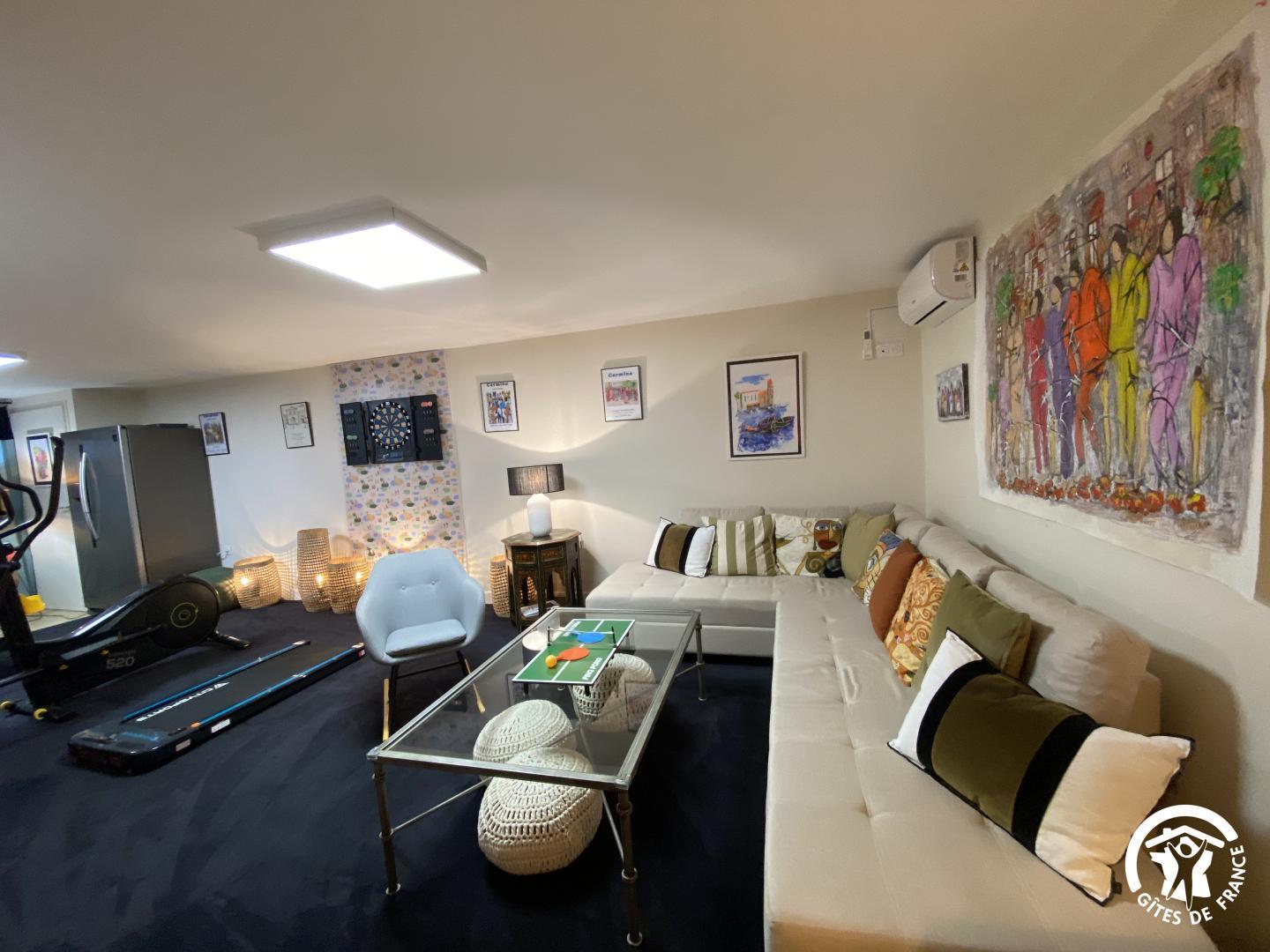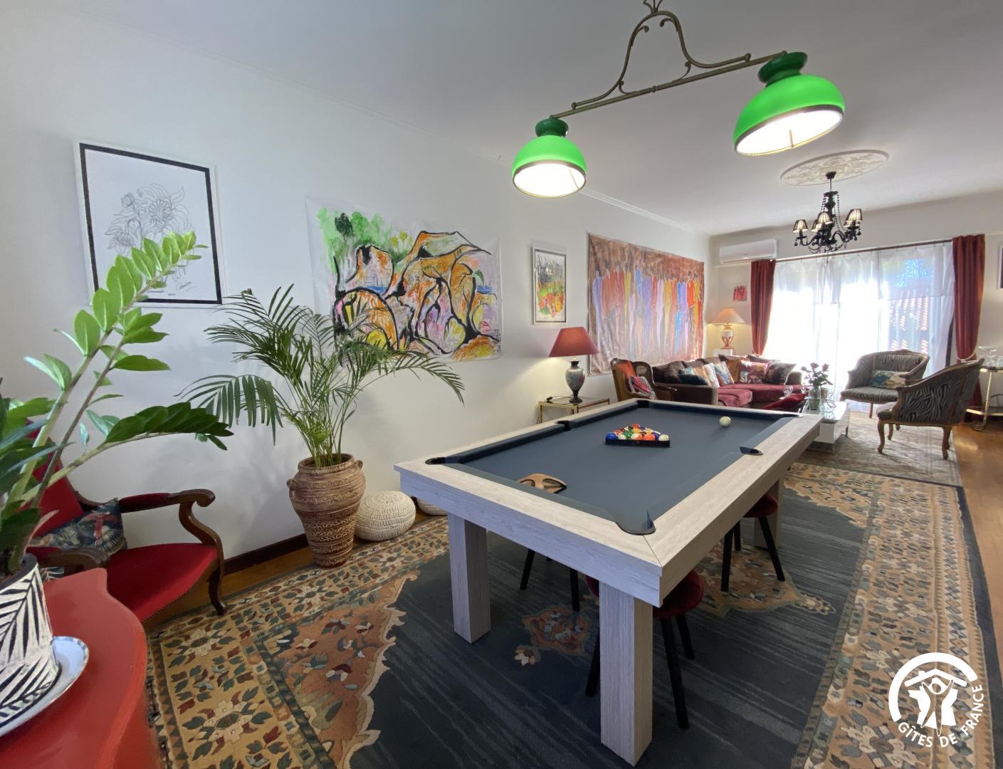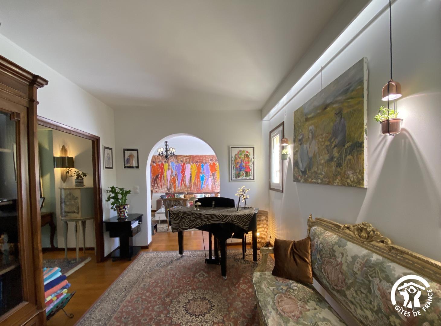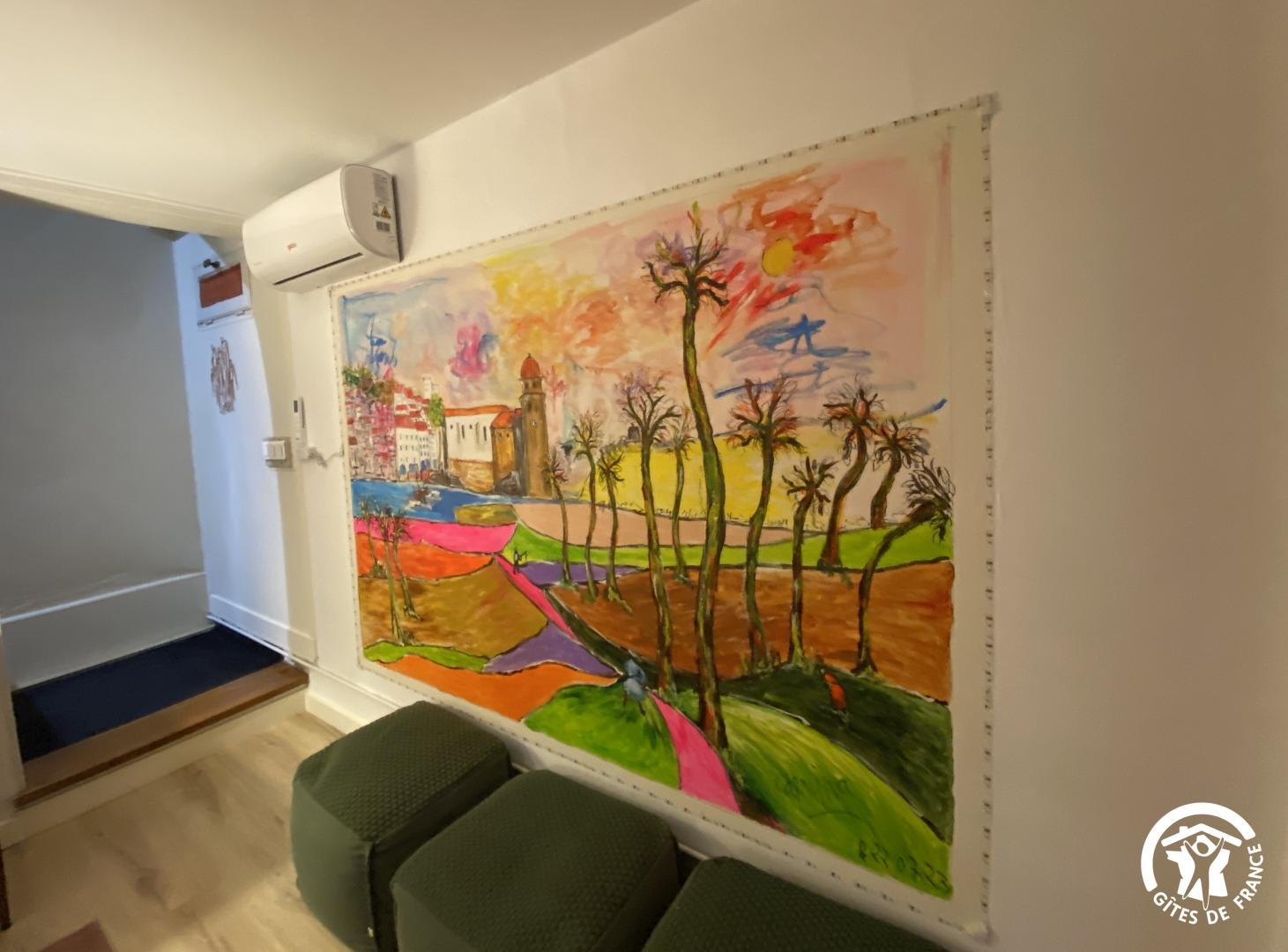 Depuis Le Soler, partez notamment à la découverte de Perpignan, du Canigó, de Collioure. Randonnez, visitez les vignobles, ou promenez-vous sur Les plages de la Méditerranée. Aménagée dans un quartier du Soler, cette maison allie confort moderne, authenticité et inspiration artistique. Dans chaque pièce de cette maison règne l’esprit de Carmina, artiste peintre, et propriétaire, dont les œuvres ornent murs et extérieurs. Le gîte, décoré avec soin et personnalisé, invite à la détente et à la contemplation. Le jardin privatif clos de 200 m², équipé d’un salon de jardin, d’un brasero, d’un barbecue et d’une plancha électriques, promet d’agréables moments ensoleillés ou à l’ombre des arbres. Pour les amateurs d’art, l’atelier de Carmina est accessible pour un moment hors du temps. La piscine partagée non chauffée (12 x 6 x 1,30 à 2,30 m), accessible toute l’année de 9h30 à 19h30, se trouve à l’arrière de la maison, avec accès par un portillon, sur la propriété des propriétair
