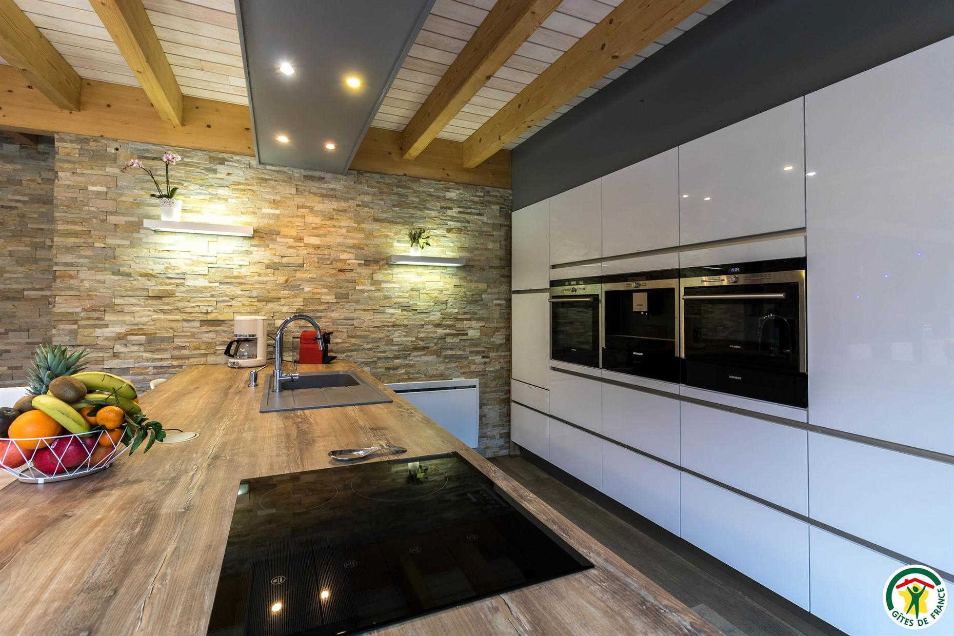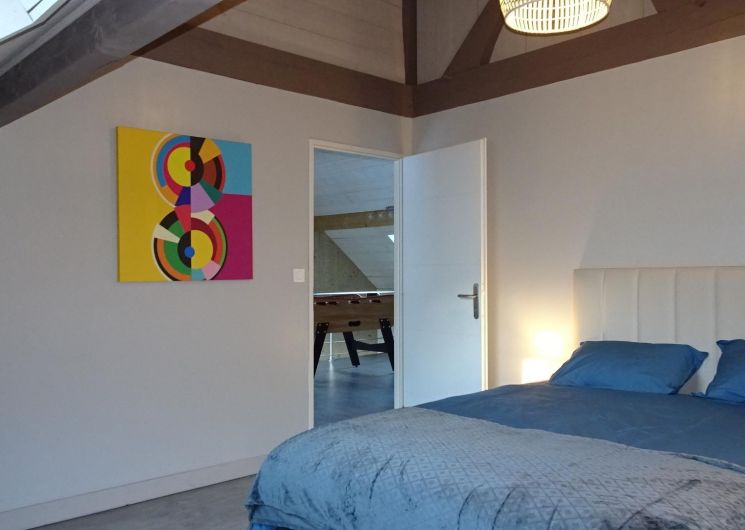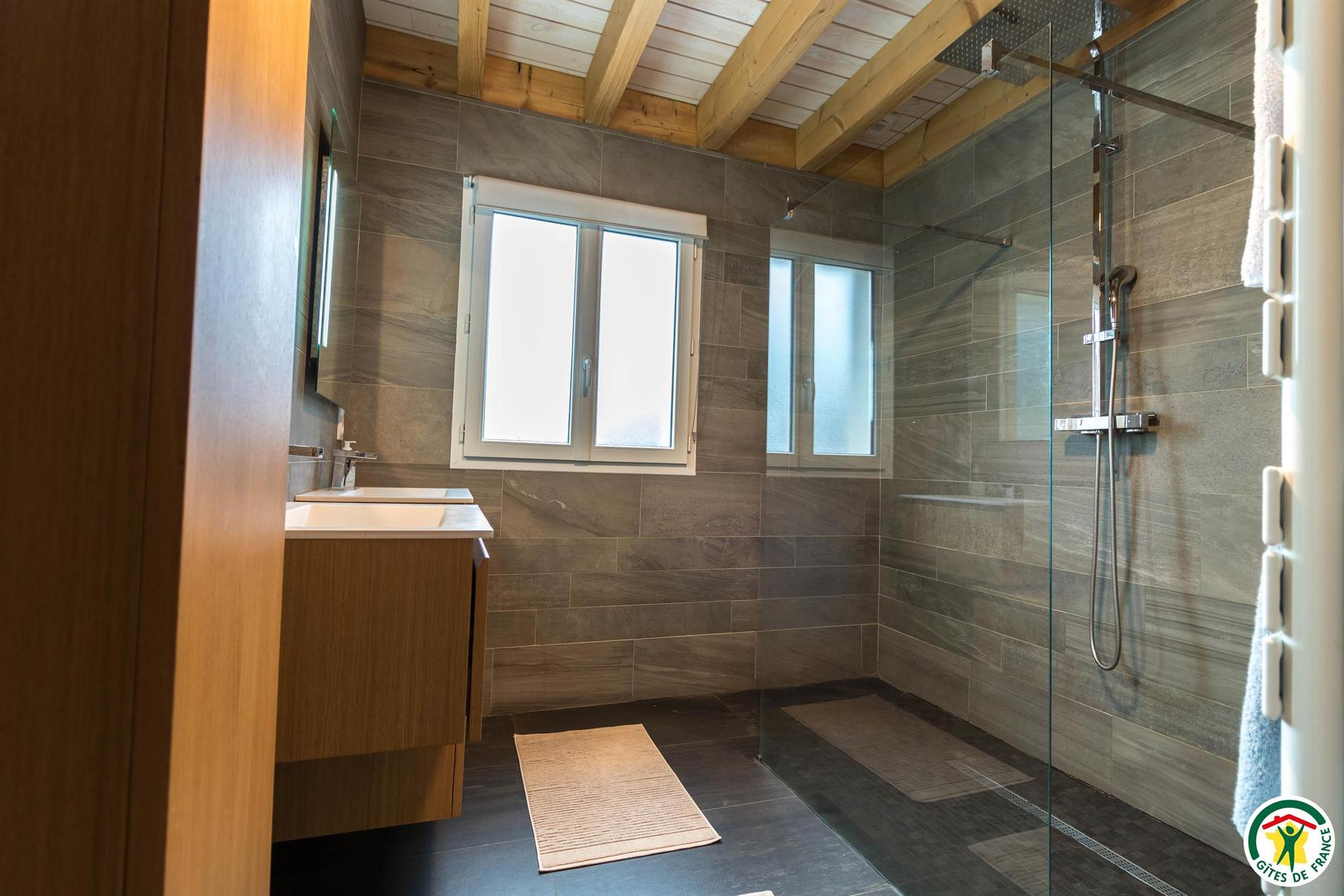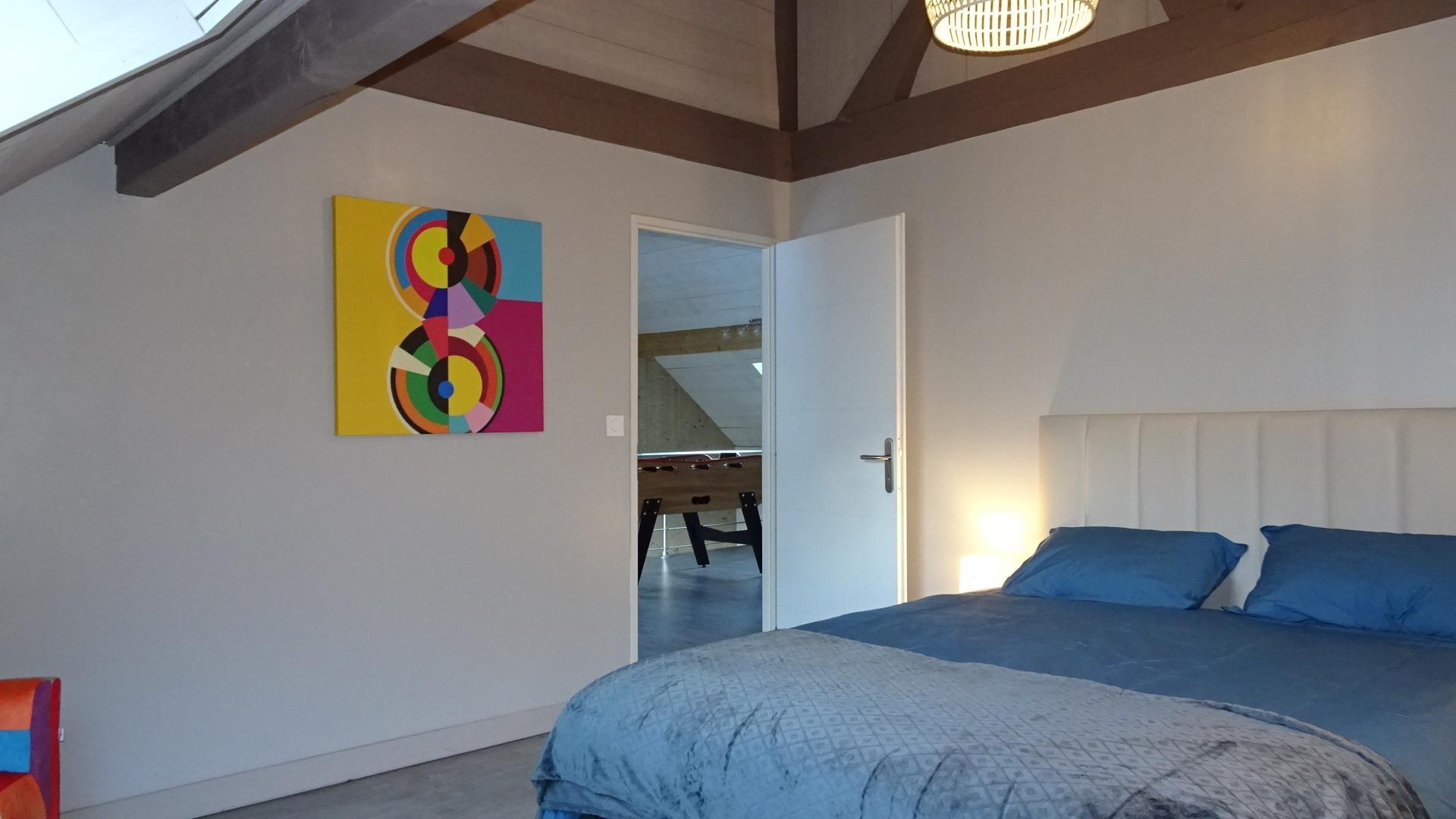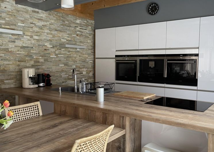Casa rural de 133m2 en terreno cerrado de 460m2. Planta baja: entrada con armario, salón de 48m2: salón con 2 sofás y TV de pantalla plana de 140cm (barra de sonido y altavoz Bluetooth conectado), aire acondicionado reversible en el salón y calefacción eléctrica, cocina equipada con electrodomésticos Siemens: horno pirolisis, microondas, placa de inducción, cafetera de grano a taza empotrada, cafetera Nespresso, cafetera de filtro, trastero: 1 nevera-congelador, lavadora, secadora, máquina de raclette, máquina de fondue y plancha eléctrica, suite principal: dormitorio con 1 cama queen-size (160*200cm), un cuarto de ducha (gran ducha italiana y lavabo doble), un vestidor y un WC separado. Arriba: sala de juegos con futbolín, escritorio y silla de ruedas, TV de pantalla plana de 120 cm, sofá, 2 dormitorios, cada uno con 1 cama de matrimonio (160*200 cm), cuarto de baño con ducha (ducha italiana y lavabo) y vestidor privado.