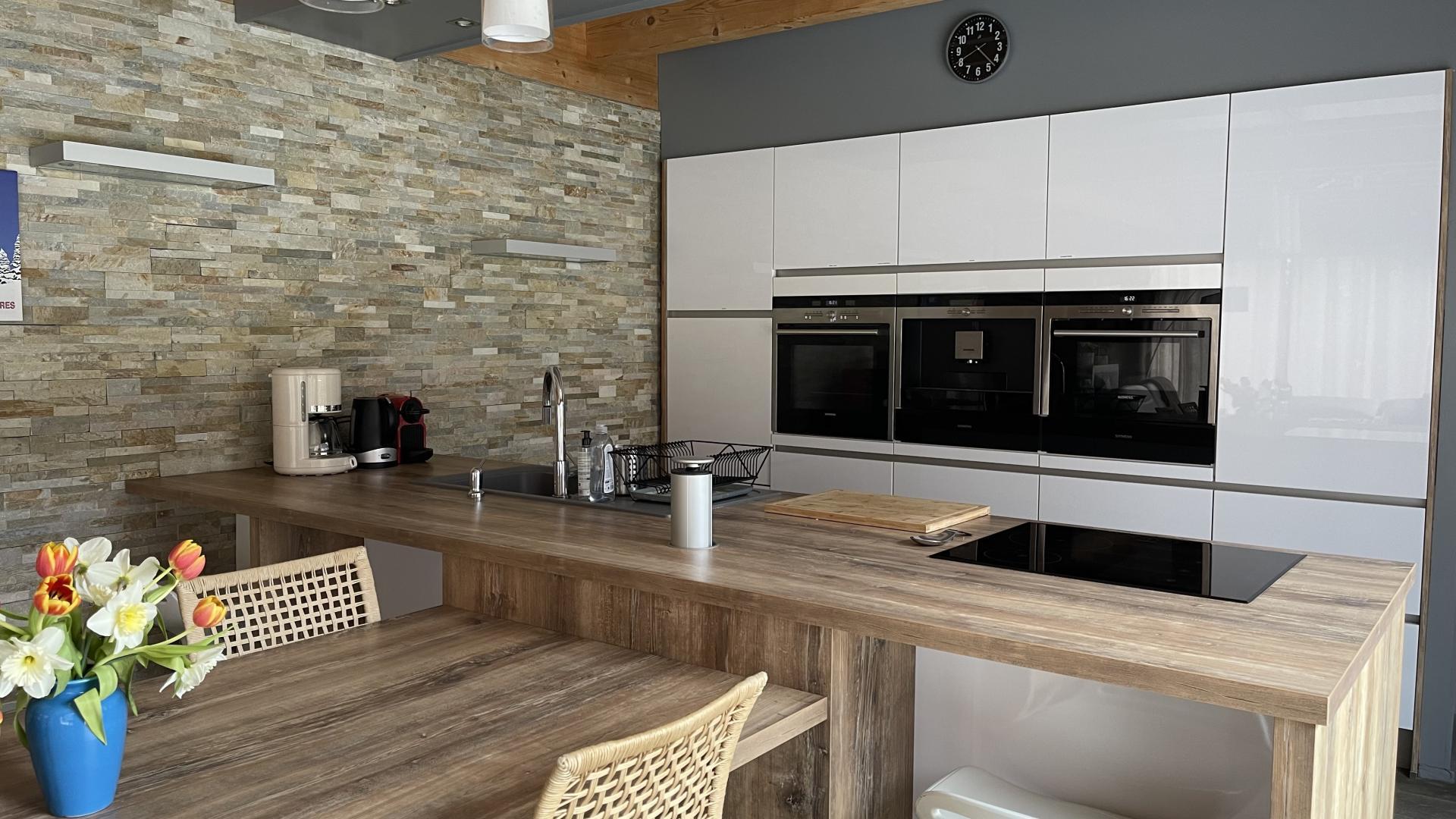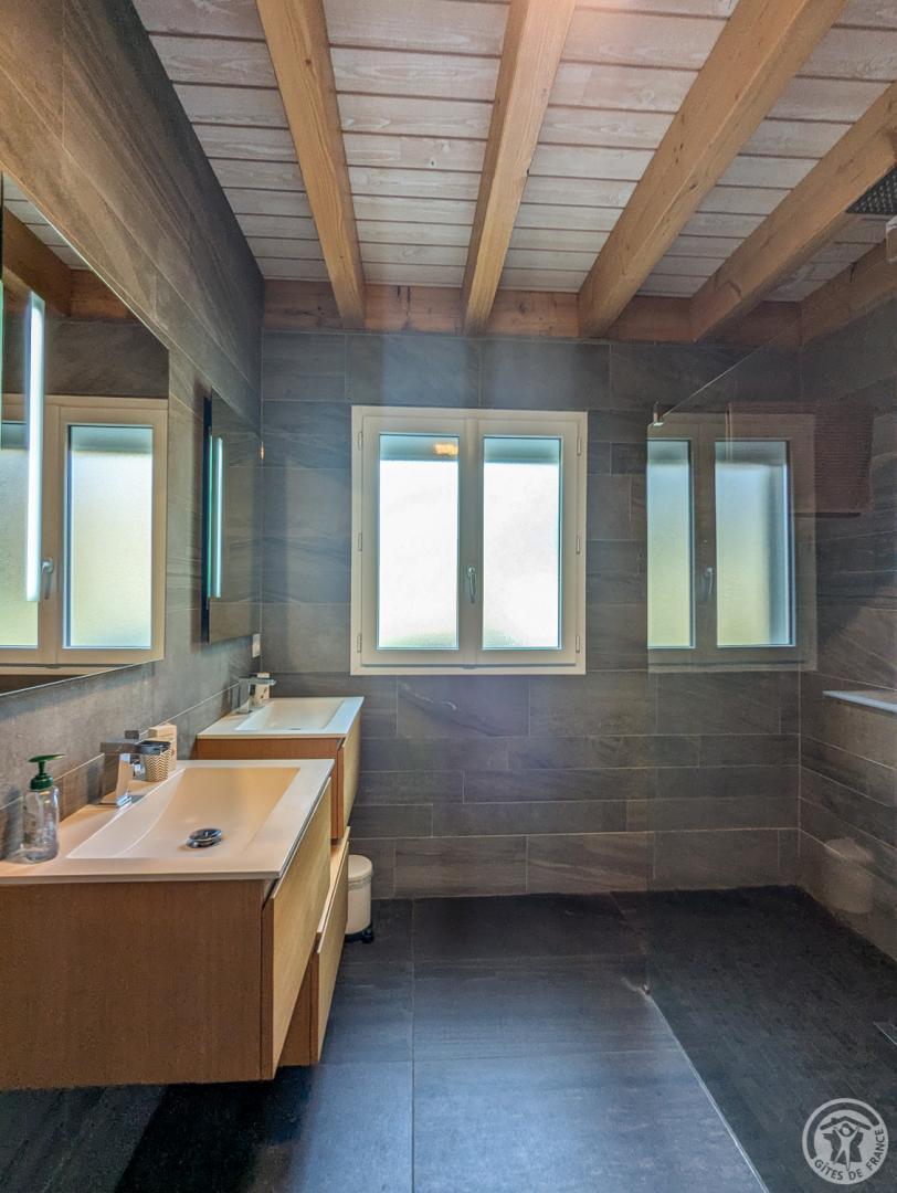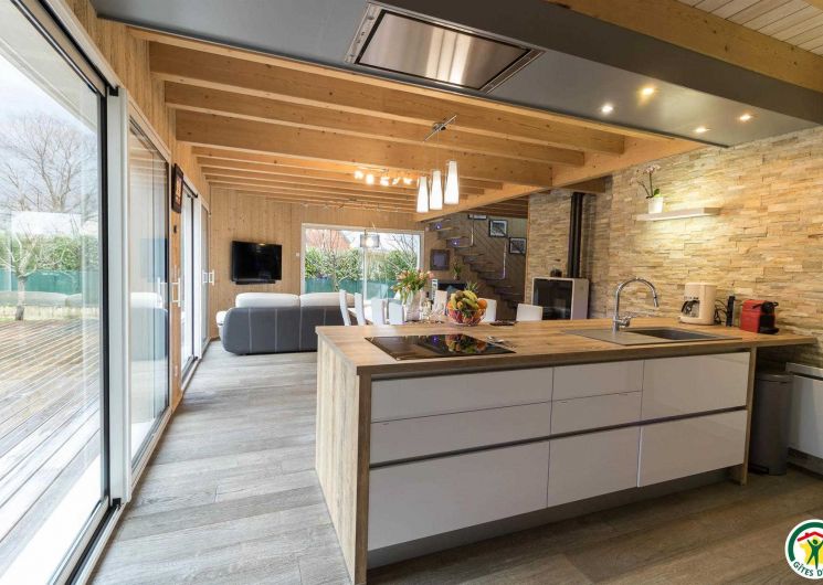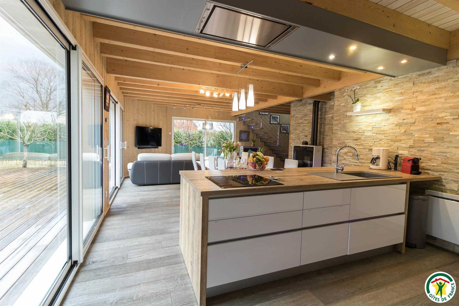 Casa rural de 133m2 en terreno cerrado de 460m2. Planta baja: entrada con armario, salón de 48m2: salón con 2 sofás y TV de pantalla plana de 140cm (barra de sonido y altavoz Bluetooth conectado), aire acondicionado reversible en el salón y calefacción eléctrica, cocina equipada con electrodomésticos Siemens: horno pirolisis, microondas, placa de inducción, cafetera de grano a taza empotrada, cafetera Nespresso, cafetera de filtro, trastero: 1 nevera-congelador, lavadora, secadora, máquina de raclette, máquina de fondue y plancha eléctrica, suite principal: dormitorio con 1 cama queen-size (160*200cm), un cuarto de ducha (gran ducha italiana y lavabo doble), un vestidor y un WC separado. Arriba: sala de juegos con futbolín, escritorio y silla de ruedas, TV de pantalla plana de 120 cm, sofá, 2 dormitorios, cada uno con 1 cama de matrimonio (160*200 cm), cuarto de baño con ducha (ducha italiana y lavabo) y vestidor privado.