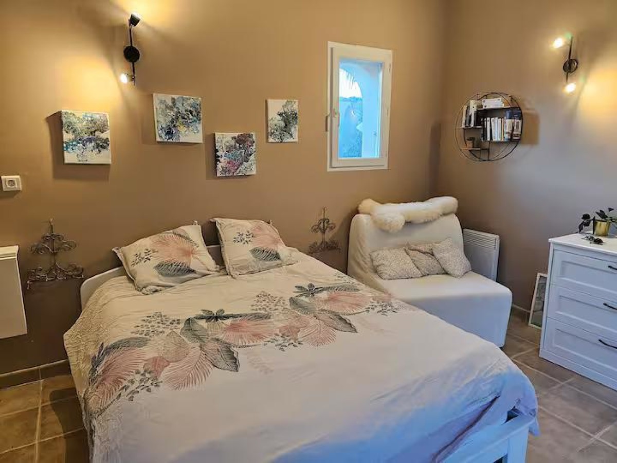 Aux abords de Béziers, entre mer Méditerranée et arrière-pays viticole, Casa Esperranto vous accueille dans un cadre naturel et chaleureux. Cette maison d’hôtes classée 3 épis Gîtes de France est nichée à côté d’un vaste parc arboré de pins, où cohabitent chevaux, lamas et chiens, pour une ambiance bucolique et dépaysante. À quelques kilomètres, découvrez les plages de Valras, le Canal du Midi, les vignobles du Saint-Chinianais ou encore les ruelles historiques de Pézenas et Béziers et sa cathédrale Saint-Nazaire. La propriété propose deux chambres doubles confortables et un studio, chacune équipée d’une salle d’eau ou de bain privative et d’une entrée indépendante, garantissant calme et intimité. • Chambre 1 (rez-de-chaussée) : lit 140×190, salle d’eau privative, accès direct au jardin, coin extérieur privatif. micro-onde, frigo, cafetière et bouilloire sont mis à disposition dans la chambre. • Chambre 2 (1er étage) : lit 140×190, salle de bain privative sur le même étage, terrasse privative donnant sur le parc. • Studio de 18m2 dans une dépendance sur le même terrain : lit double 140×190, salle d’eau privative. Les hôtes peuvent profiter d’un espace extérieur commun avec piscine et jacuzzi, idéal pour se détendre après une journée de découverte. Les enfants trouveront leur bonheur grâce aux jeux extérieurs et à la présence des animaux. Le domaine est entièrement clos et sécurisé. Trois places de stationnement sont disponibles sur la propriété. Le domaine est également peuplé de six chiens, habitués à la présence des visiteurs. L’environnement est calme, naturel et propice au repos, tout en restant proche des grands axes touristiques. ________________________________________ Mot du propriétaire Corinne vous accueille avec générosité et simplicité. Chaque matin, elle prépare un petit-déjeuner gourmand, et propose le soir une table d’hôtes conviviale, mettant à l’honneur les produits locaux et les saveurs du Sud. – Studio climatisé indépendant de la maison principale. Il dispose d’un coin cuisine avec plaque de cuisson, frigo, micro-onde, vaisselle, casseroles, bouilloire, cafetière. Une terrasse privative avec mobilier de jardin.