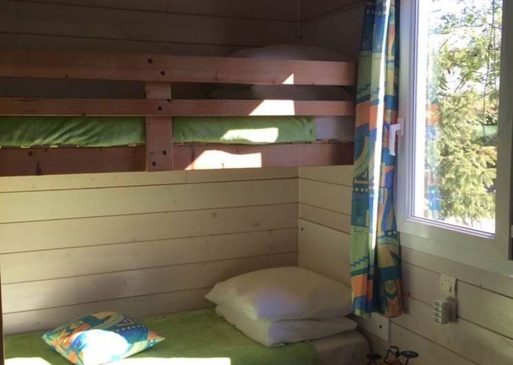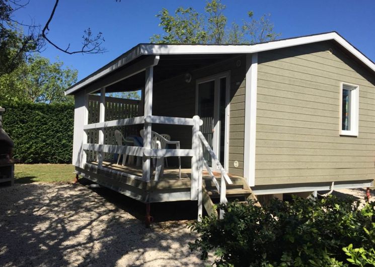 Air‑conditioned chalet located in our family campsite, in a peaceful environment, with access to a heated swimming pool and a private beach on the Cèze River, 2 km away.