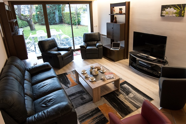 – Planta baja: Una gran entrada por el lado de la calle y otra por el lado del patio, una amplia cocina totalmente equipada, una habitación infantil con TV, un aseo, un gran salón-comedor con chimenea que da a una terraza y al jardín. Zonas de descanso: todas las habitaciones pueden estar equipadas con una cama de 160 cm o dos camas de 80 cm