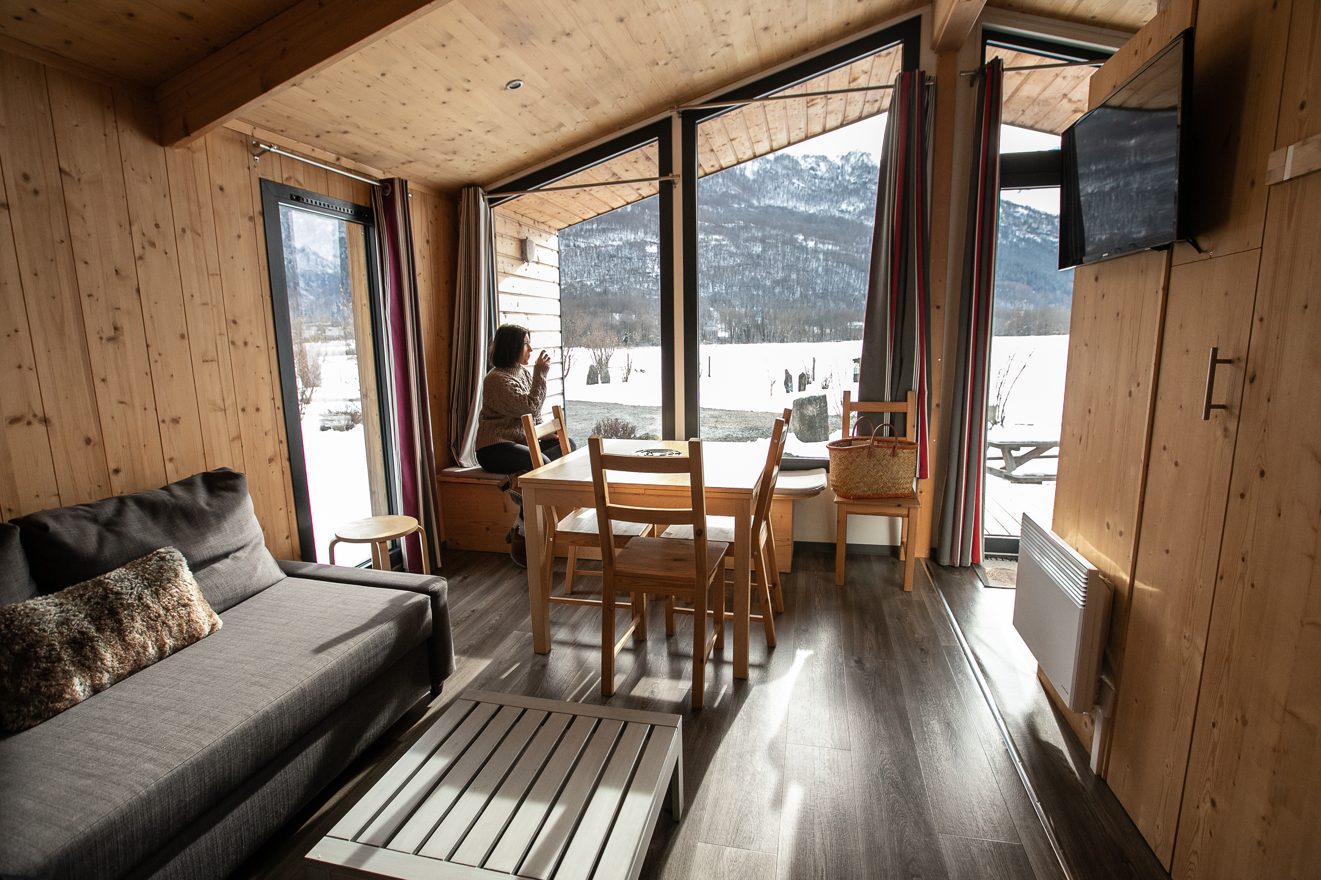 Chalets de 2 a 6 personas. Interior acogedor y confortable.
