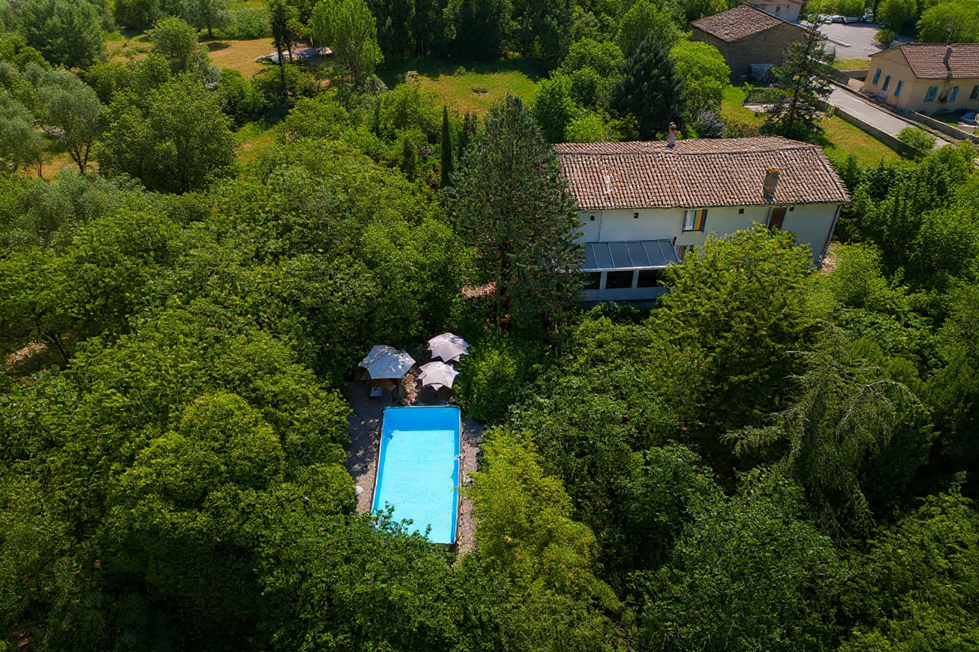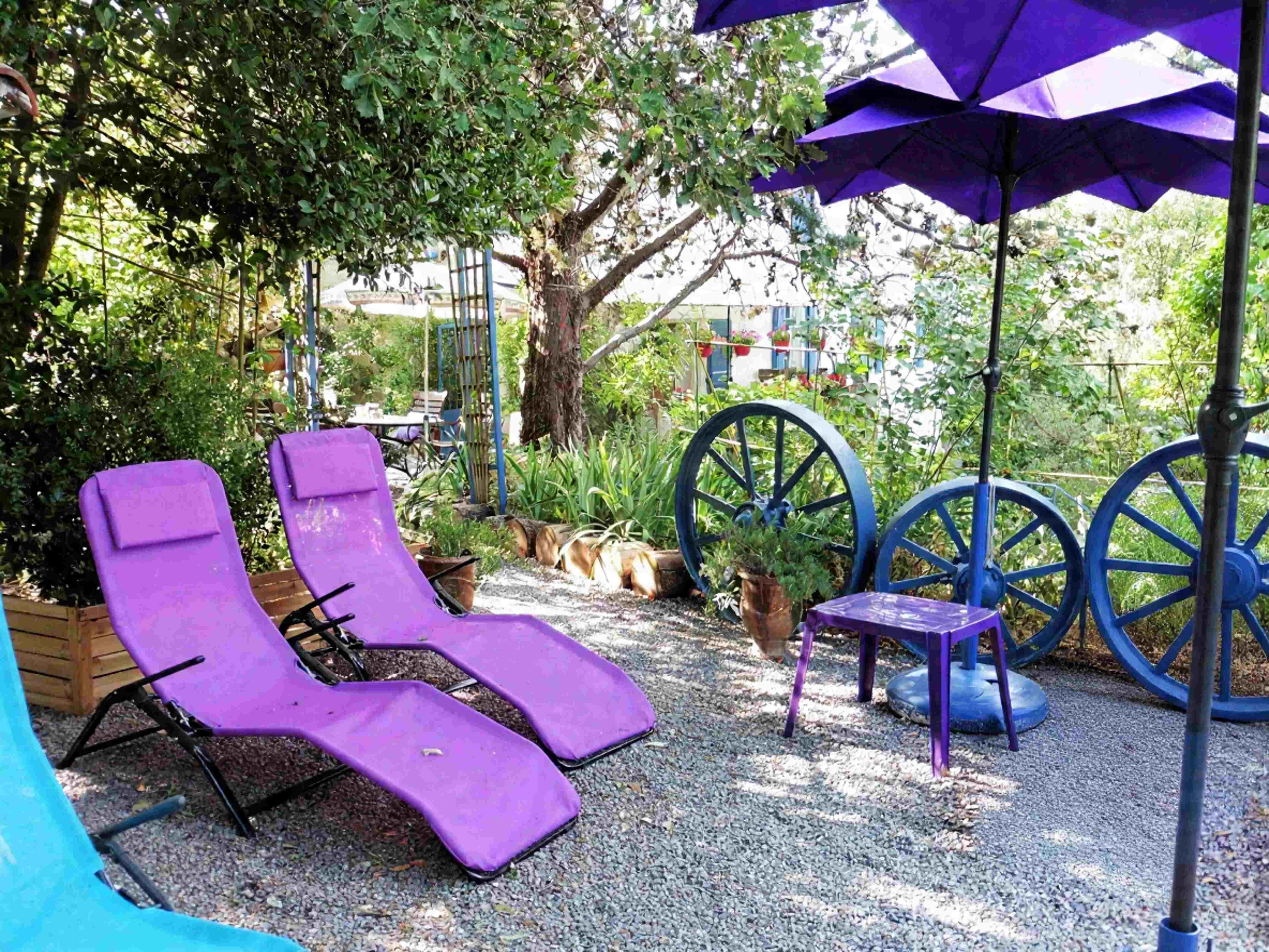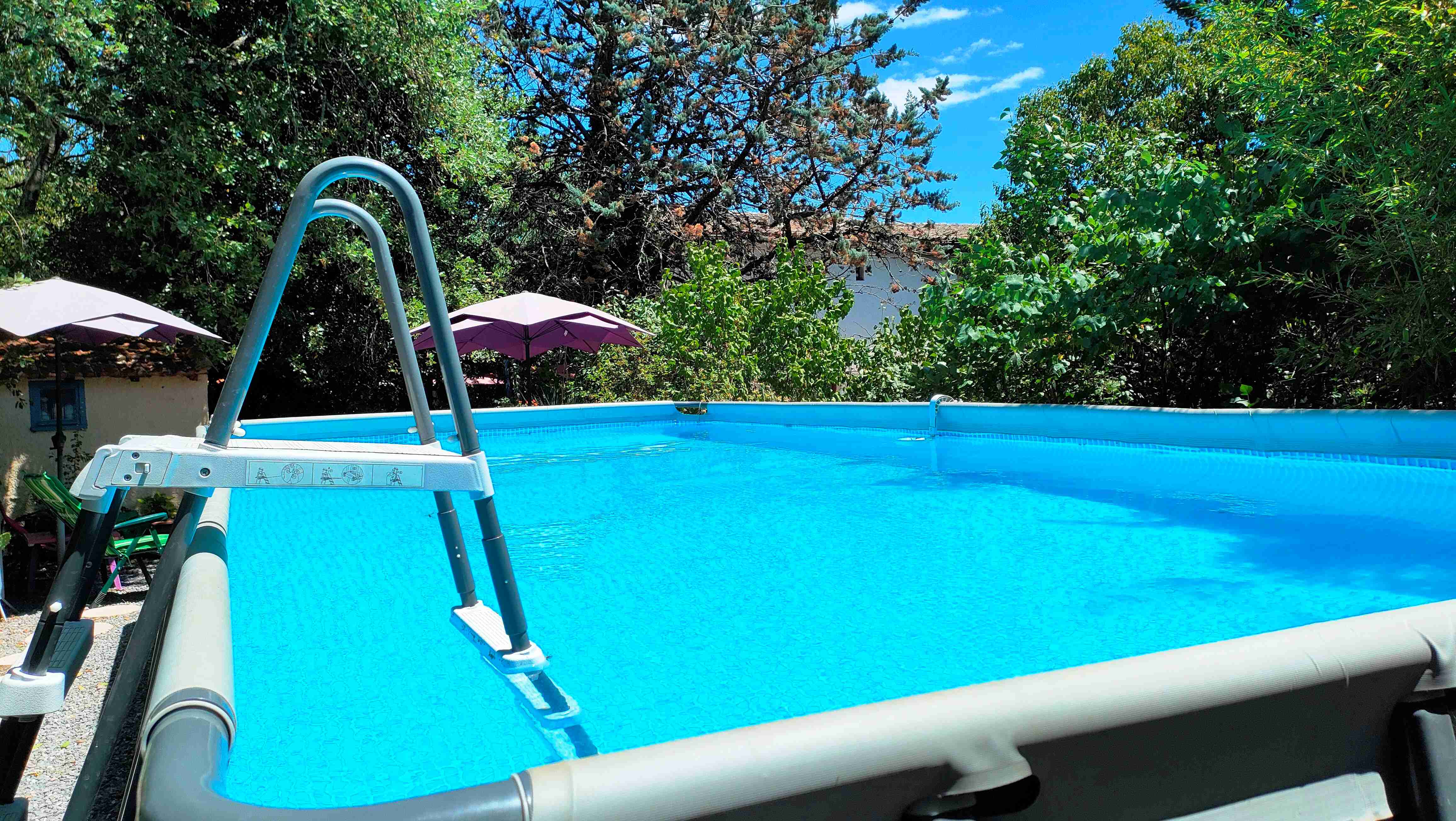 Relajación y bienestar: Aproveche nuestro gran jardín, la piscina sobre el suelo y las tumbonas a la sombra de los olivos para un momento de relajación en total intimidad.