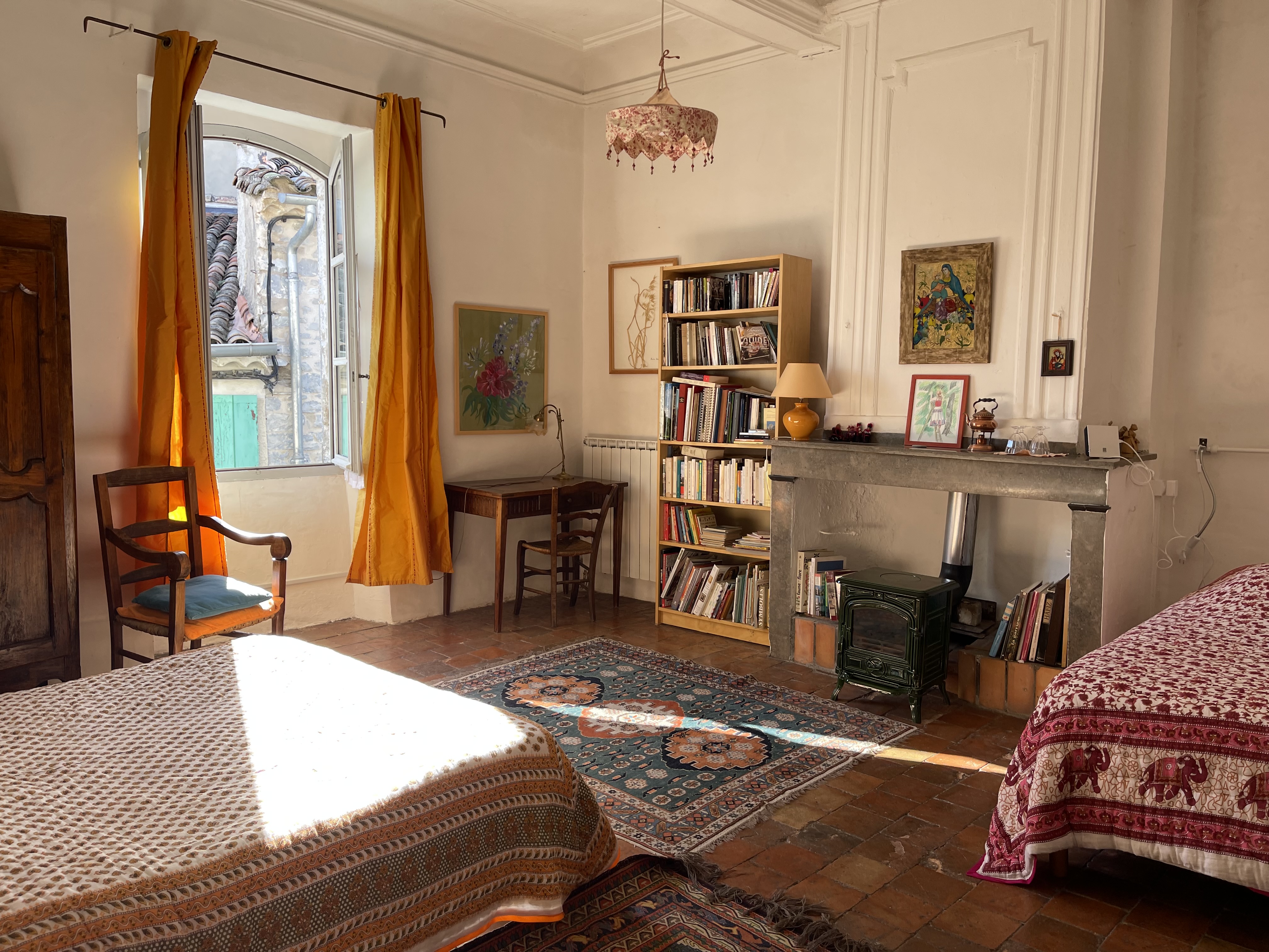 Cada una de las tres espaciosas habitaciones está decorada con cuadros de flores y hierbas de las Cevenas, creados por Corine.