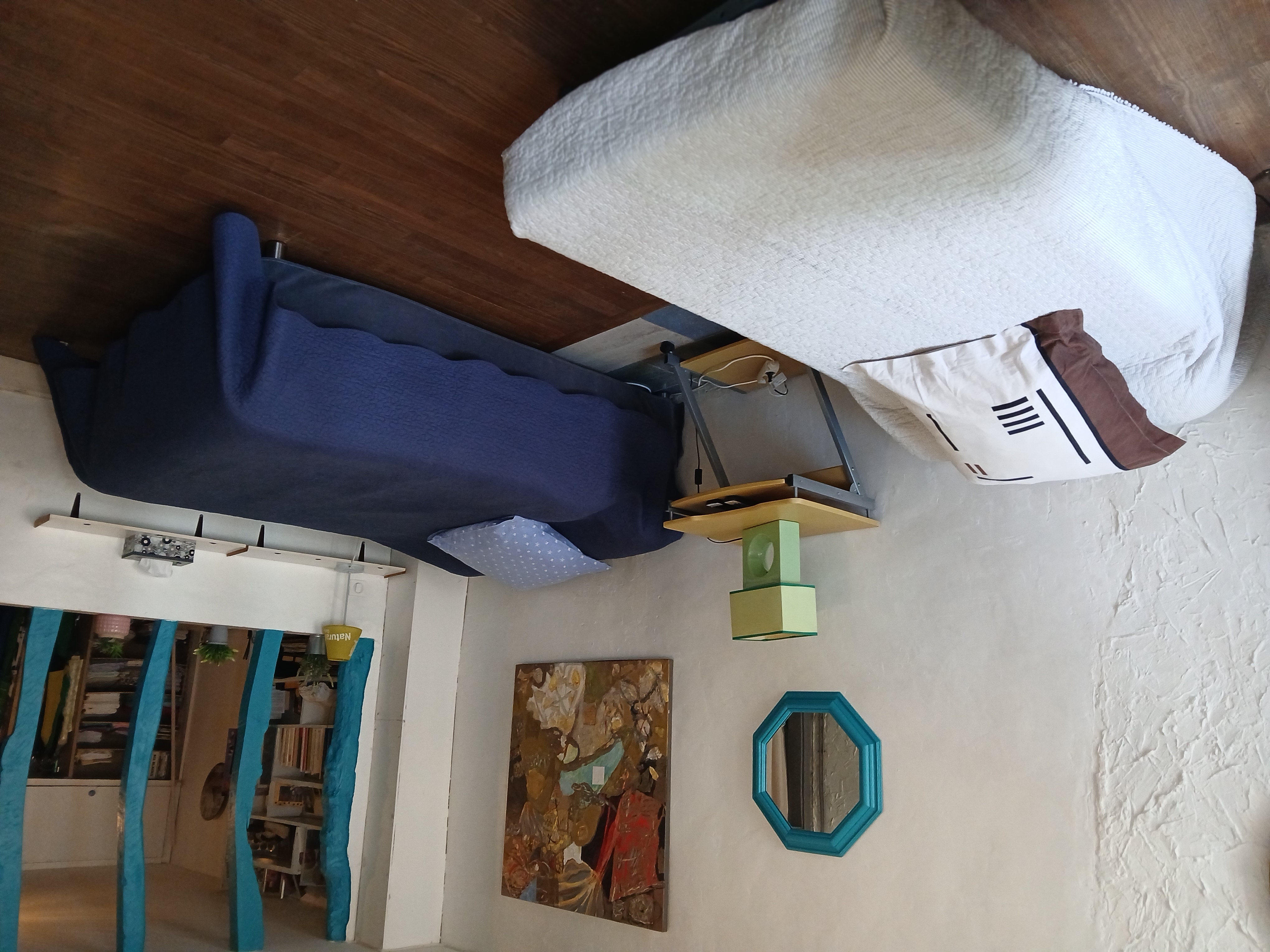 En la primera planta se encuentra su amplio dormitorio con 1 cama doble y 2 camas individuales combinadas con una decoración contemporánea. Un cuarto de baño privado con ducha y lavabo. WC separado. Una cocina equipada y un comedor en el salón. En la planta baja hay un garaje cerrado donde podrá dejar su moto, bicicletas, equipaje, etc.
