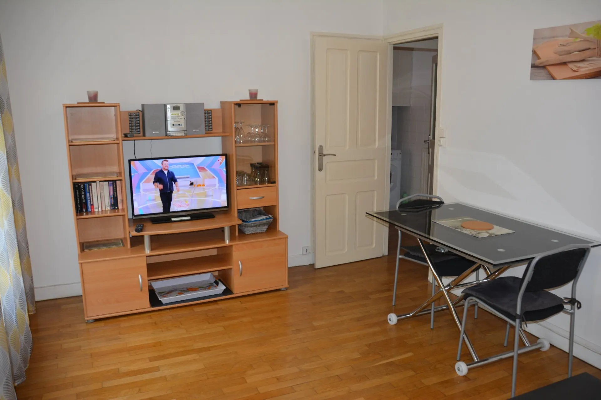 Appartement climatisé 45m² avec connexion WIFI au 1er étage avec parking sur le terrain , une entrée avec placard, une cuisine équipée, un salon séjour avec clic clac, une salle d’eau avec cabine de douche, un wc séparé, une chambre avec lit 140 donnant sur balcon. Location de linge à la demande.