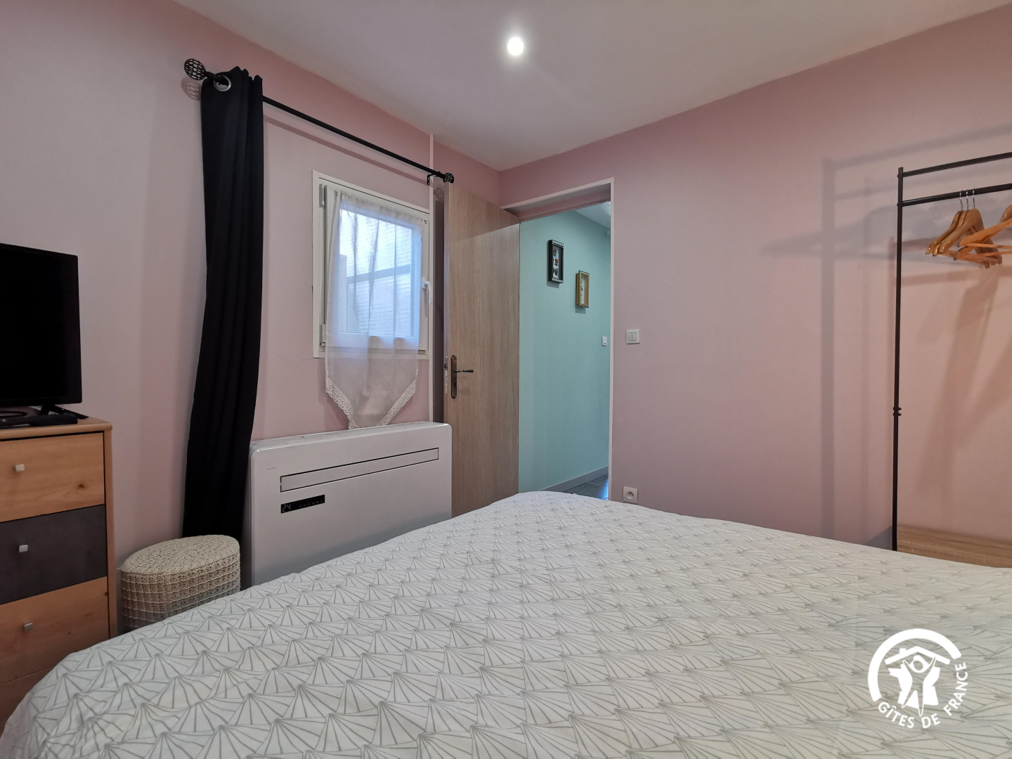 Esta casa rural, decorada en estilo cocooning, le ofrece el marco ideal para combinar descanso y descubrimiento, todo ello en un ambiente cálido y auténtico. Disfrute de la piscina sobre el suelo, compartida y no climatizada (8,57 x 4,57 x 1,45), abierta de mediados de mayo a mediados de octubre, con un horario de apertura de 10:00 a 20:00. Un gran jardín común y una terraza privada para momentos de convivencia inolvidables. La casa rural, en la planta baja: Sala de estar con porche que da a una terraza privada de 12 m² con muebles de jardín y plancha. Cocina equipada: congelador, microondas, lavavajillas con rincón comedor. Habitación con 1 cama doble (140×190) Cuarto de ducha (wc) Aire acondicionado móvil disponible. Dos lavadoras compartidas en un cobertizo fuera de la propiedad. Aparcamiento vigilado y cubierto para las motos. La propiedad también incluye la residencia de los propietarios, un barco inusual, 3 casas rurales y una habitación de invitados.