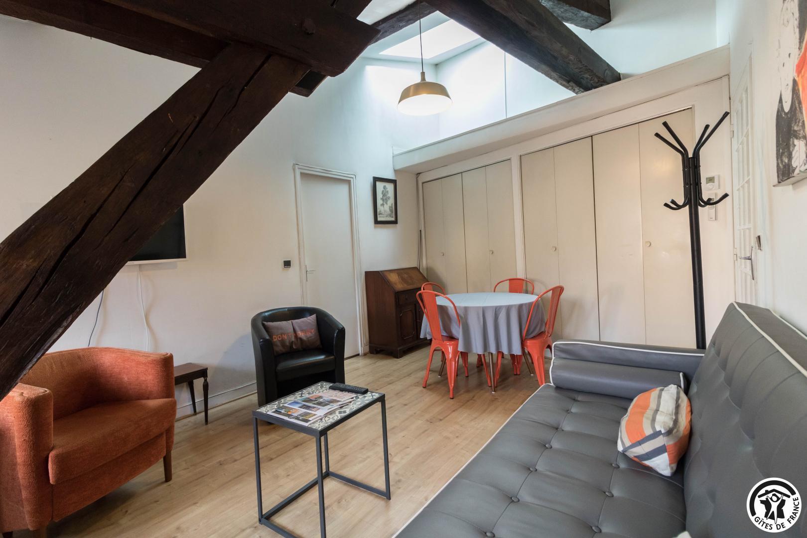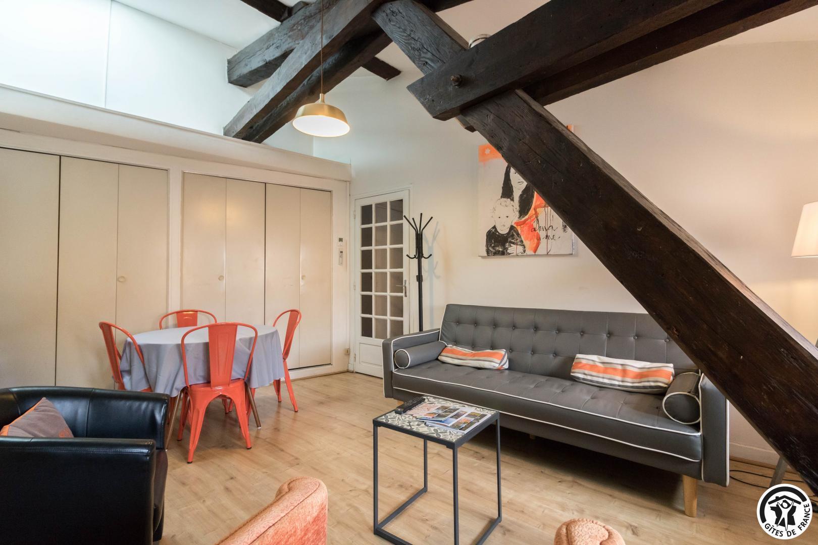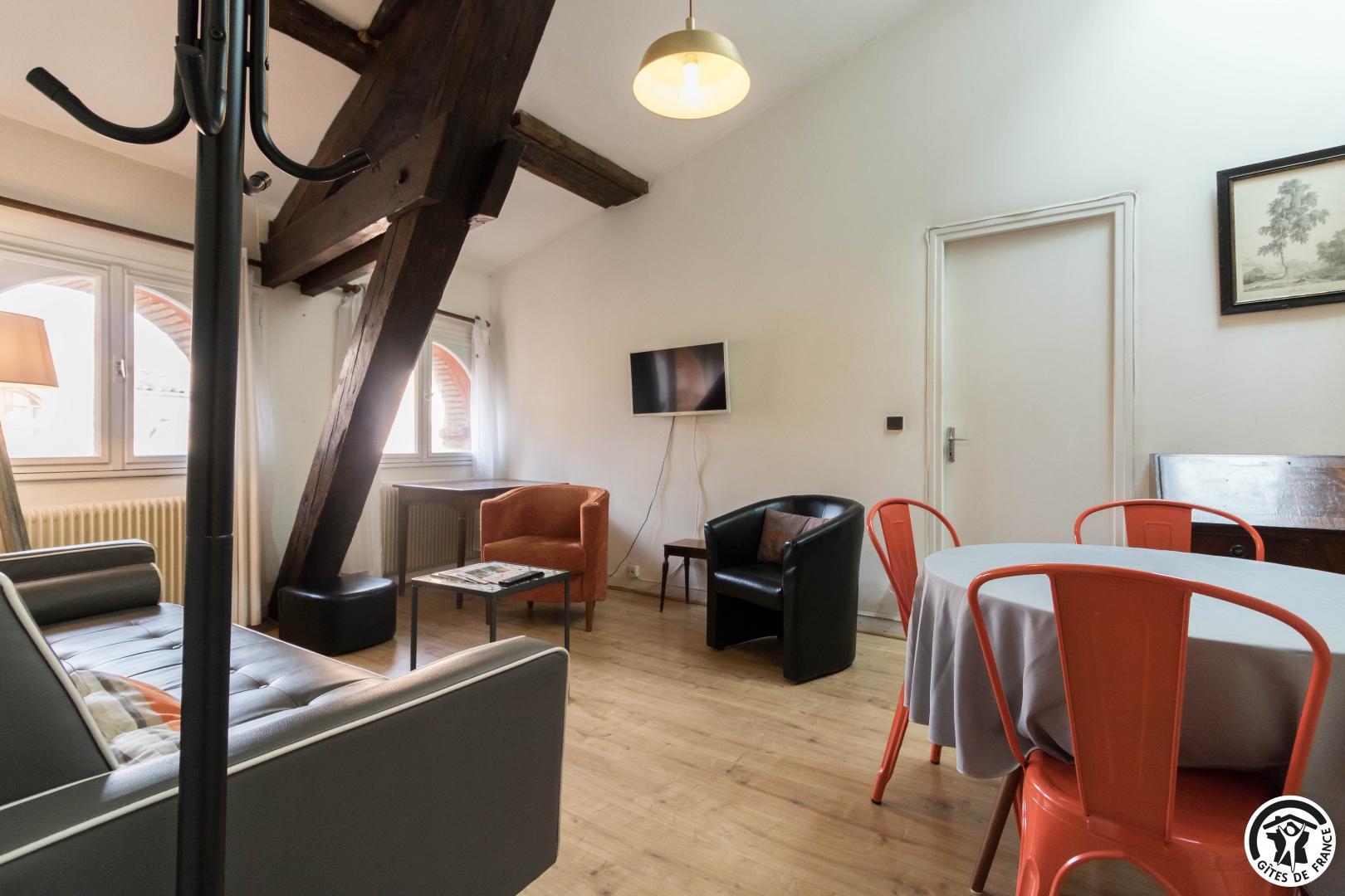 Descubra el increíble Hôtel de Marvejol del siglo XVII, en el barrio de Carmes de Toulouse, alojándose en este apartamento tranquilo y luminoso situado en la tercera planta del Hôtel, al que se accede por una escalera Luis XIII.
