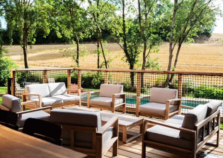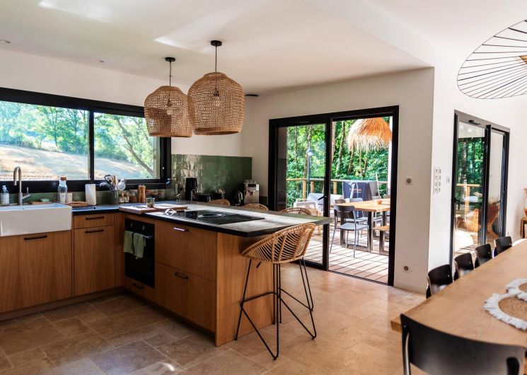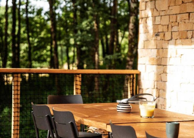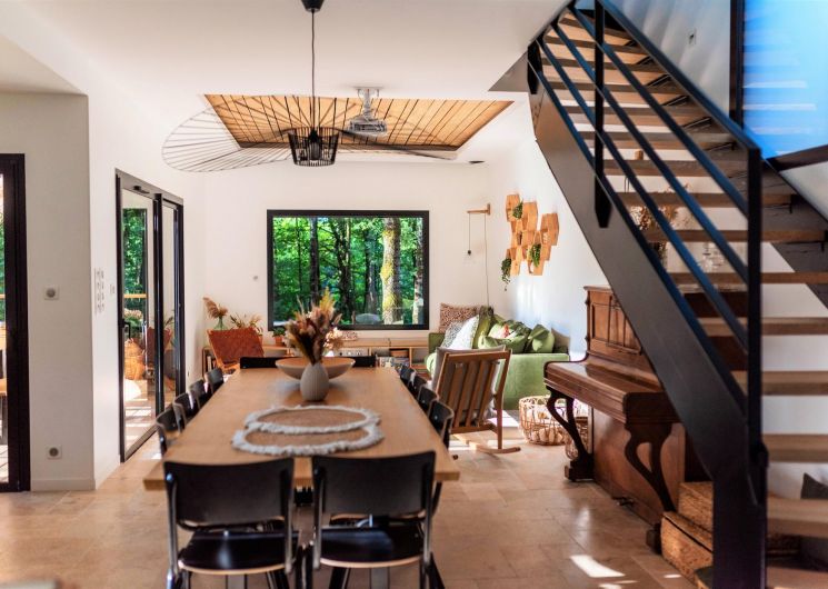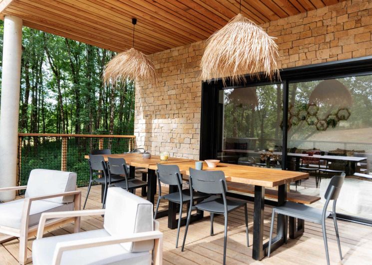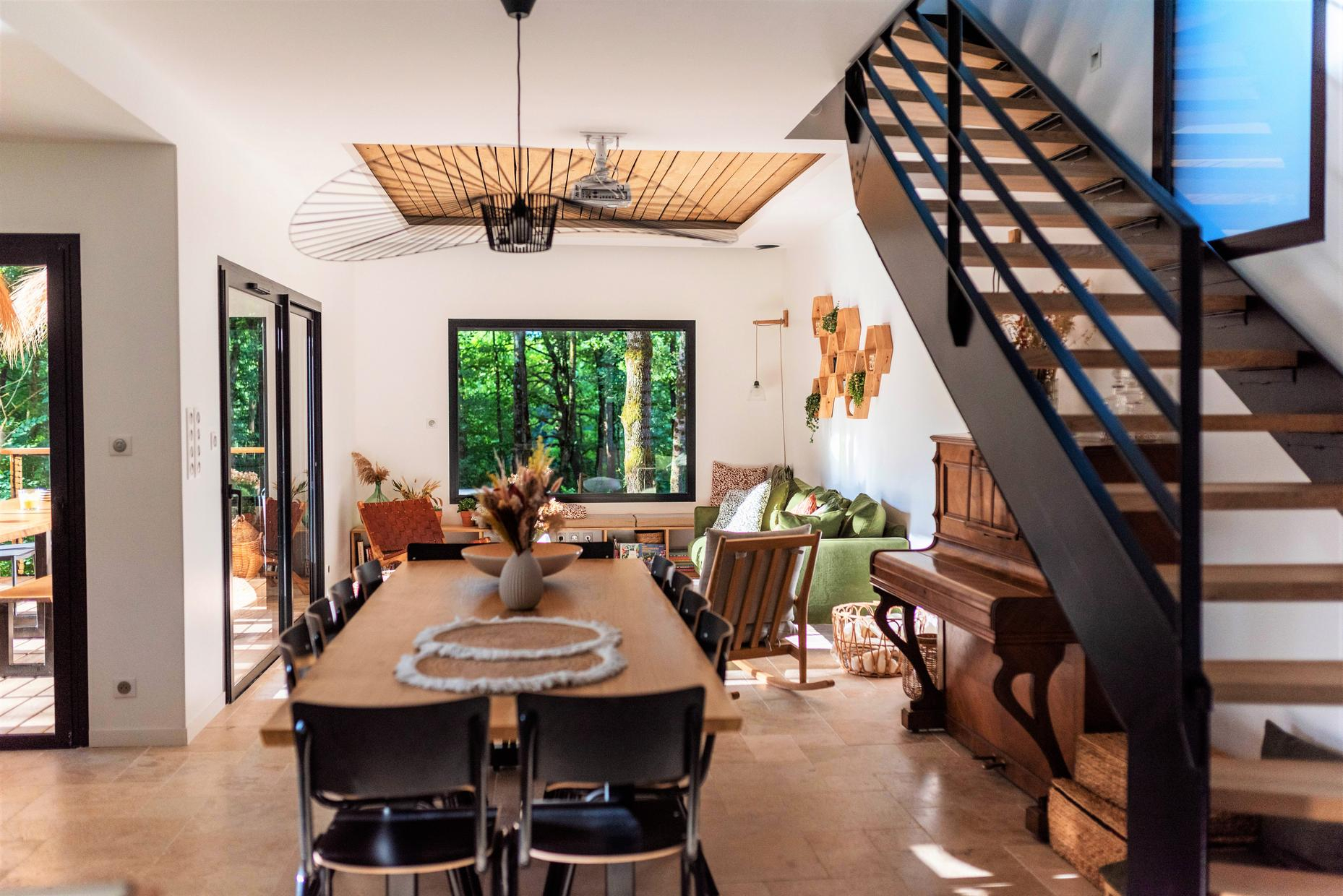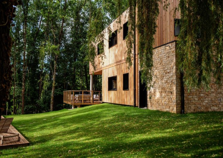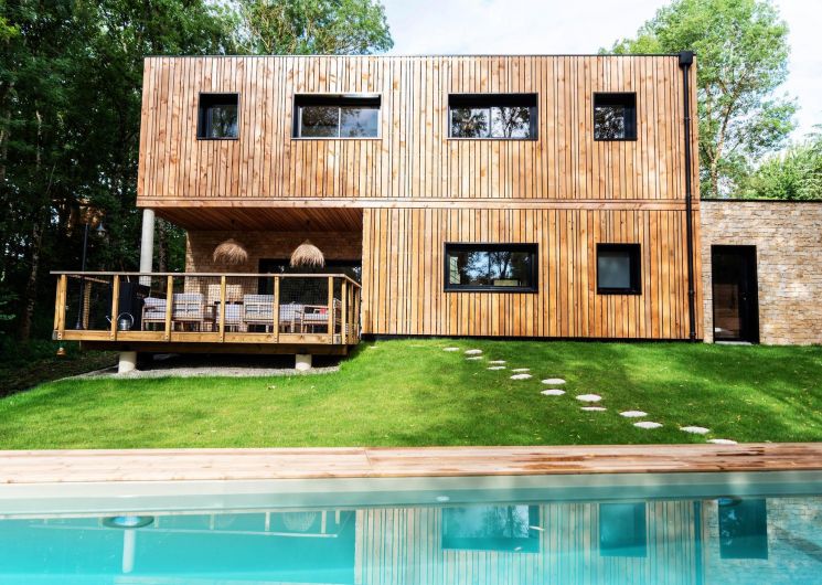 En el exterior, la propiedad es ideal para relajarse, con un jardín privado no cerrado y una gran terraza en la parte trasera de la casa con vistas a la piscina exterior (no climatizada) de 3×9 m (asegurada por una cubierta de bar) y abierta de mayo a octubre (variable en función del tiempo). Baño nórdico para 10 personas (estufa de leña) abierto de octubre a abril.