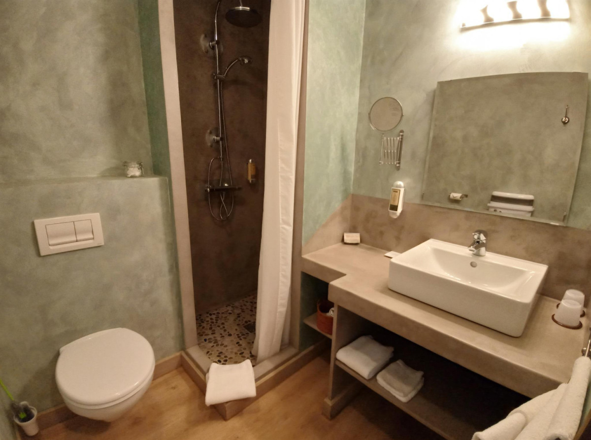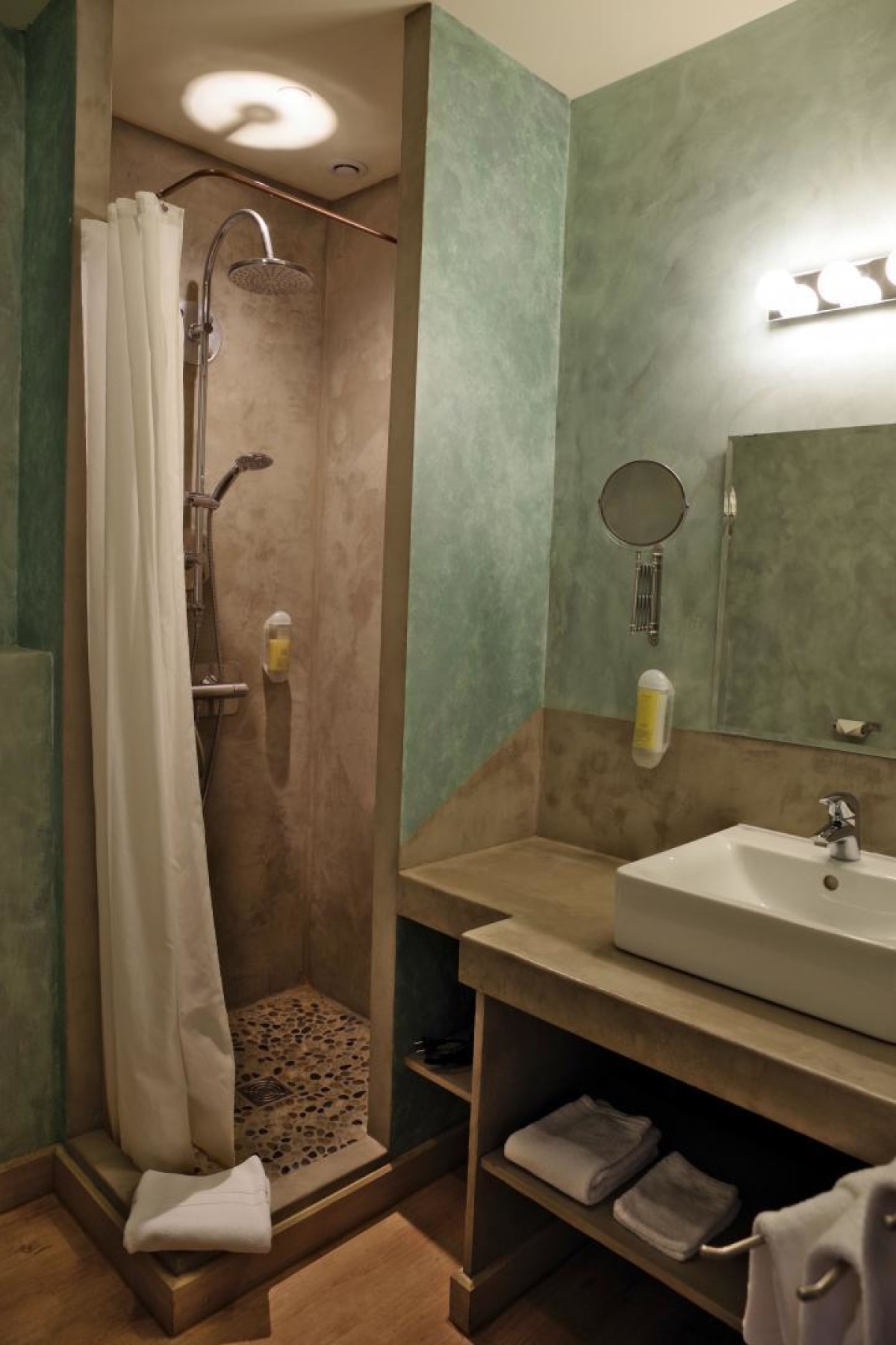Podrá disfrutar de los desayunos al sol en la terraza o en la sala común los demás días. Las habitaciones pueden alojar de dos a cuatro personas (las camas se pueden separar) y disponemos de camas para niños menores de dos años. TV, WIFI con fibra, aire acondicionado en 4 de las habitaciones. En el lugar, nuestro restaurante que sirve productos locales frescos (Maître Restaurateur) le da la bienvenida por la noche de lunes a sábado. ATRACCIONES TURÍSTICAS: Voie verte Passa Païs, enoturismo (viñedos de Faugères y St-Chinian), Parc Naturel du Haut-Languedoc, Massif du Caroux, Gorges d’Héric (vía ferrata, barranquismo), Lac du Salagou (parapente), Chemin de Saint-Jacques, Pézenas, Lodève (museo, festival), Viaducto de Millau (50 km). – La habitación Céladon es acogedora. Situada en el antiguo desván de la casa, con una vista ininterrumpida sobre la plaza del pueblo, la habitación de 20 m² está equipada con ropa de cama de 180×200 Bultex, sábanas y funda nórdica de puro algodón fabricadas en Francia (Linvosges).