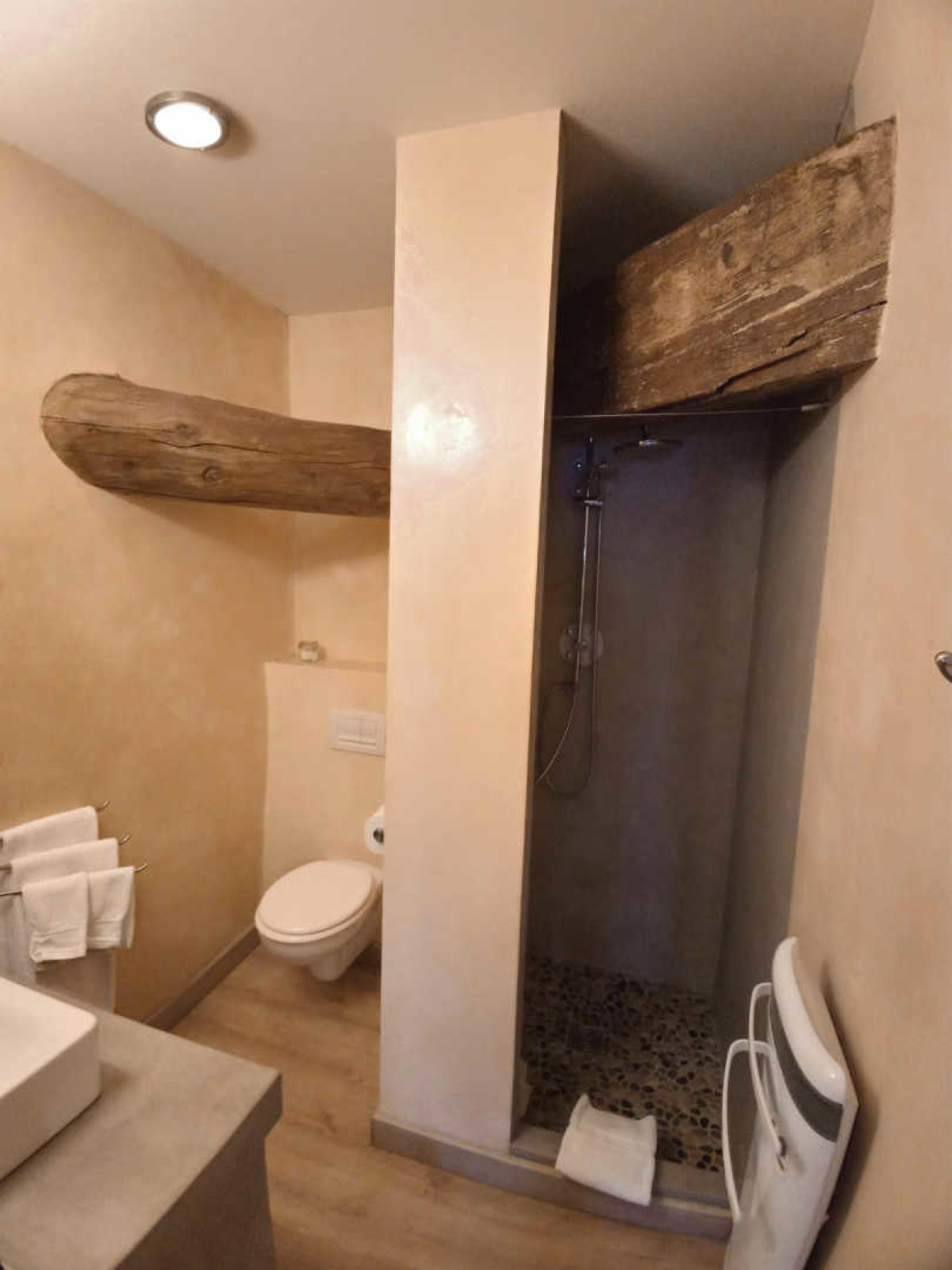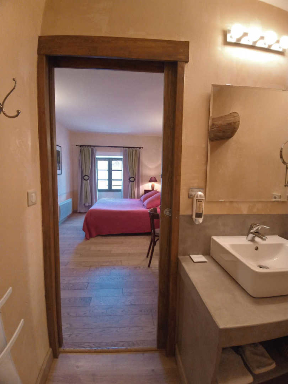 Podrá disfrutar de los desayunos al sol en la terraza o en la sala común los demás días. Las habitaciones pueden alojar de dos a cuatro personas (las camas se pueden separar) y disponemos de camas para niños menores de dos años. TV, WIFI con fibra, aire acondicionado en 4 de las habitaciones. En el lugar, nuestro restaurante que sirve productos locales frescos (Maître Restaurateur) le da la bienvenida por la noche de lunes a sábado. ATRACCIONES TURÍSTICAS: Voie verte Passa Païs, enoturismo (viñedos de Faugères y St-Chinian), Parc Naturel du Haut-Languedoc, Massif du Caroux, Gorges d’Héric (vía ferrata, barranquismo), Lac du Salagou (parapente), Chemin de Saint-Jacques, Pézenas, Lodève (museo, festival), Viaducto de Millau (50 km). – Se trata de una gran habitación climatizada (21m²) orientada al sol naciente, agradable y luminosa. Tiene capacidad para 2 adultos (camas separadas) y una cuna está disponible bajo petición para un niño menor de 2 años. La ropa de cama es muy cómoda, con un grueso colchón Bultex, edredón y sábanas de algodón 100% (Linvosges) para garantizar un sueño tranquilo y reparador. En el armario hay mantas y almohadas adicionales, así como un ventilador. El cuarto de baño está provisto de ducha, inodoro, lavabo, jabón sin parabenos, champú y toallas (100% algodón peinado). Las instalaciones se completan con un secador de pelo.