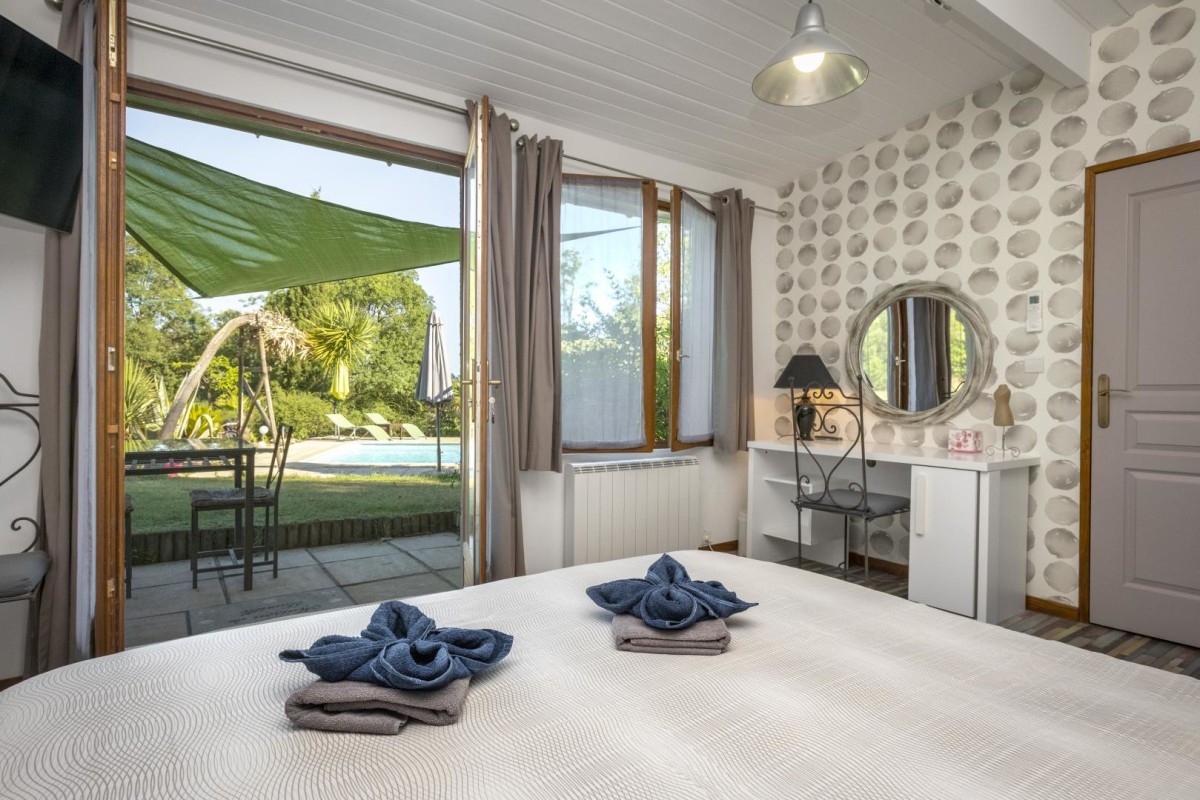 Au sein d’un hameau, passez un agréable séjour en famille ou entre amis dans l’une des chambres du Domaine à l’Aise: modernes, lumineuses et bien décorées, le tout sur un grand domaine arboré avec de multiples espaces extérieurs ! Vous pourrez vous détendre dans votre chambre spacieuse, et vous prélasser au bord de la piscine commune ou encore flâner dans les espaces verts du domaine. Aux alentours, vous pourrez découvrir le charmant village vigneron de Saint-Pargoire, village typique du Languedoc enroulé en escargot et bordé de garrigues et de vignes, avec son église et son centre historique. Non loin, profitez du Lac du Salagou qui offre des activités nautiques et des randonnées au milieu d’un paysage unique. Ne manquez pas non plus de visiter le célèbre village de Saint-Guilhem-le-Désert, classé parmi les plus beaux villages de France, et de faire une randonnée sur ses célèbres sentiers escarpés. Visitez également le village médiéval de Pézenas, avec son superbe centre historique et ses boutiques et ateliers d’artisanat. Le petit-déjeuner proposé est un petit-déjeuner continental, avec produits maison et produits locaux : viennoiseries, yaourts et confitures maison, café, thé, charcuterie… Vous pourrez vous garer de façon privative, et une borne de recharge électrique est également disponible sur demande. – Séjournez dans le Petit Mas, une chambre spacieuse climatisée pour quatre à six personnes avec un espace couchages pour deux personnes au rez-de-chaussée avec un lit en 180x200cm, et un espace couchages à l’étage pour quatre personnes (idéalement des enfants) avec quatre lits simples (modulables) en 90x200cm. Le Petit Mas possède également une salle d’eau avec douche, vasque avec miroir et WC.