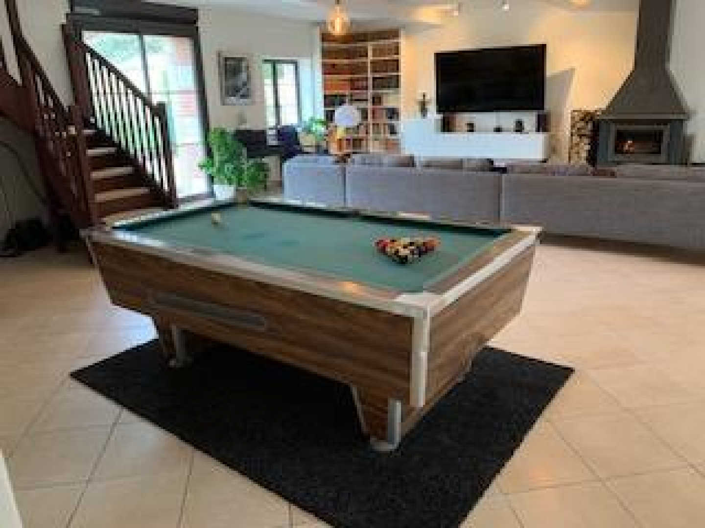 Au rez-de-chaussée, vous trouverez un vaste séjour avec salon chaleureux, cheminée, billard, piano et bar. Une cuisine moderne et bien équipée permet de cuisiner pour toute la famille, avec un accès direct aux deux terrasses extérieures (exposition nord et sud).