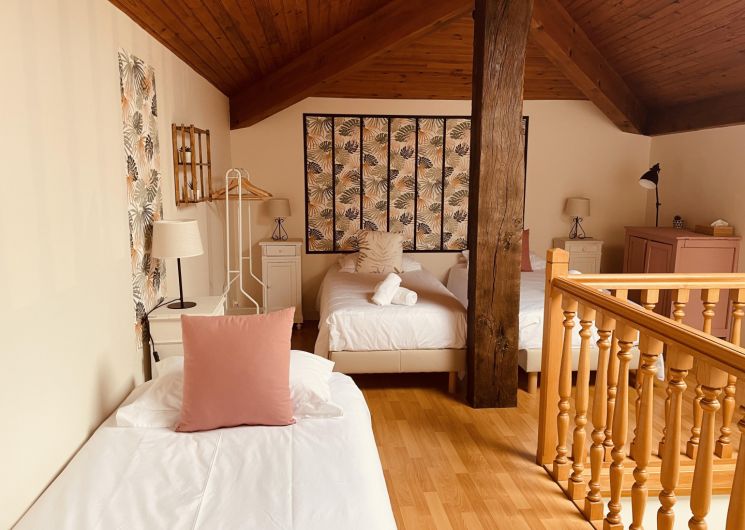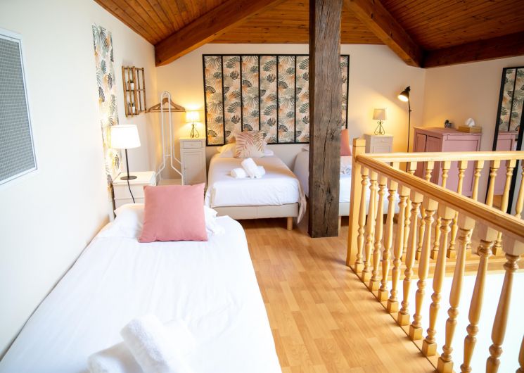 – Mezzanine équipée de 3 lits simples (90×200,
