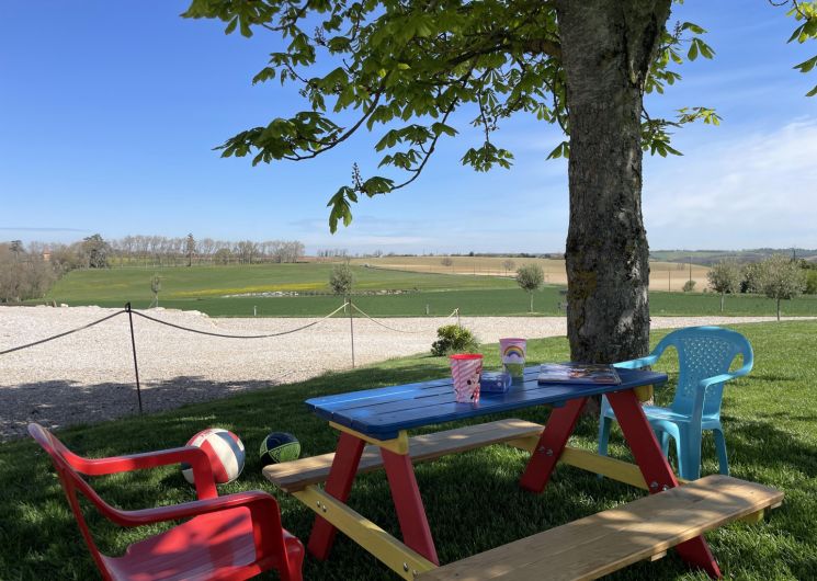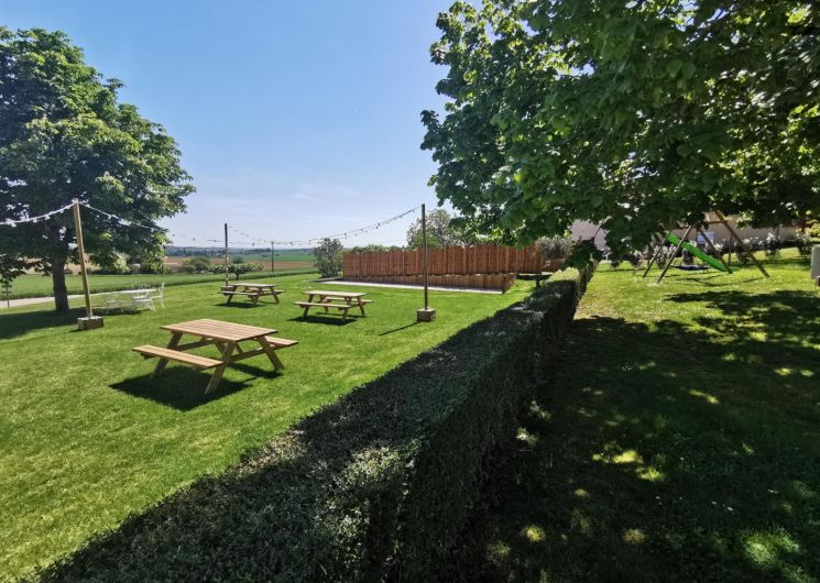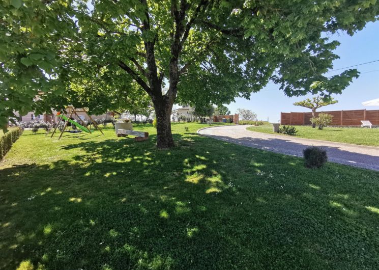 Nos espaces extérieurs entièrement clos et arborés de 2000m2, une piscine hors sol non chauffée (7,60×3,90m) et nos espaces de loisirs aire de jeux.