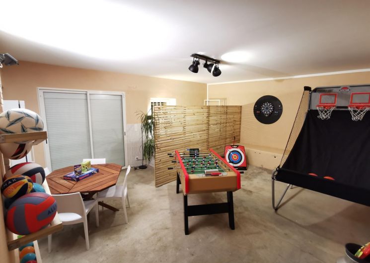 Avec vos enfants ou bien entre amis, vous profiterez d’une salle de jeux avec baby-foot, jeu de fléchettes, tir à l’arc, basket arcade double shoot, Molky et divers jeux de société.
