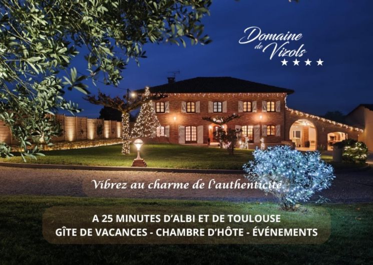 Bienvenue au Domaine de Vizols, lieu idéal pour vos vacances et moments de détente, idéalement situé dans le Pays de Cocagne, à 25 minutes d’Albi et Toulouse à Garrigues, dans notre magnifique département du Tarn.