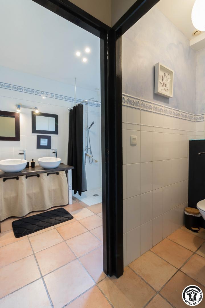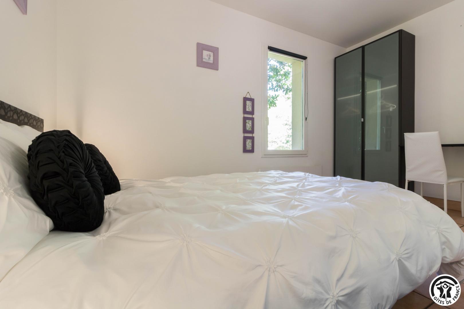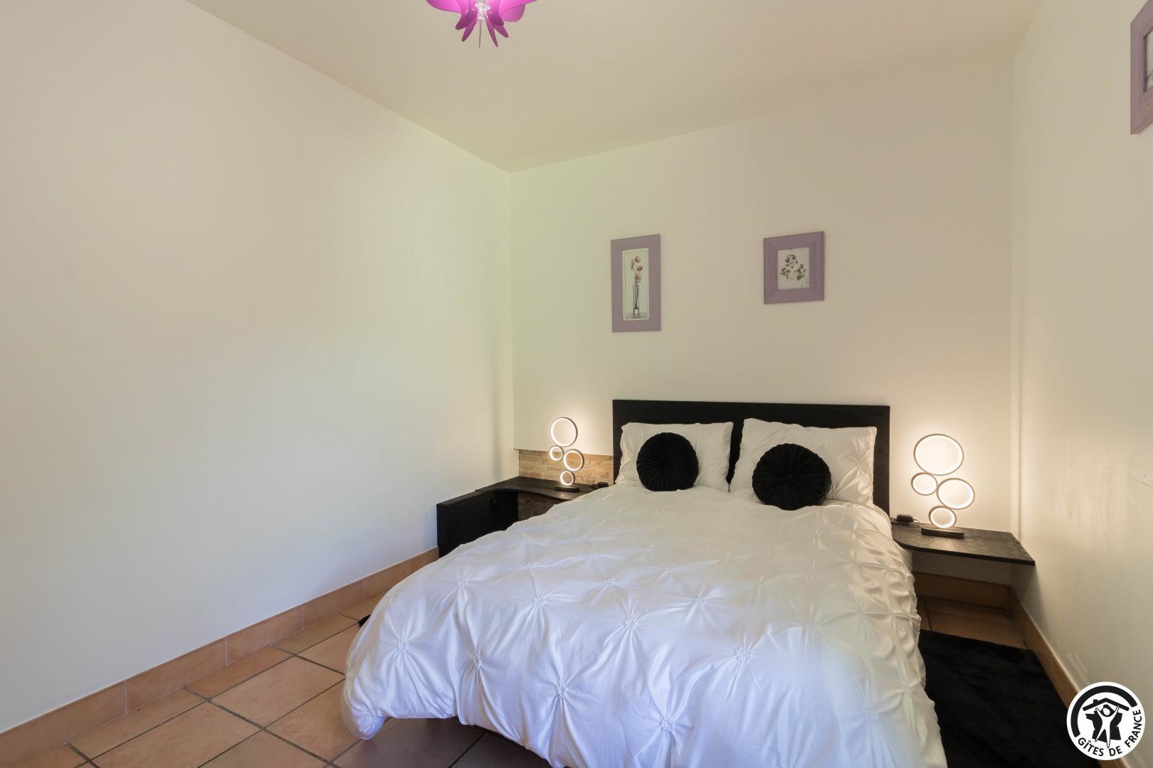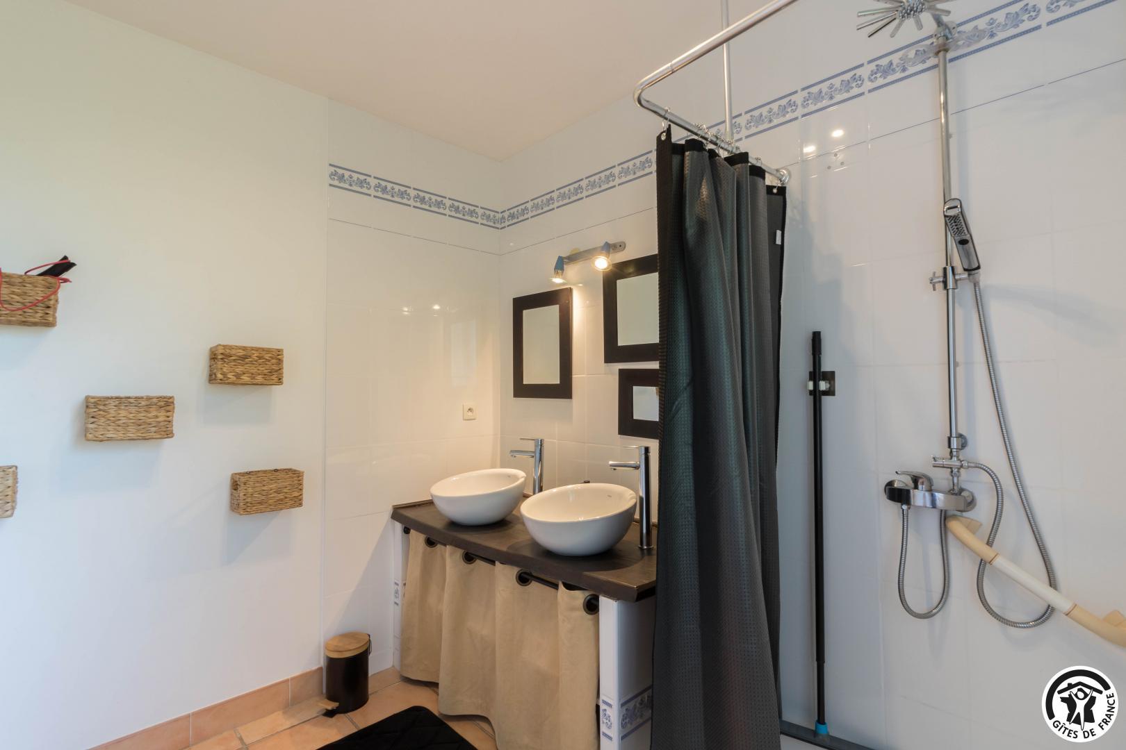 Alojamiento en una sola planta: sala de estar (cocina equipada con horno ciclónico, robot de cocina, puré, batidora y picadora, comedor y sala de estar), 2 dormitorios (1 cama doble 140*190cm y un escritorio)(1 cama doble 160*200cm, accesible a PMR), cuarto de ducha (ducha, WC y silla PMR disponibles) y WC separado.