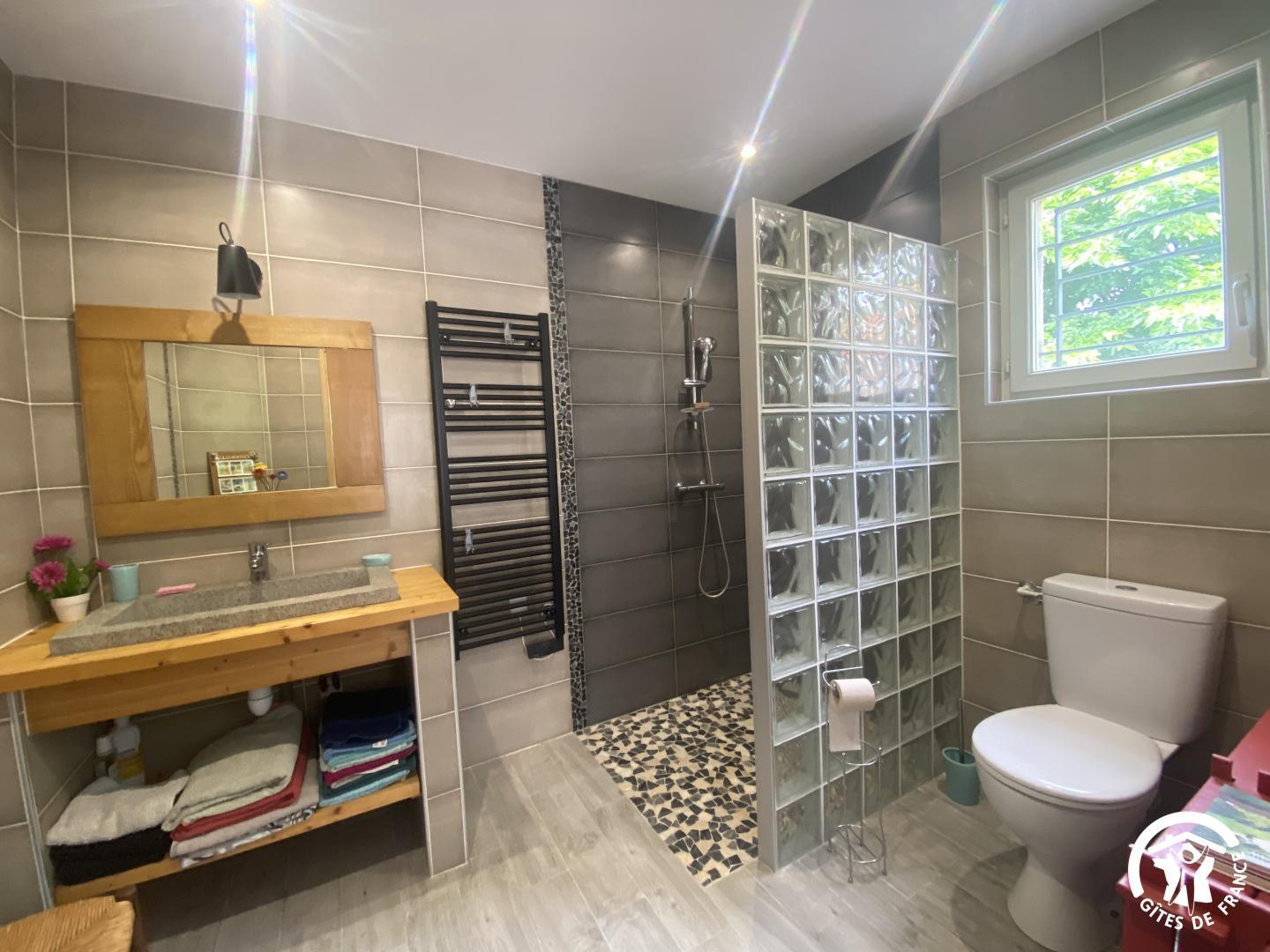 Con su propia entrada, la habitación de huéspedes, accesible por unos escalones, es un acogedor capullo con una cama grande (180 x 190 cm), un cuarto de baño con ducha (lavabo, ducha, WC) y un ambiente sereno. Todas las habitaciones son estrictamente para no fumadores, para mayor comodidad de todos.