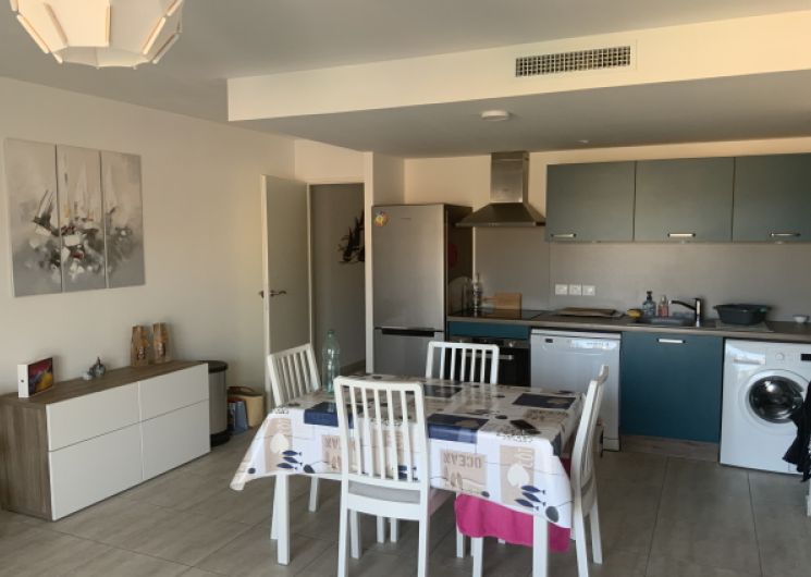 T2 apartment of 52m2 on the 2nd floor of a residence, for 4 people, 1 bedroom, 2 terraces, wifi, garage, private parking.