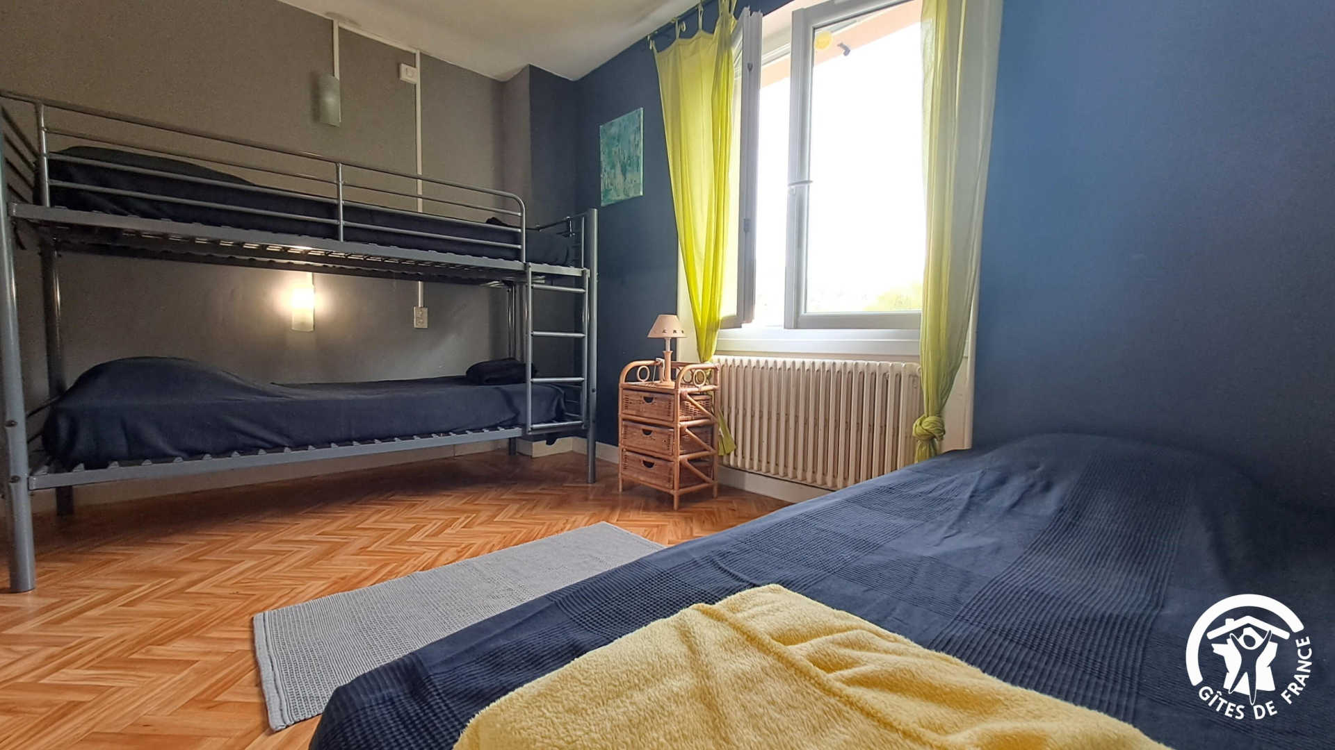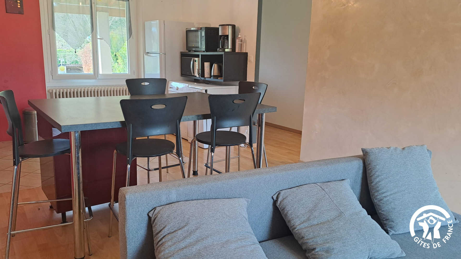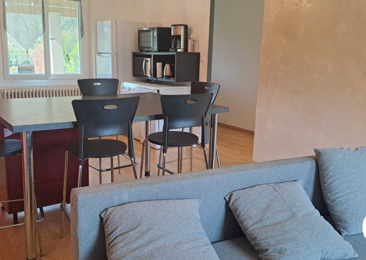 Recientemente renovado, la casa tiene capacidad para cinco personas. Adjunto a un lado de otra casa (sin vis-à-vis), tiene un jardín cercado (500 m²), una terraza cubierta y otra terraza con barbacoa. Se accede por una escalera exterior, en frente o por el jardín, la casa se encuentra por encima de un garaje y un sótano.