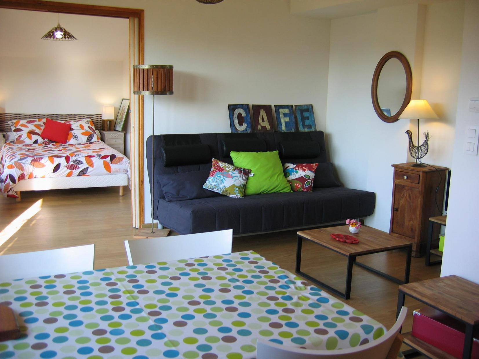 Calefacción central de gas. Cama supletoria para 2 personas disponible en el salón (8 €/noche/persona supletoria).