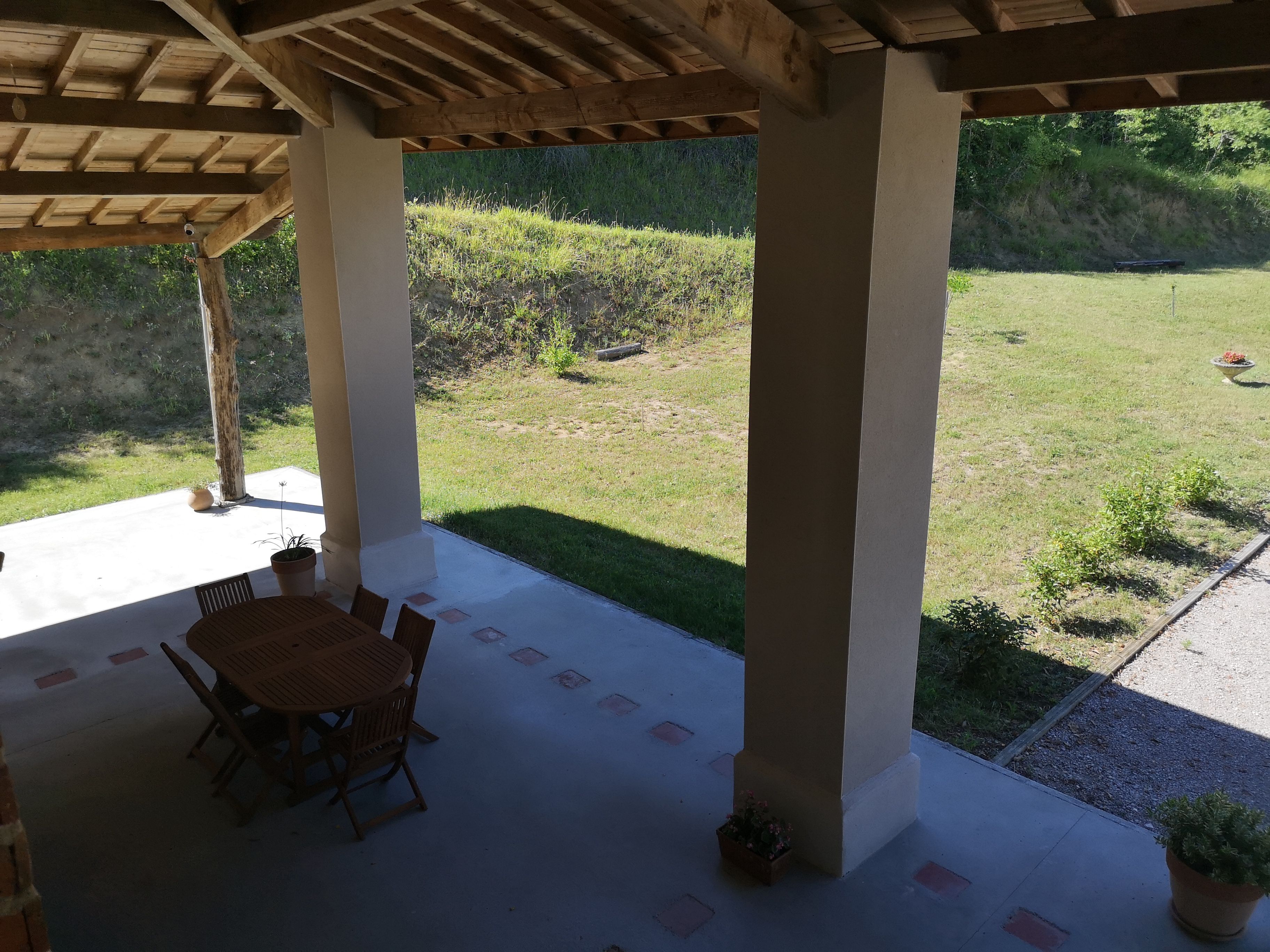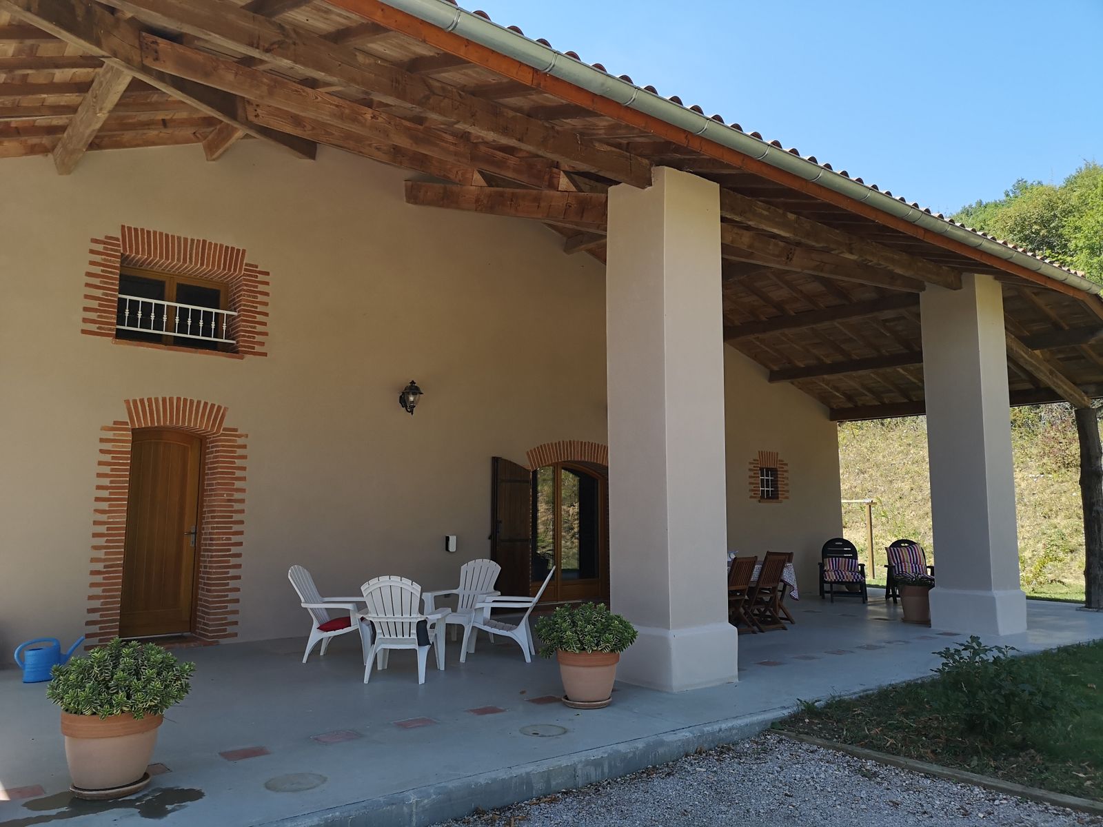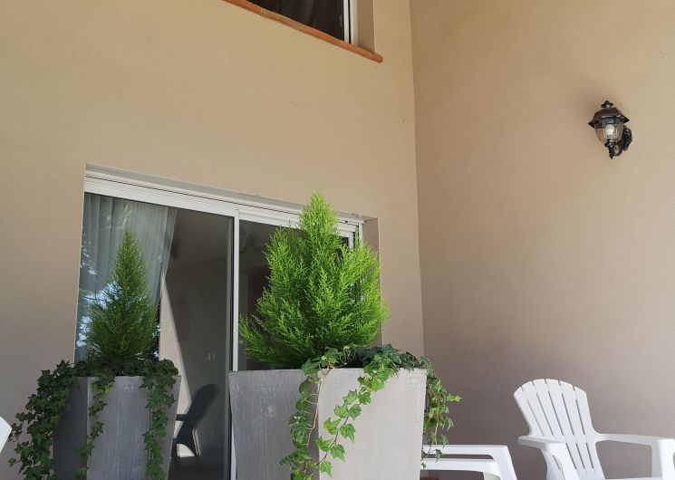 La casa tiene una gran zona exterior vallada con puerta y un gran patio donde se puede jugar a la petanca. Un columpio para niños.