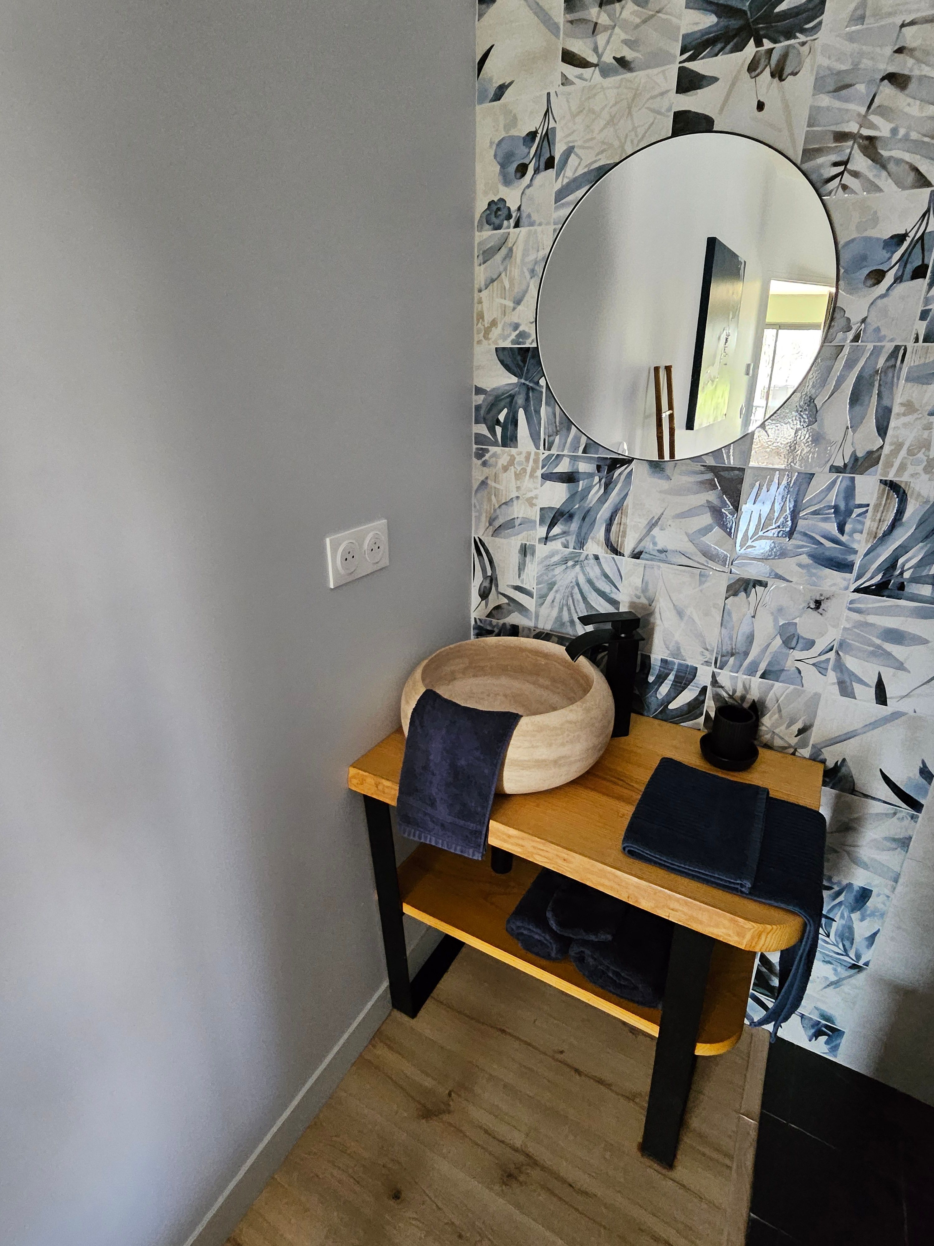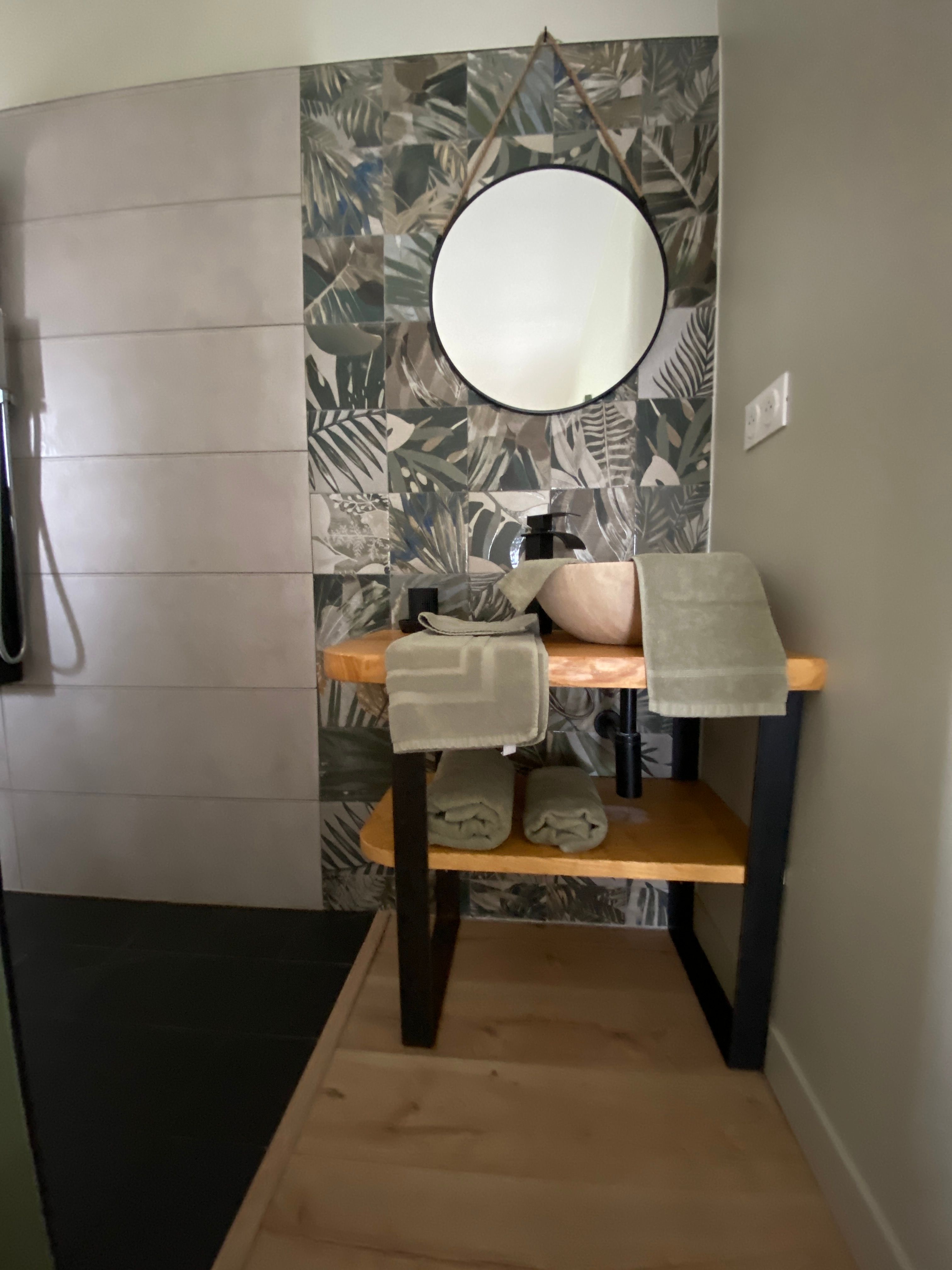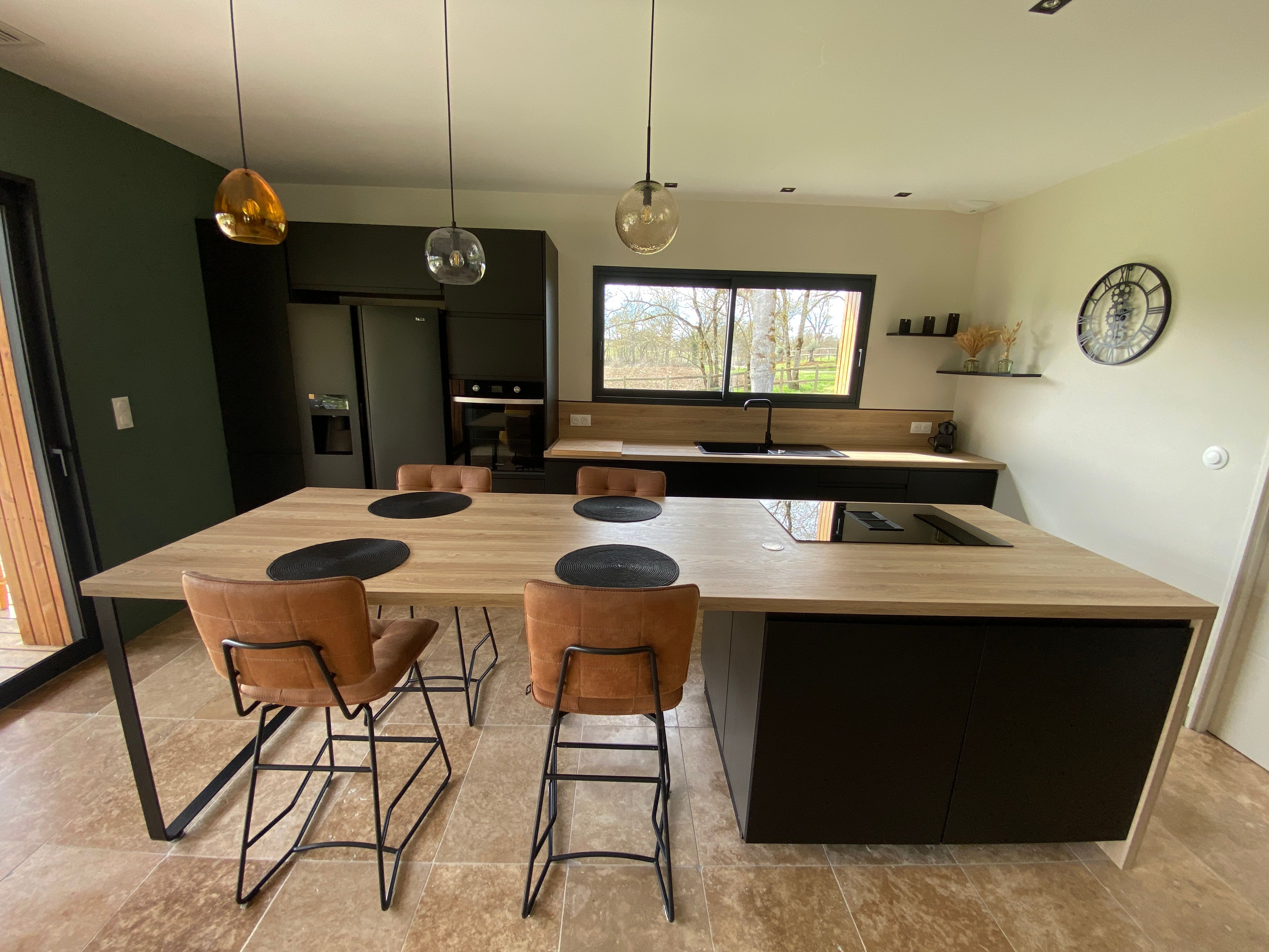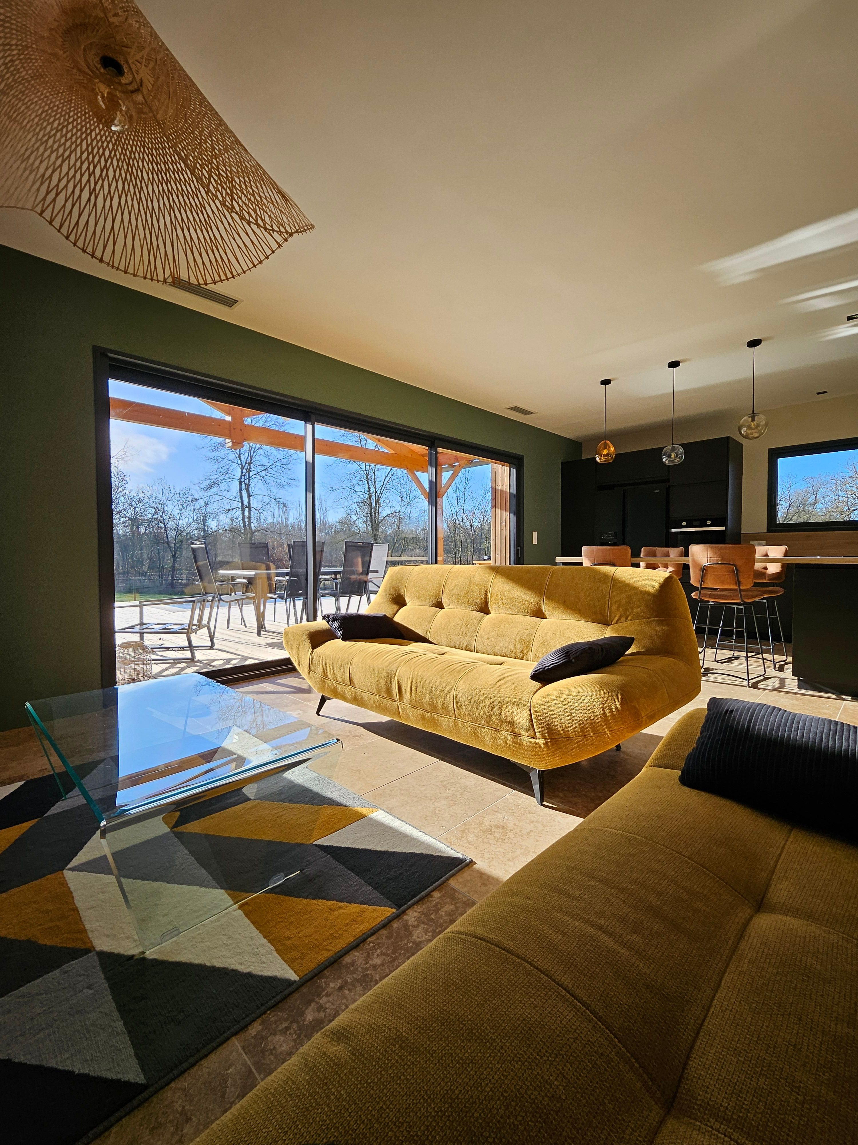A few meters from a small stream winding the countryside “Candé”, then distanced by a pretty wooded meadow, discover this wooden house, with clean lines, revealing by its large bay with galandage an interior all in charm and elegance.