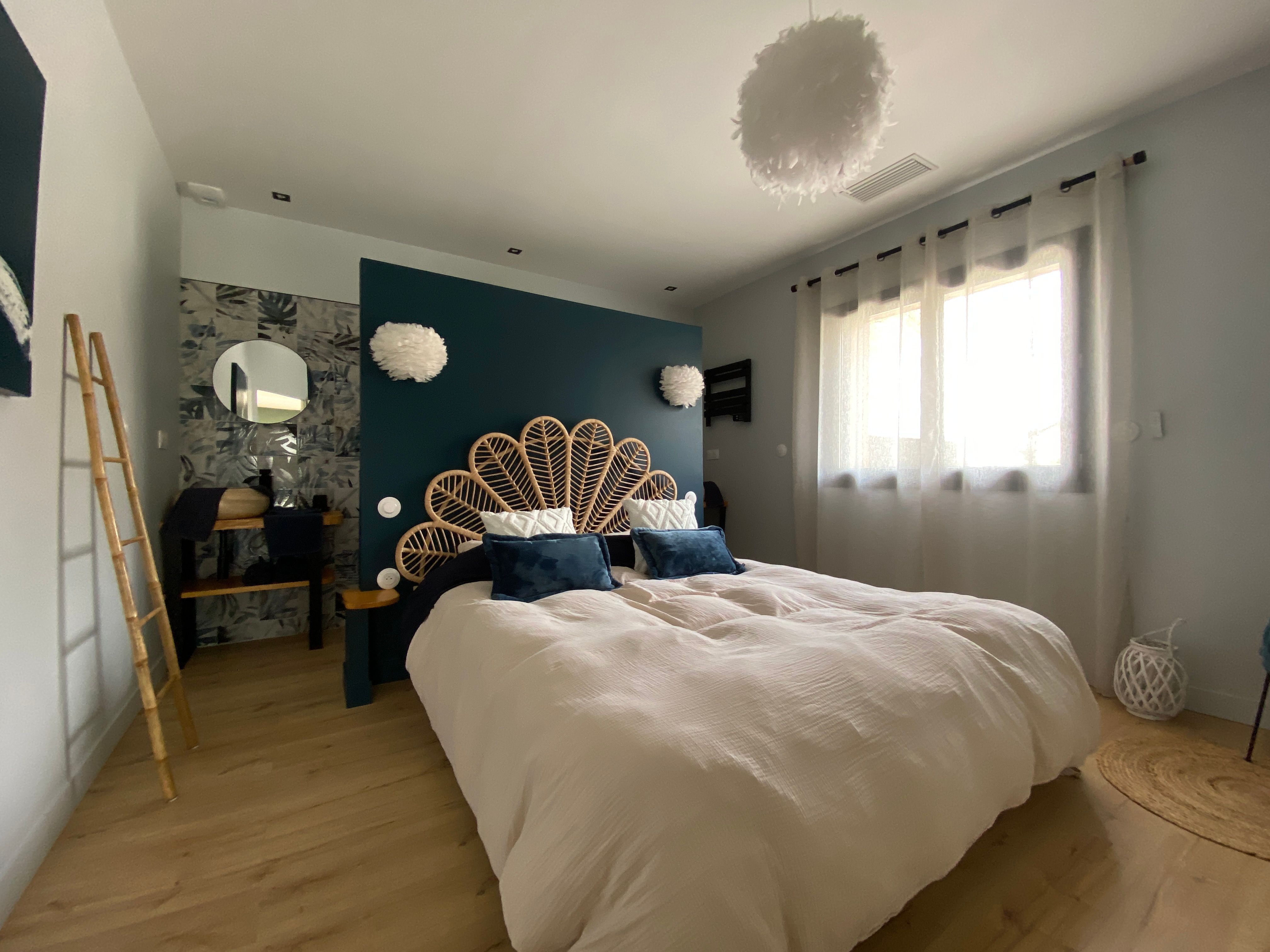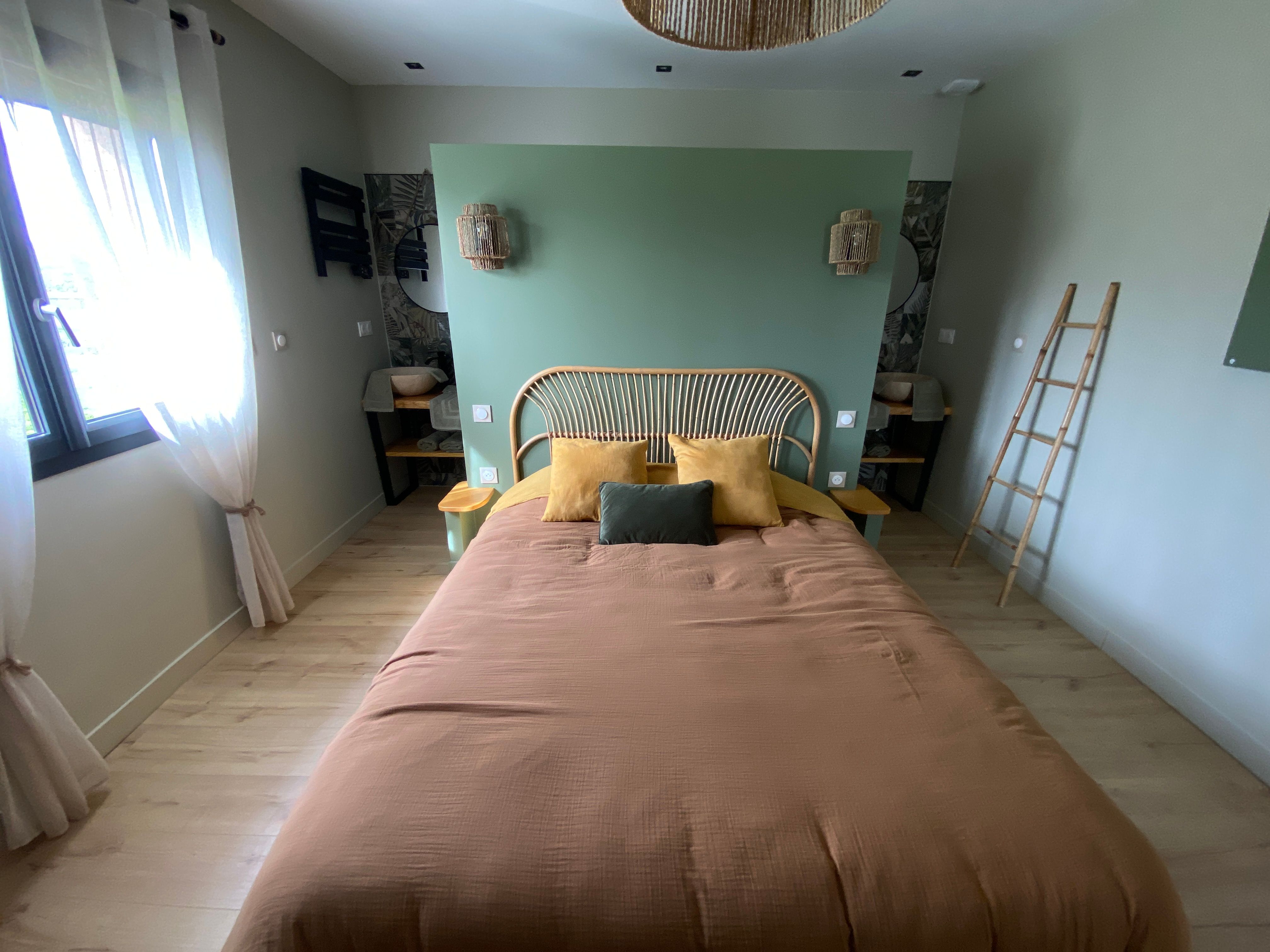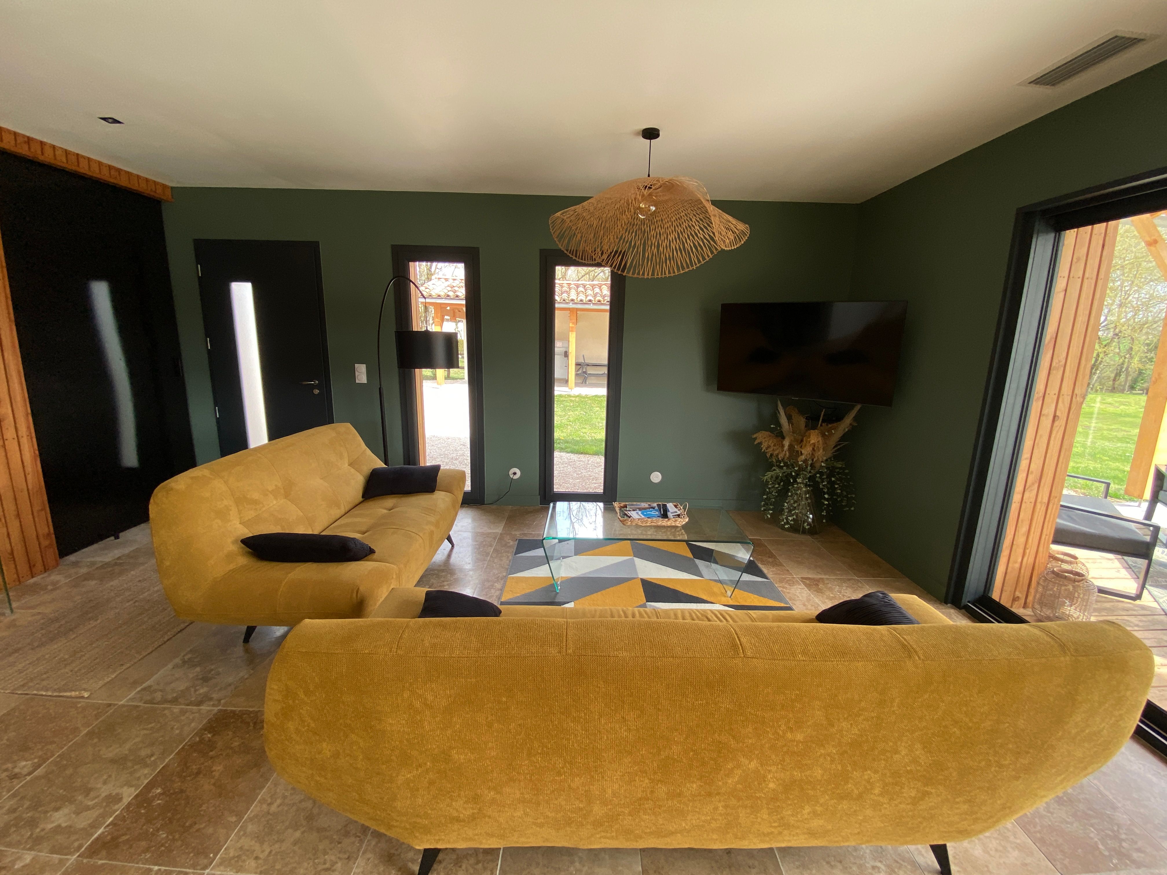 Entirely on the ground floor, a large living room with sitting area (2 sofas, TV), kitchen area (fitted kitchen with American fridge, hob with integrated hood, oven, microwave, dishwasher), storeroom (washing machine, tumble dryer), separate toilet with washbasin. 2 bedrooms, each with 1 x 160cm bed, private shower room with walk-in shower and twin basins. Fully air-conditioned. Wifi free of charge. Large fenced garden. Bed linen and towels included in the price. Beds made up on arrival.