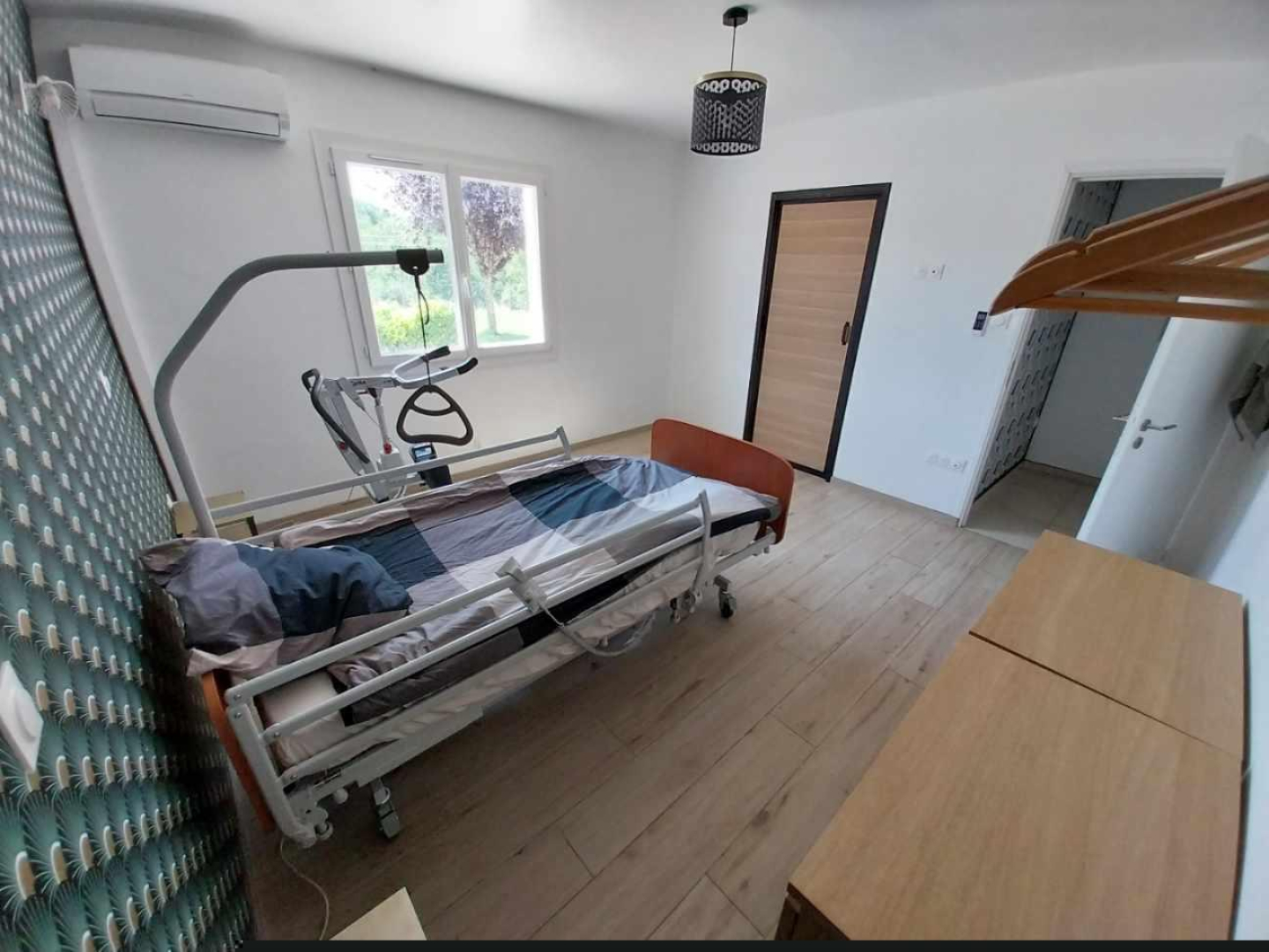 La rénovation a pris en compte certains aspects (largeur des espaces de circulation et portes, accès total de plain-pied) et du matériel spécifique peut être mis à disposition sur demande (chaise douche, lit médicalisé).
