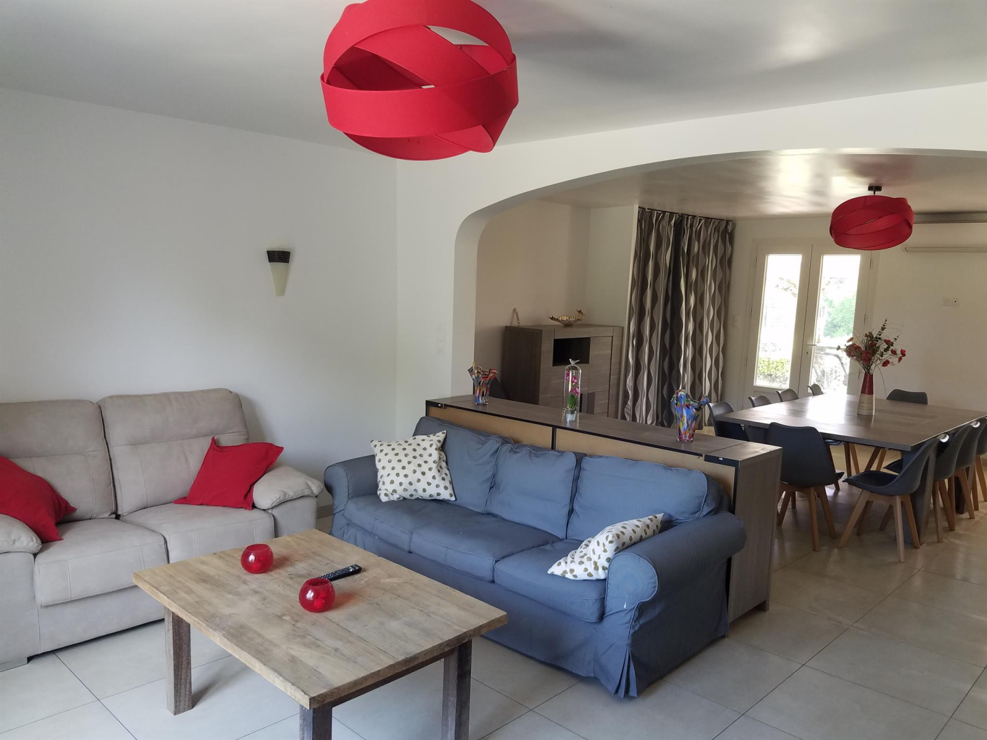 Grande pièce à vivre avec cuisine ouverte toute équipée, 4 chambres, 2 salles d’eau, 2 WC.