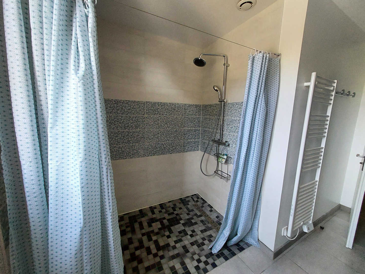 Salle d’eau principale avec grande douche à l’italienne adaptée et WC suspendus.