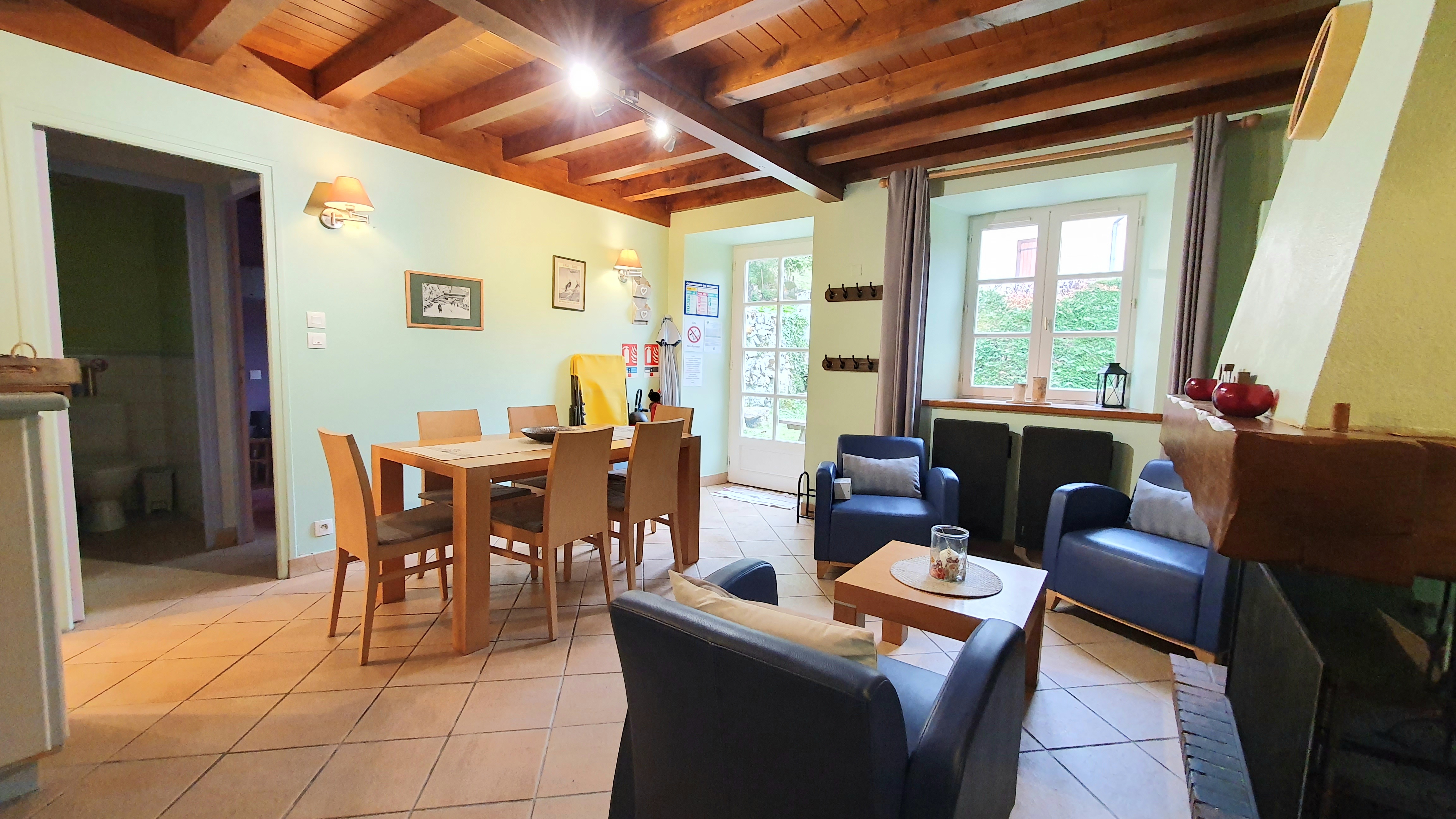 Esta casa rural es ideal para unas vacaciones en familia, con amigos o en bicicleta. En invierno, la vista es de montañas nevadas y el sol brilla todo el día. La carretera está limpia de nieve. En verano, la temperatura es ideal, gracias a la altitud del pueblo. Disfrute del jardín con su zona de comedor y barbacoa. Los niños pueden divertirse en la zona de juegos que comparten las dos casas rurales. Hay varios paseos que parten de la casa rural.