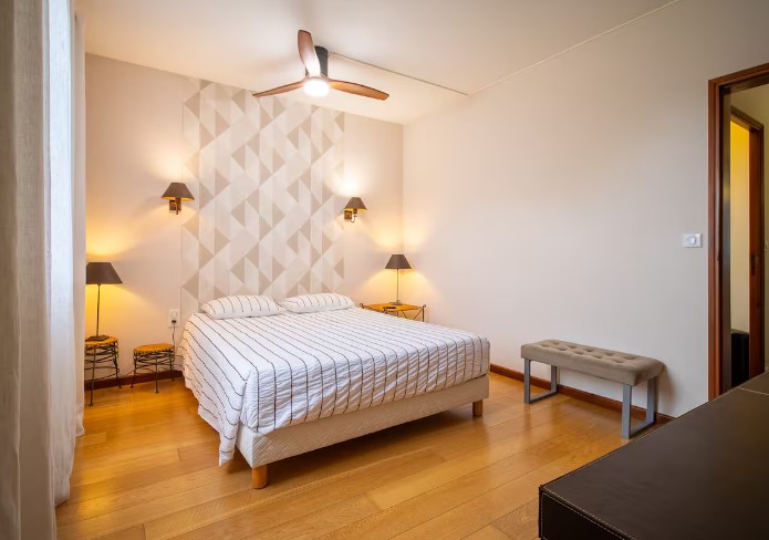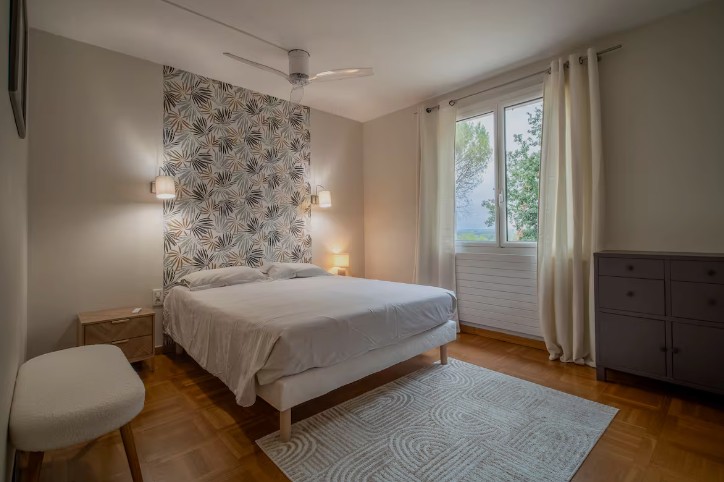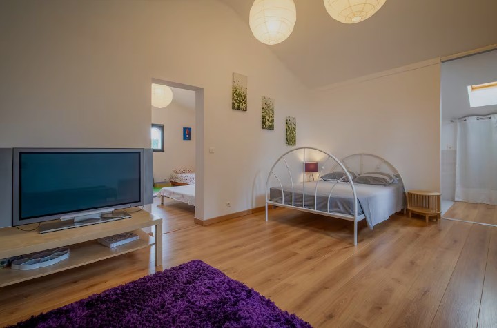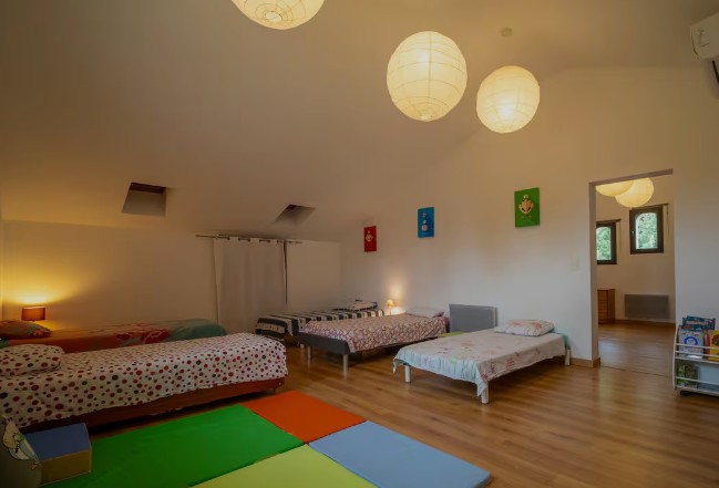 Trois chambres doubles sur un niveau, et l’étage des enfants avec 7 couchages sur 70 m2.