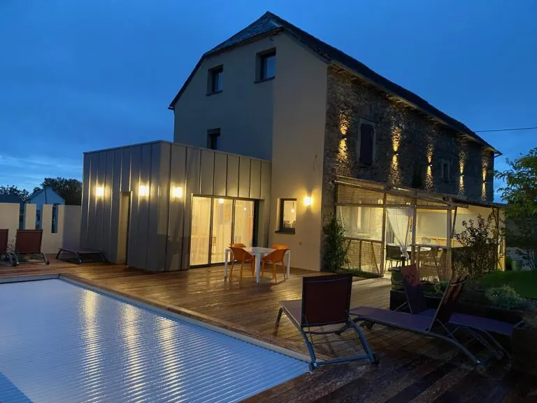 Vous apprécierez le calme de cette grande maison qui allie aspect traditionnel et extension très contemporaine. Un agréable jardin privé et clos, une piscine privée, des vues sur les prairies environnantes, une aire de jeux s’offrent à vous.