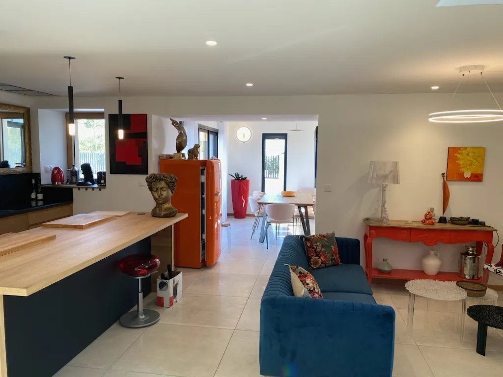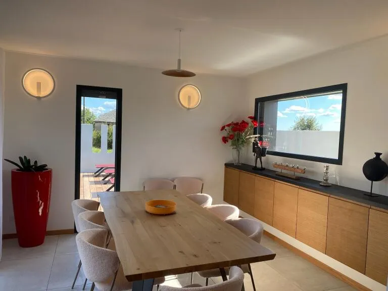 Terrasse couverte privée (17 m²), terrasse privée en bois (80 m²), terrain/cour privés clos (1 000 m²), piscine privée (8 x 3, 1.6m profondeur) ouverte du 1er mai au 30 septembre, non chauffée, salons de jardin, plancha, parking privé, taxe de séjour. Chaise haute et lit bébé sur demande.