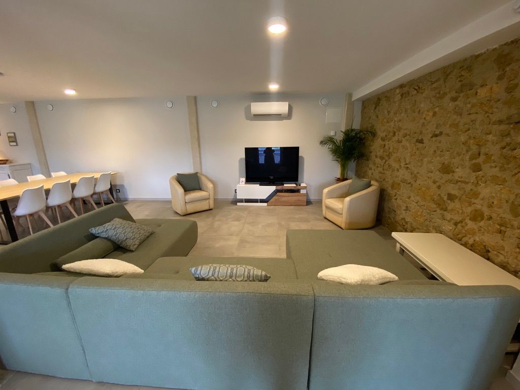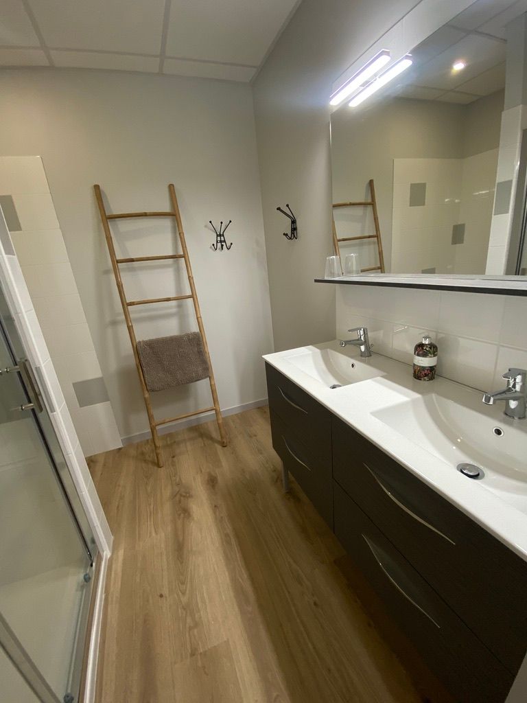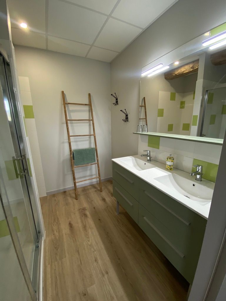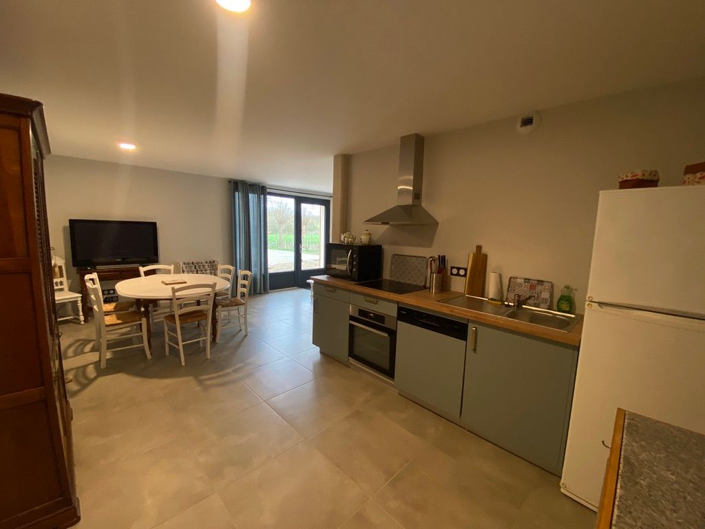 Planta baja: lado sur: sala de estar. WC con acceso para discapacitados. Grande sala de estar / chimenea insertable, comedor / cocina. sala familiar con acceso para discapacitados (1×140 + 1×90, 1 cama plegable, cuarto de baño / wc). 1 habitación (2×90, cuarto de baño). Terraza / toldo. sala de estar independiente con biblioteca (sofá convertible 2 pers.)