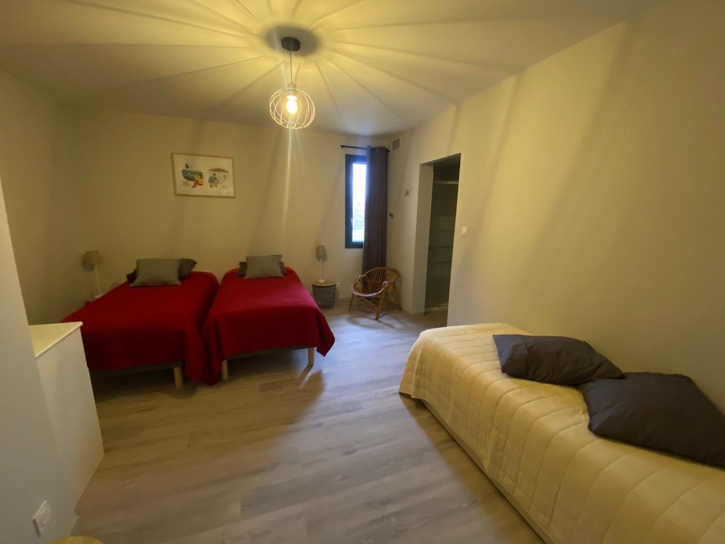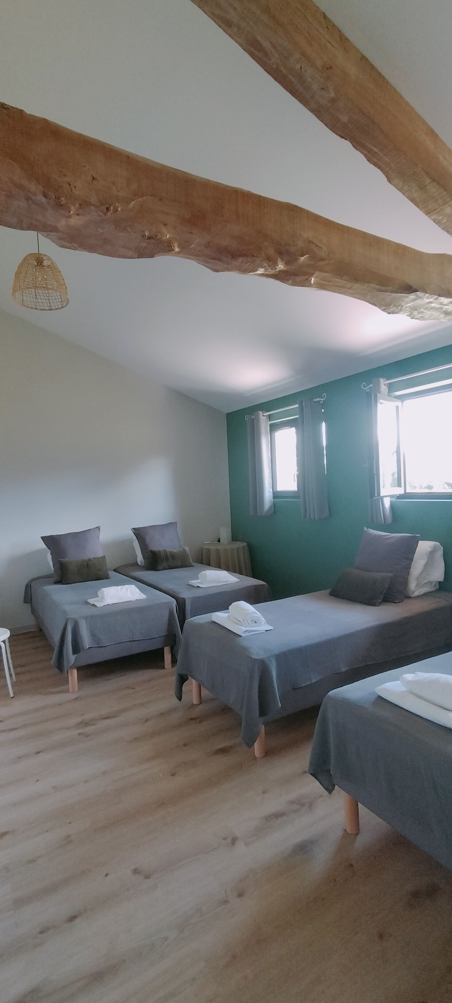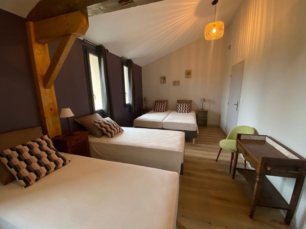 En el 1er: dormitorio en entrepiso (1×140, cama doble, cuarto de baño / wc). 2 dormitorios (1×160, cuna, baño / wc). dormitorio (3×90, baño / wc). Área de juego iluminada bajo refugio en un antiguo hangar amueblado: billar americano, tenis de mesa, futbolín, petanca, muebles de jardín. WIFI. Mascotas aceptadas (cargo extra). Impuesto turístico no incluido (junio a septiembre). Teléfono: 05 63 65 39 61