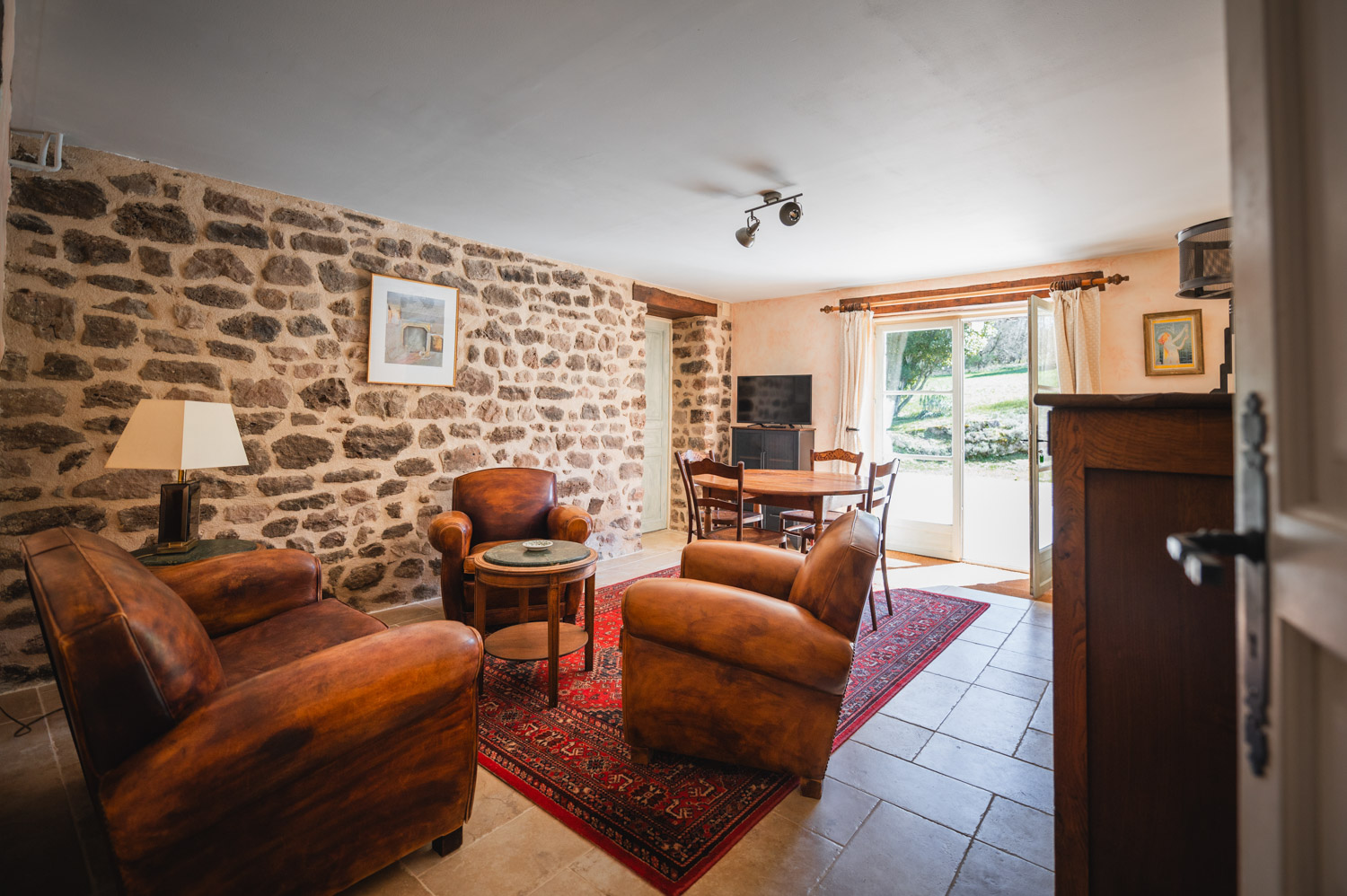 Votre gite comprend une cuisine, les deux chambres et le salon salle à manger donnent de plein pied sur une grande terrasse ensoleillée et vue sur le parc.