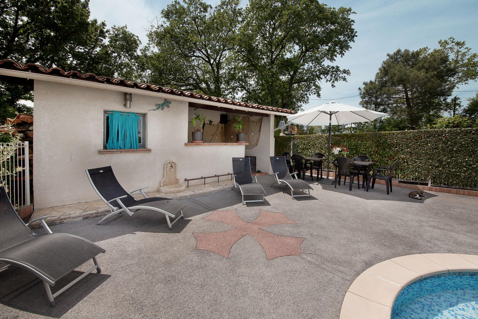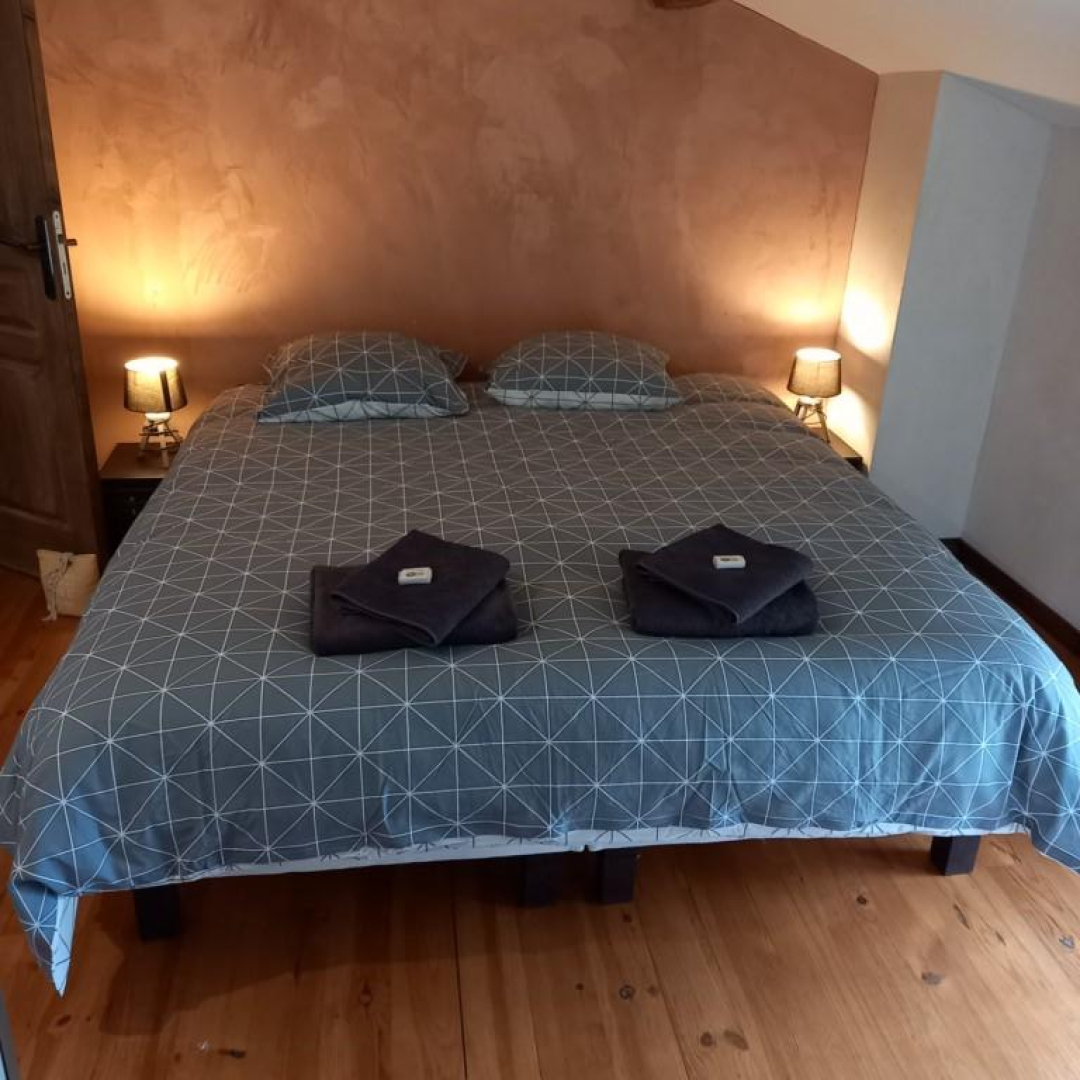 Gîte indépendant juste à côté de la maison des propriétaires, aménagé dans une dépendance réhabilitée en toute simplicité. Vous apprécierez les enduits à la chaux au ton naturel et la décoration (exposition permanente de tableaux). Deux terrasses, dont une couverte de 30m², deux salons de jardin, ping-pong. Petit jardin, accès à la piscine et aux jeux enfants à partager avec les propriétaires.